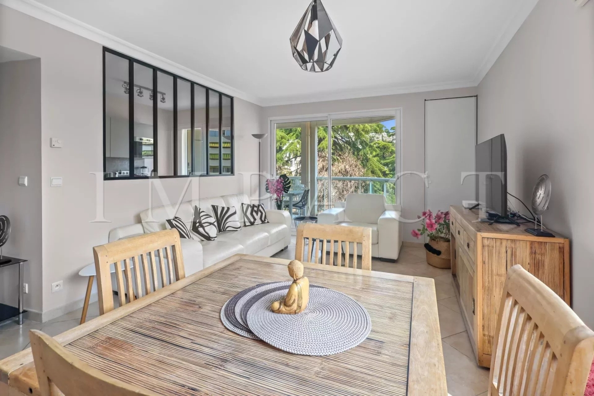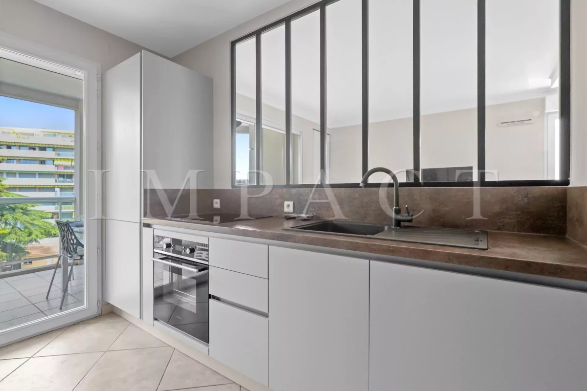Superb renovated T3 with terraces - 3 min from the Croisette! Welcome to this magnificent, fully renovated 3-room apartment, ideally located at the Gabres traffic circle in Cannes. Just a 3-minute walk from the Croisette and 12 minutes from the Palais des Festivals, you'll enjoy an exceptional location, both central and quiet. With a surface area of 70 m², this bright and comfortable apartment comprises : A spacious living room with lounge and dining area, opening onto a 15 m² south-east-facing terrace, perfect for enjoying the morning sun. A semi-open kitchen, fully equipped, functional and convivial. Two en suite bedrooms, each with its own private shower room, offering comfort and privacy to all occupants. An independent guest toilet at the entrance. The apartment is located in a quiet, secure residence, ideal for a relaxing stay, yet within easy reach of beaches, luxury boutiques, restaurants and Cannes entertainment. Whether you're coming for vacation, a conference or a business trip, this property combines strategic location, modern comfort and quality of life. Other amenities : Air conditioning, Wi-Fi connection. Contact: +33658186330.