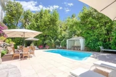 Located in the Basse Californie district just a short walk from shops and beaches, this stunning garden-level apartment spans two floors and offers an exceptional living environment. On the main level, a spacious, light-filled living room opens onto a dining area and a fully equipped kitchen. A second lounge, dedicated to relaxation and entertainment, enhances the space. This level also features a master suite with its private bathroom, along with two additional en-suite bedrooms, each with its own shower room. The lower level offers two more en-suite bedrooms with shower rooms, separated by a third lounge, and a sauna. Outside, a magnificent landscaped garden of over 700 sqm surrounds the property. A large swimming pool, a fully equipped outdoor kitchen with a barbecue, and multiple sun loungers invite relaxation under the Côte d'Azur sun. Several parking spaces complete this exceptional property. For seasonal let 06029023944AK Contact: +33689018057.