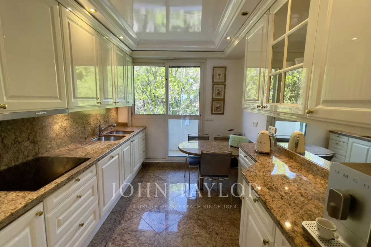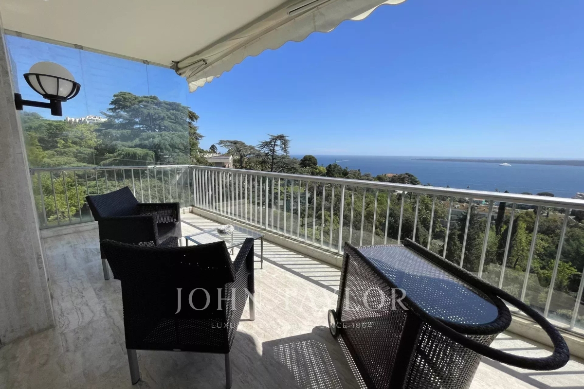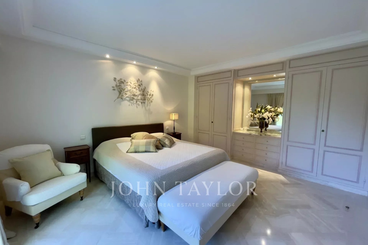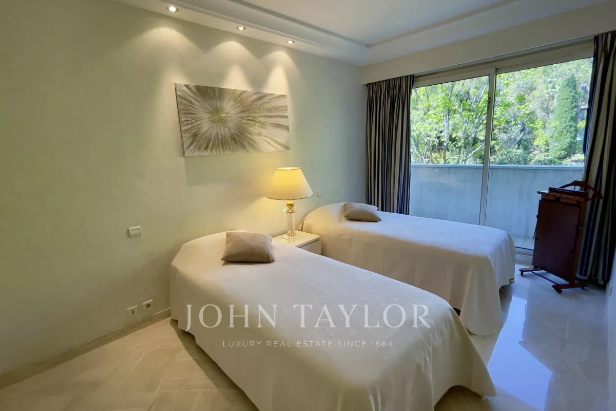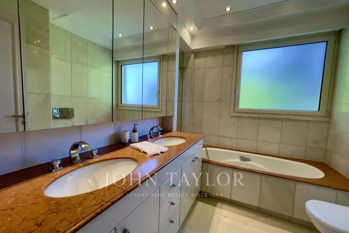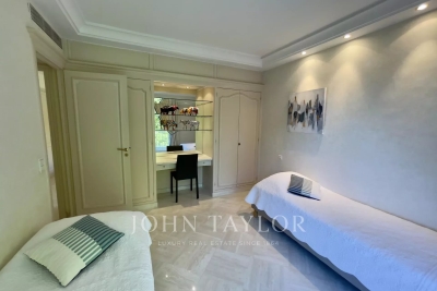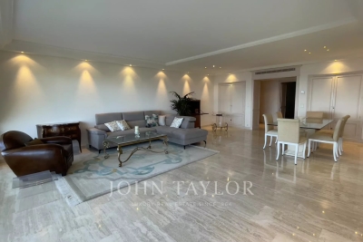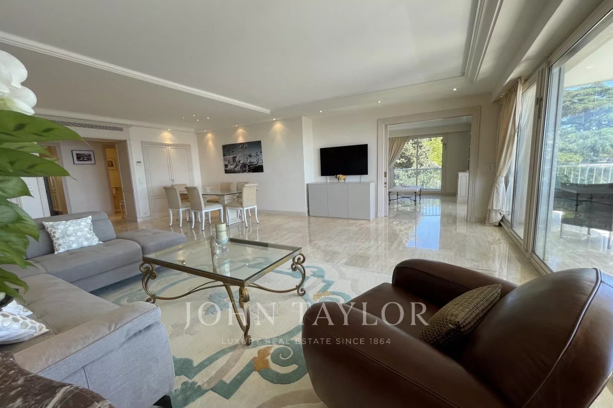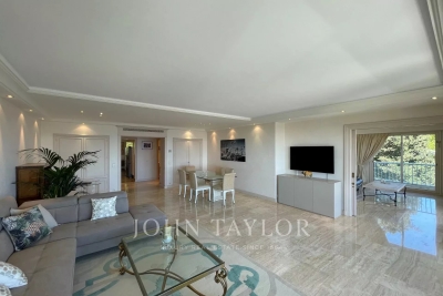 In the Californie area, in a high standing residence with swimming pool, tennis court and listed park, attractive air-conditioned apartment of approx. 151 sq.m, south-facing and enjoying panoramic sea views from its 25 sq.m terrace. On the 4th floor, the apartment comprises : Entrance Large 47 sq.m living/dining room opening onto a south-facing terrace Adjoining study Large 11 sq.m fitted kitchen opening onto balcony Guest toilet Master bedroom of 20 sq.m opening onto terrace - Ensuite shower room / WC Two bedrooms, each with two single beds, opening onto balcony Bathroom / WC WI-FI internet connection (fibre) Private underground parking space Caretaker in the residence