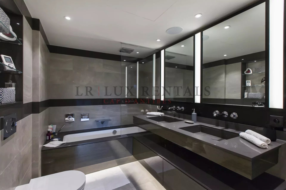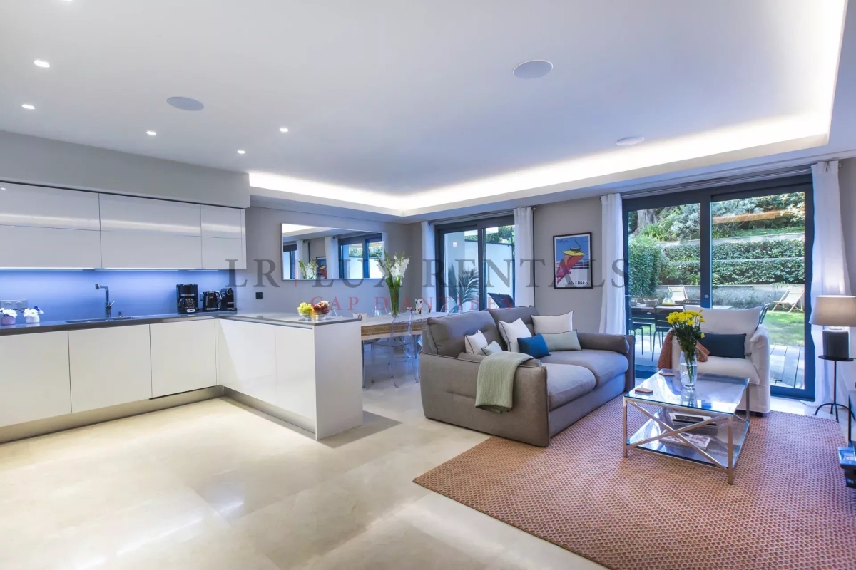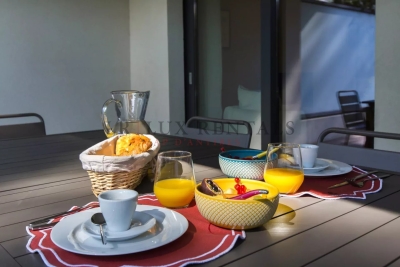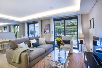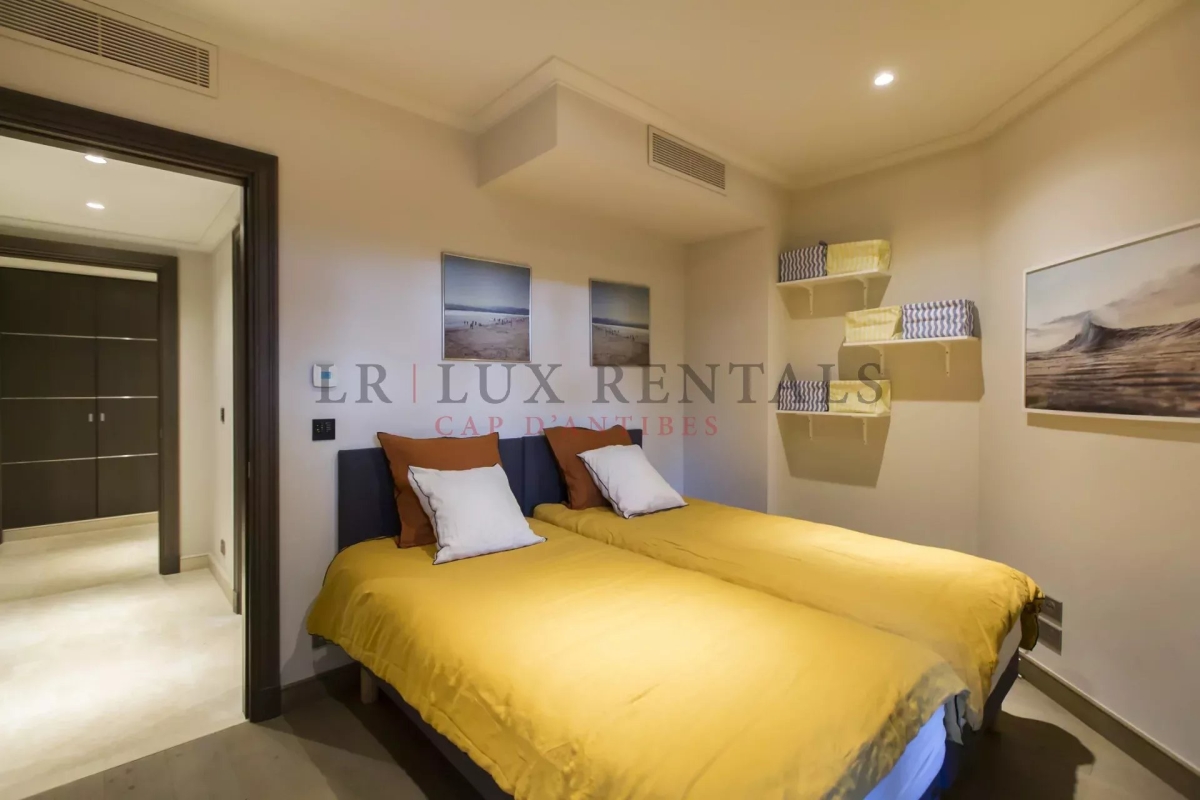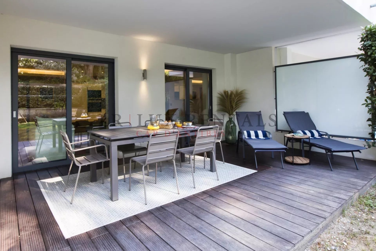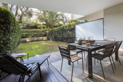 Two bedrooms apartment of 92m² on the ground floor ideally located in a magnificent prestigious complex, in absolute calm, 5 minutes walk from the beaches Spa, indoor and outdoor swimming pool, gym and tennis courts, concierge and security make this residence unique. It consists : A living room with an open kitchen, two bedrooms with their shower room, a separate toilet and a laundry area. Air conditioning, internet. 1 parking space and 1 garage. Contact: +33624372849.