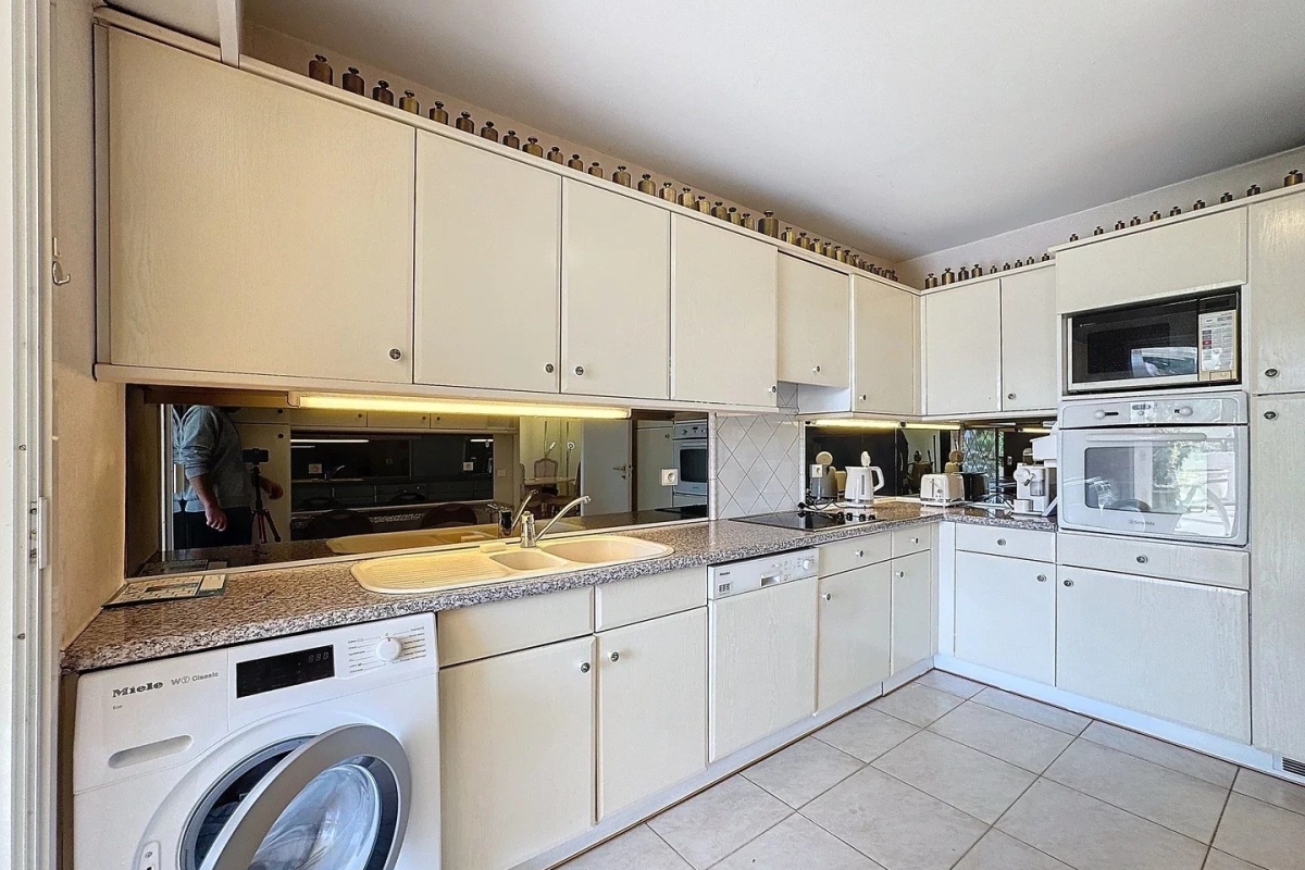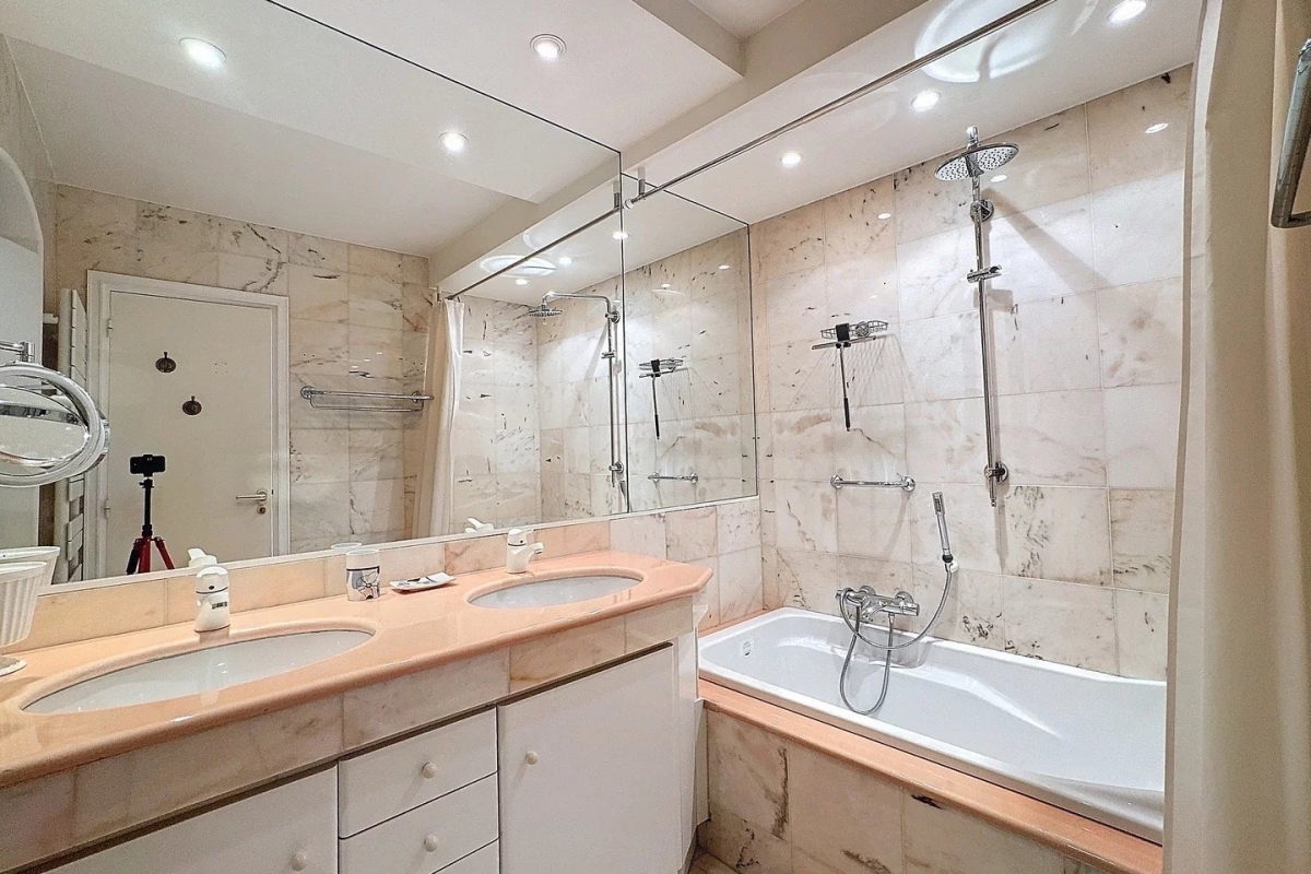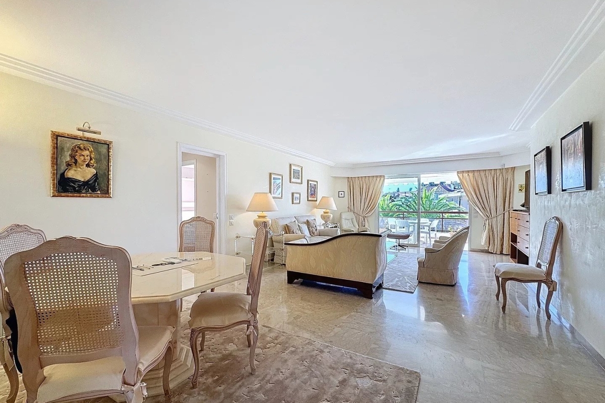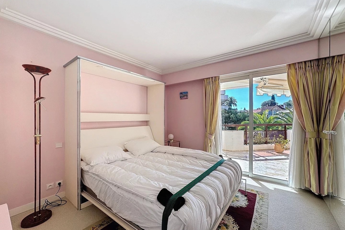 For seasonal let :Situated in Le Cannet's Townhall district, this lovely 2-3 bedroom apartment features a large living and dining area, a separate fully fitted kitchen, a master bedroom with an en-suite bathroom, a 200x200 bed, and a walk-in closet. A second bedroom includes a 160x200 bed and a private shower room. Both rooms open onto a large terrace overlooking the residence's pool and offering a panoramic view of Cannes. The apartment also includes a windowless room that can be used as a bedroom, as well as a closed garage for secure parking. Contact: +33689018057.