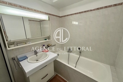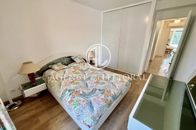 Seasonal rental : In a beautiful residence a few meters from shops and beaches, on the 2nd and last floor of the building far from the road, very nice apartment composed of an entrance with cupboards, 2 bedrooms with cupboards and shared terrace, a small equipped kitchen semi-open, a bathroom and shower, separate toilet, and a living room opening onto a beautiful south-facing terrace offering a pleasant view of the gardens. Air conditioning, television in the living room, small parking space in the basement of the residence. Bed sheets and towels not provided. Exit cleaning to be paid in addition Tourist tax to be paid in addition Contact: +33667007811.