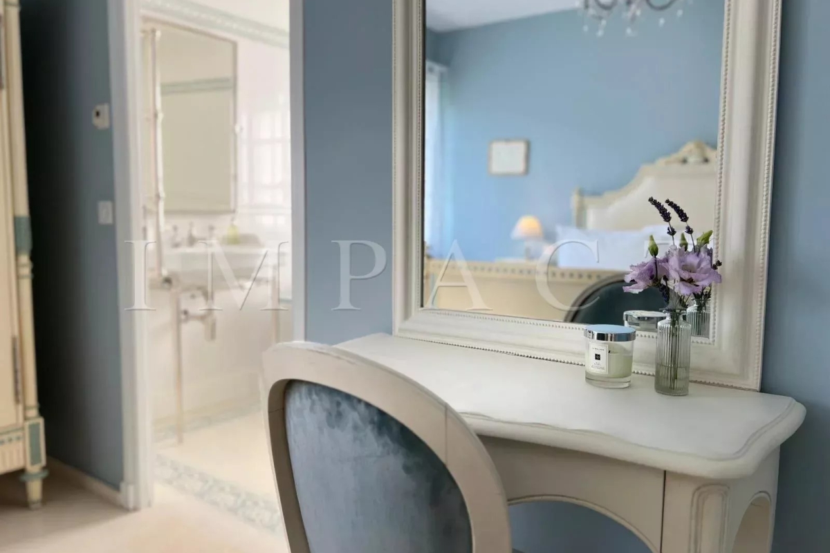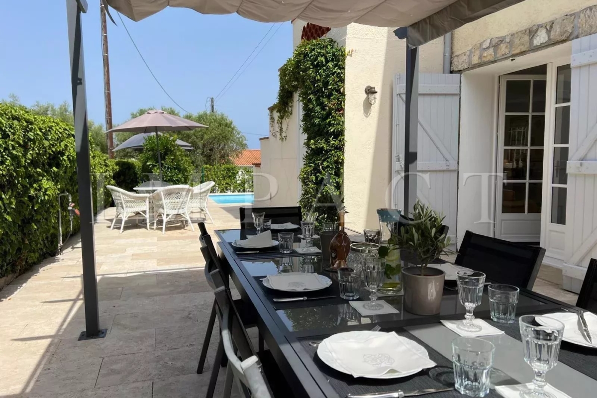 Beautiful villa to rent with beautifully landscaped garden, swimming pool and security alarm for children. It has four elegantly appointed bedrooms. The three bathrooms are equipped with spacious showers and two overflow baths. For added convenience, separate toilets are also available on the first floor. The studio double room offers greater privacy with its own entrance, kitchenette and bathroom. It's ideal for guests seeking a degree of independence, as well as for older children or parents wanting a more private space. Each of the four bedrooms is equipped with a reversible air-conditioning system, offering both cooling and heating as required. The spacious living room is the perfect place to relax, with a connected TV and everything you need for home entertainment. You'll have access to Sky TV, Apple TV and Amazon Fire Stick. Other facilities : WIFI, Air conditioning Sleeps 8 Contact: +33658270230.