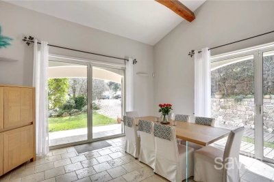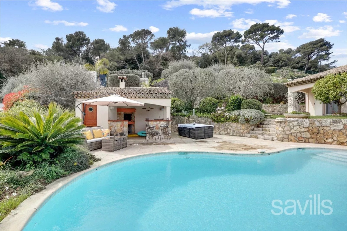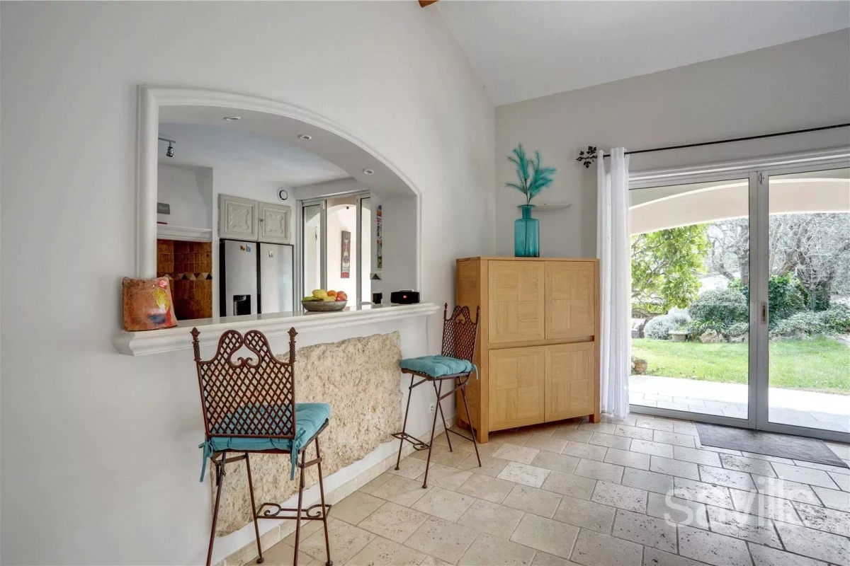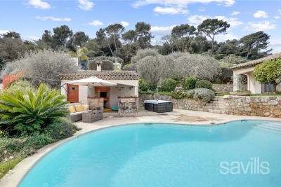 Ideally located for the golf course of Biot, within a quiet residential area, this charming property is surrounded by landscaped grounds of approximately 1,600 sq m. On the ground floor, the villa features an entrance hall, a reception room with dining area, opening onto a terrace and a swimming pool, a fully equipped kitchen, an office opening onto a terrace, a bedroom with en suite bath and shower room with toilet, a second en suite bedroom, boasting the views of the Old Village of Biot, as well as further en suite bedroom. A games room, a home cinema, a guest claokroom, as well as a principal bedroom with en suite dressing, shower room and toilet, a laundry and a garage are located on the garden level. Wifi, alarm, safe, air conditioning in all bedrooms. Please note that additional rental charges apply. Agency fees payable by the tenant. Fee table available online and on request. Contact: 0613601208.