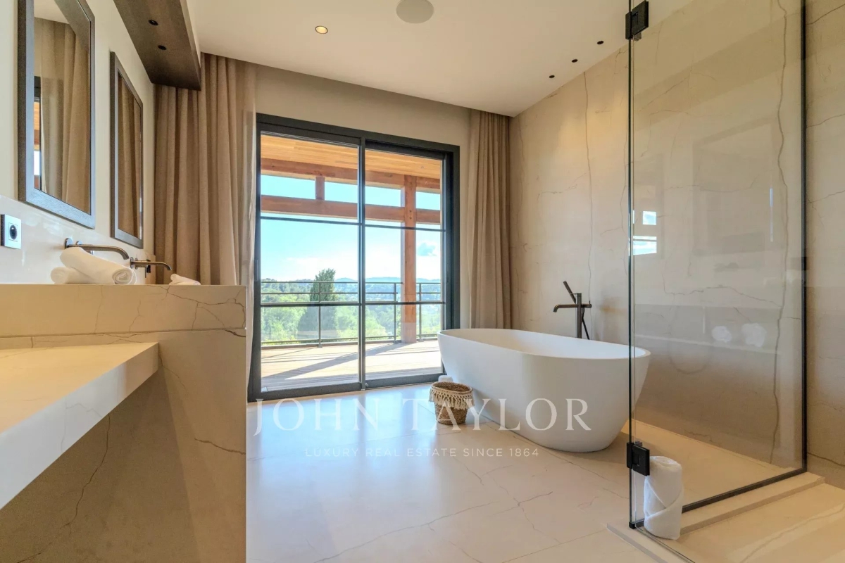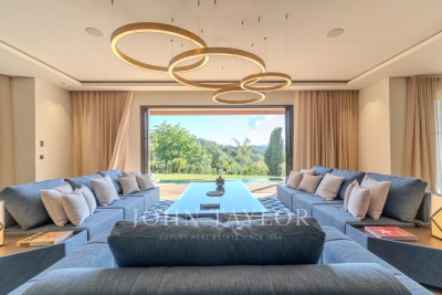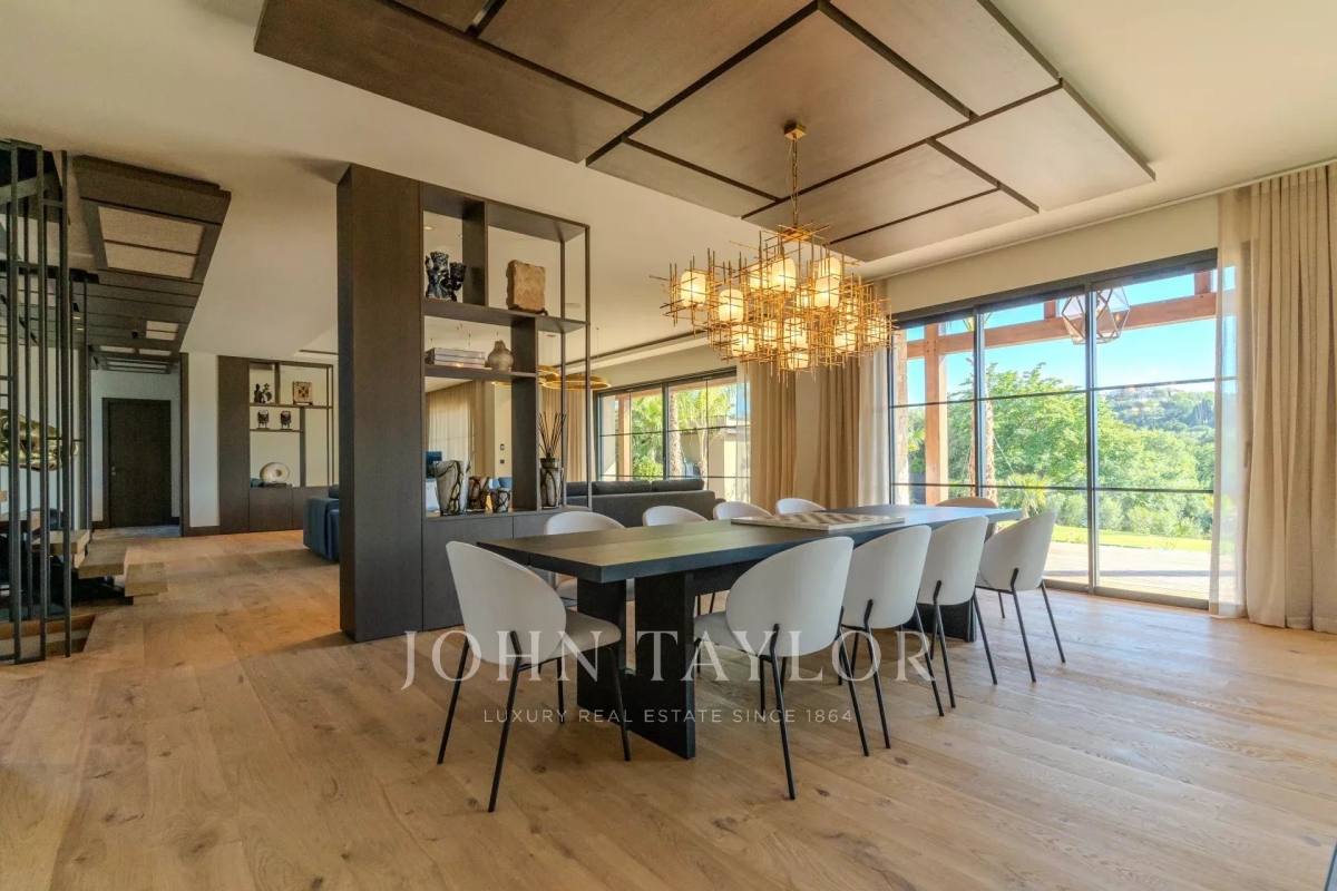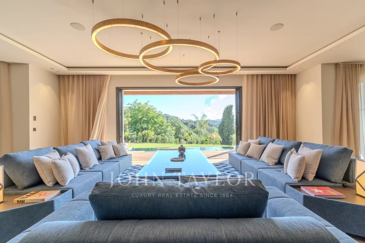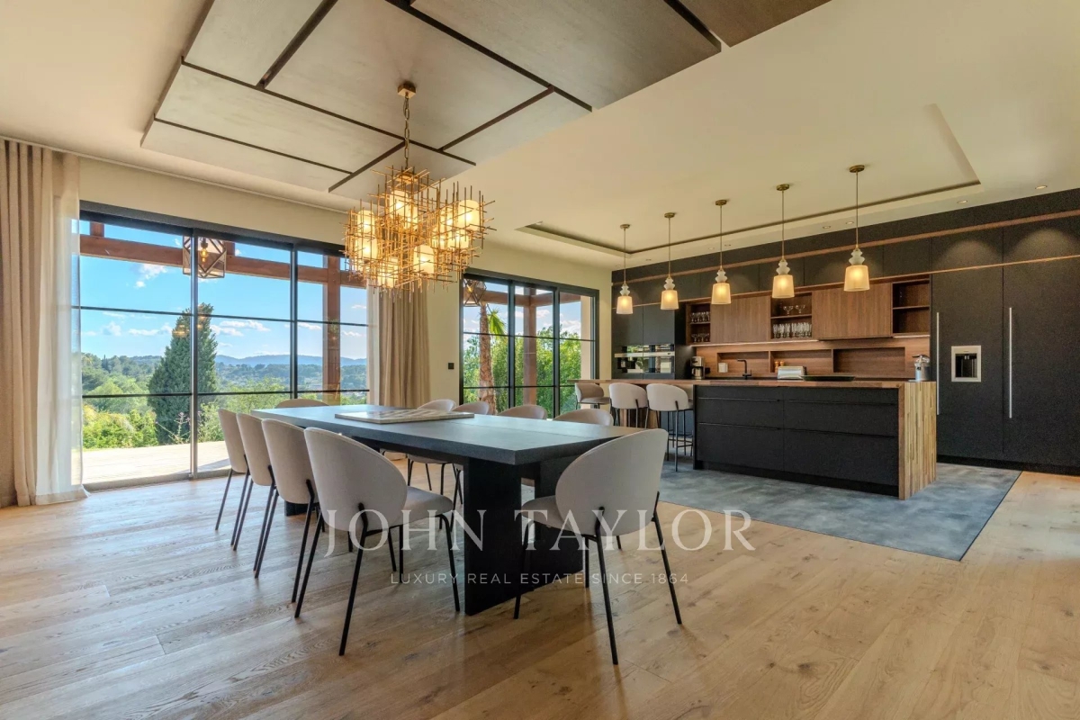 BRAND-NEW MODERN VILLA - 5 EN-SUITE BEDROOMS ***** Nestled in a peaceful and secure residential area in Mougins, this magnificent 5-bedroom ensuite villa offers the perfect blend of tranquility and privacy. This villa with infinity pool is ideally located just a short stroll from the village, yet offers quick access to Cannes and the Croisette, making it an ideal location for relaxation and exploration. The villa is composed as follows: First floor : Welcoming and spacious entrance hall with guest toilet. Large, beautifully designed living room / reception room that connects harmoniously to the teak terrace and swimming pool. This space is perfect for entertaining or relaxing with family and friends. Comfortable TV/lounge area, ideal for relaxation. Elegant, spacious dining room provides the perfect setting for formal dinners or family meals. Fully-equipped, high-tech American kitchen with central island and breakfast area. Garage access, offering convenience and security. Upstairs: Luxurious master bedroom (n°1): double bed (180x200), large dressing room with ample storage space, TV, en-suite bathroom (double sink, bathtub, walk-in shower and separate toilet). Terrace with breathtaking views, perfect for a coffee break or evening relaxation. Bedroom n°2: flexible sleeping options: double bed (180x200) or 2 single beds, closet, TV, en-suite bathroom (sink, walk-in shower and separate toilet). Private terrace. Bedroom n°3: comfortable double bed, elegant dressing room, TV, en-suite bathroom (washbasin, walk-in shower and WC). Terrace with lovely view. Bedroom n°4: double bed, large storage space, TV, en-suite bathroom (washbasin, walk-in shower and WC). Terrace with lovely view. Bedroom n°5: double bed, wardrobe, TV, en-suite bathroom (washbasin, walk-in shower and WC). Terrace with nice view. Lower level: Cinema room with ultra-comfortable seating and state-of-the-art audiovisual equipment for an immersive cinematic experience. Children's playroom/lounge: versatile space designed for children's activities or a second TV lounge. Fitness area: well-equipped for a variety of exercises to help you stay in shape during your stay. Fully equipped laundry room Exterior facilities and amenities : Full reversible air conditioning Integrated SONOS audio system: for high-quality sound (first floor level + exterior). Smart TV: with access to streaming services and Internet connectivity. High-speed fiber-optic Internet connection: fast, reliable Internet access for all your connectivity needs. Heatable infinity pool (18m x 5m), offering breathtaking views and a relaxing atmosphere. Beautifully landscaped flat garden offering ample space for outdoor activities and relaxation. BBQ area: perfect for cooking and dining al fresco. Children's play area: a safe, fun space designed for children to play and explore. Enclosed garage Carport: sleeps 2 Information on the risks to which this property is exposed is available on the Géorisques website: www.georisques.gouv.fr Contact: 0609238497.
