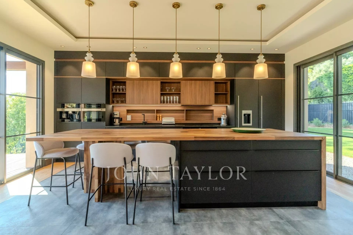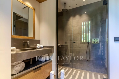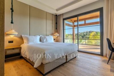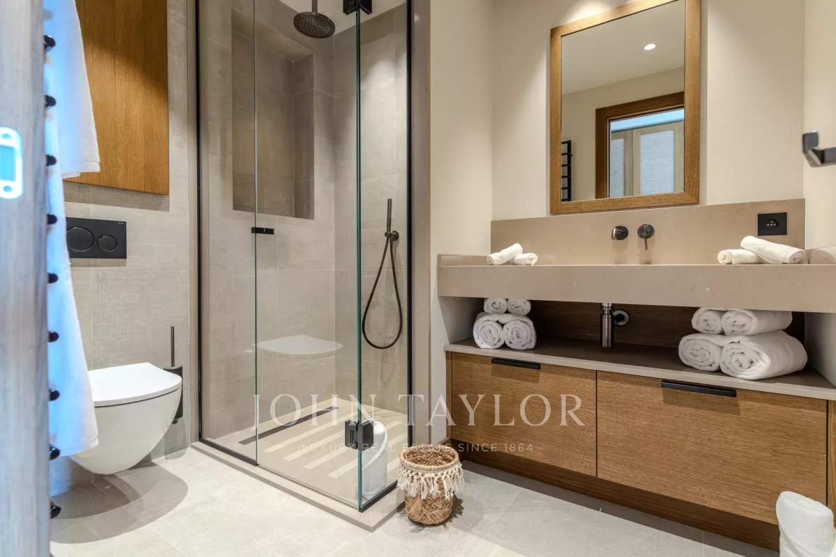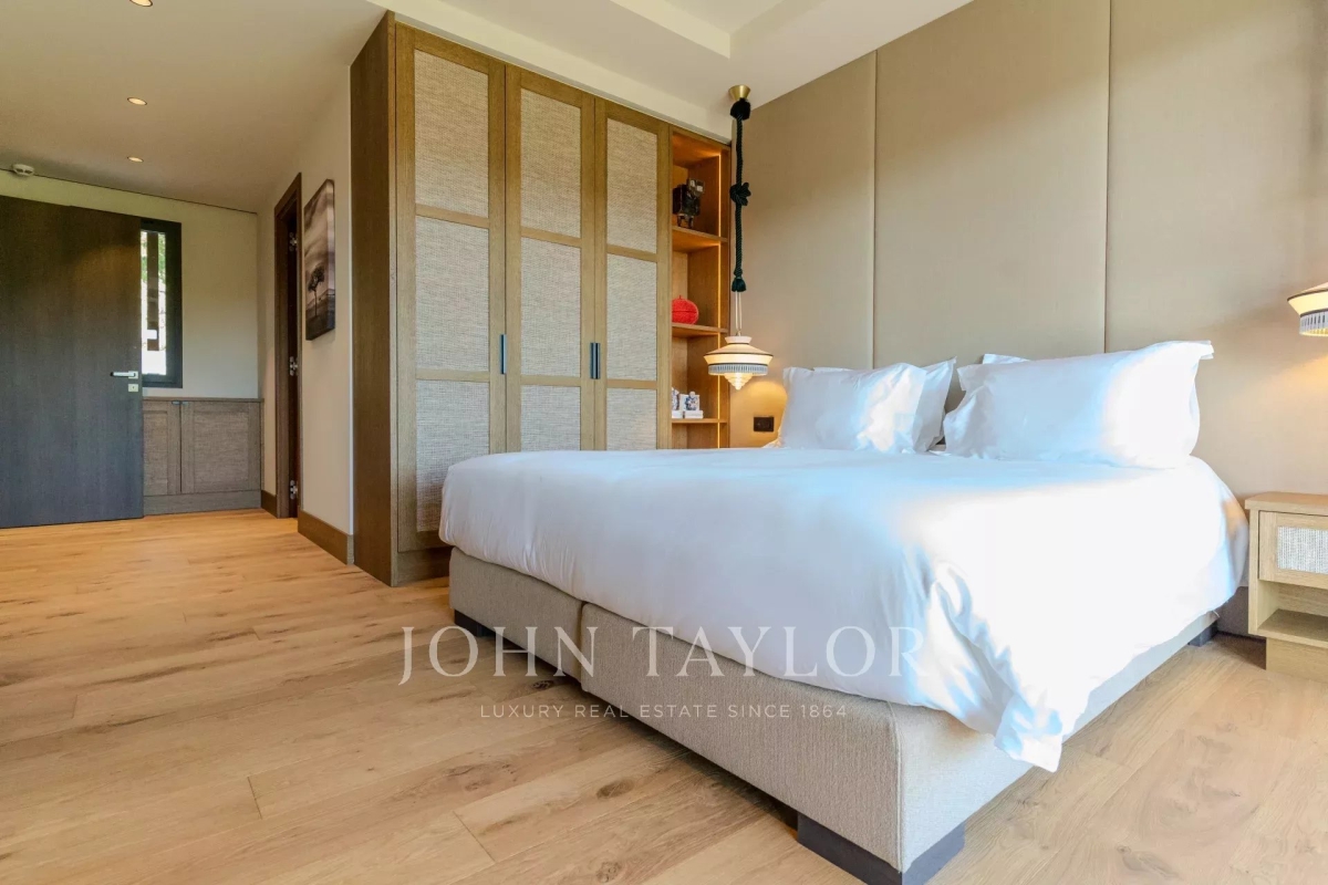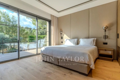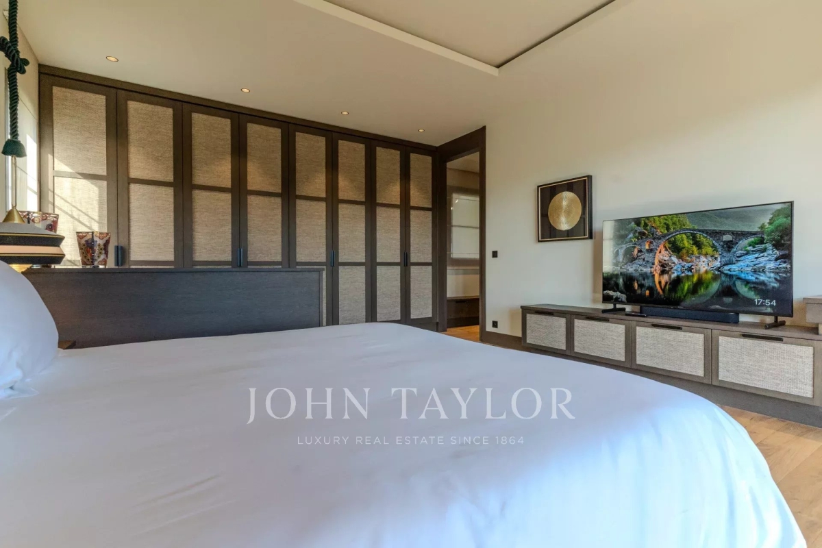 BRAND-NEW MODERN VILLA - 5 EN-SUITE BEDROOMS ***** Nestled in a peaceful and secure residential area in Mougins, this magnificent 5-bedroom ensuite villa offers the perfect blend of tranquility and privacy. This villa with infinity pool is ideally located just a short stroll from the village, yet offers quick access to Cannes and the Croisette, making it an ideal location for relaxation and exploration. The villa is composed as follows: First floor : Welcoming and spacious entrance hall with guest toilet. Large, beautifully designed living room / reception room that connects harmoniously to the teak terrace and swimming pool. This space is perfect for entertaining or relaxing with family and friends. Comfortable TV/lounge area, ideal for relaxation. Elegant, spacious dining room provides the perfect setting for formal dinners or family meals. Fully-equipped, high-tech American kitchen with central island and breakfast area. Garage access, offering convenience and security. Upstairs: Luxurious master bedroom (n°1): double bed (180x200), large dressing room with ample storage space, TV, en-suite bathroom (double sink, bathtub, walk-in shower and separate toilet). Terrace with breathtaking views, perfect for a coffee break or evening relaxation. Bedroom n°2: flexible sleeping options: double bed (180x200) or 2 single beds, closet, TV, en-suite bathroom (sink, walk-in shower and separate toilet). Private terrace. Bedroom n°3: comfortable double bed, elegant dressing room, TV, en-suite bathroom (washbasin, walk-in shower and WC). Terrace with lovely view. Bedroom n°4: double bed, large storage space, TV, en-suite bathroom (washbasin, walk-in shower and WC). Terrace with lovely view. Bedroom n°5: double bed, wardrobe, TV, en-suite bathroom (washbasin, walk-in shower and WC). Terrace with nice view. Lower level: Cinema room with ultra-comfortable seating and state-of-the-art audiovisual equipment for an immersive cinematic experience. Children's playroom/lounge: versatile space designed for children's activities or a second TV lounge. Fitness area: well-equipped for a variety of exercises to help you stay in shape during your stay. Fully equipped laundry room Exterior facilities and amenities : Full reversible air conditioning Integrated SONOS audio system: for high-quality sound (first floor level + exterior). Smart TV: with access to streaming services and Internet connectivity. High-speed fiber-optic Internet connection: fast, reliable Internet access for all your connectivity needs. Heatable infinity pool (18m x 5m), offering breathtaking views and a relaxing atmosphere. Beautifully landscaped flat garden offering ample space for outdoor activities and relaxation. BBQ area: perfect for cooking and dining al fresco. Children's play area: a safe, fun space designed for children to play and explore. Enclosed garage Carport: sleeps 2 Information on the risks to which this property is exposed is available on the Géorisques website: www.georisques.gouv.fr Contact: 0609238497.