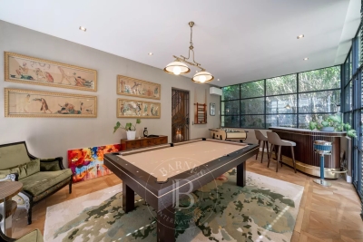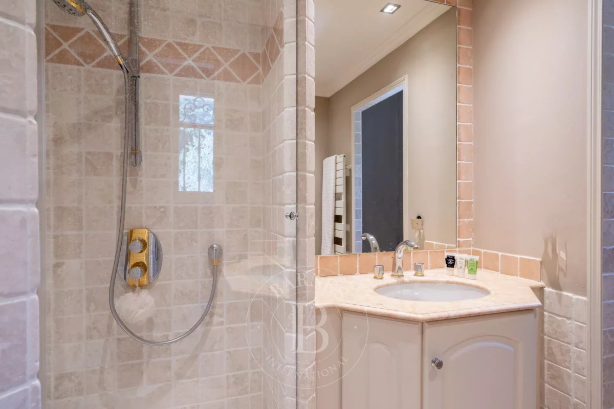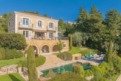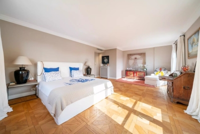 In the immediate vicinity of the city centre, shops and beaches, while being in absolute calm, this Tuscan-inspired property enjoys a splendid view of the bay of Cannes and the surrounding hills. The land of approximately 3,500sqm is planted with olive trees, cypresses and various Mediterranean species, which gives the property a feeling of tranquility. It is composed on 3 levels, of a pleasant living room with fireplace as well as 5 en-suite bedrooms, including one in a completely renovated independent apartment. A gym, a games room, a fully equipped summer kitchen and a heated salt pool complete this property.