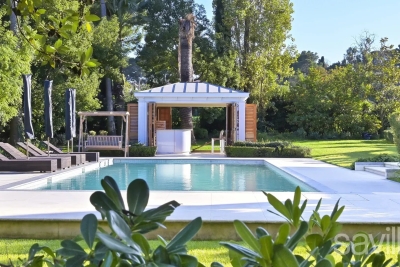 This stunning, completely refurbished property, boasts amazing views over the sea. The villa of approximately 1000 sq m, arranged over three levels, features an entrance hall, a guest toilet, a reception room, a dining room, a fully equipped kitchen, all opening onto a spacious terrace, with views of the garden, the swimming pool and the sea. It also includes six bedrooms with en suite bath or shower rooms, a cinema room, a laundry room, a wine cellar, a gym, a sauna and a hammam (steam room). Flat, landscaped grounds of 4900 sq m with swimming pool, garage and parking complete this superb property. Prices vary according to the rental period: please contact us for pricing information. Please note that additional rental fees apply. Agency fees payable by tenant. Rental fee schedule available online and on request. Please note that the plan does not show the exact location of the property and that all measurements are approximate. Information is provided for guidance only. Contact: 0613601208.