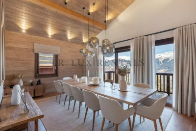 Chalet Arpont is part of an upscale new hamlet in Courchevel Moriond, due to open at the end of 2023. Nestled just a few minutes' walk from the slopes, this haven of comfort blends intimacy, elegance and Alpine atmosphere in a privileged setting. Designed to accommodate up to 12 people, the chalet is built on four levels served by an elevator. It offers five bedrooms with private bathrooms, an additional sleeping area, and a wellness area on the first floor with Jacuzzi for moments of absolute relaxation. The upper floor reveals a luminous living area under exposed beams, where the open-plan kitchen, bar area, dining room and living room meet in a harmony of styles between the warmth of wood and contemporary touches. The result is a setting that's both welcoming and sophisticated. Balconies on each floor offer open views of the surrounding mountains and snow-covered slopes. A family resort par excellence, Courchevel Moriond boasts a sunny location, local shops, lively restaurants and leisure facilities, such as the Aquamotion aquatic center, popular with young and old alike. Contact: +33492939586.