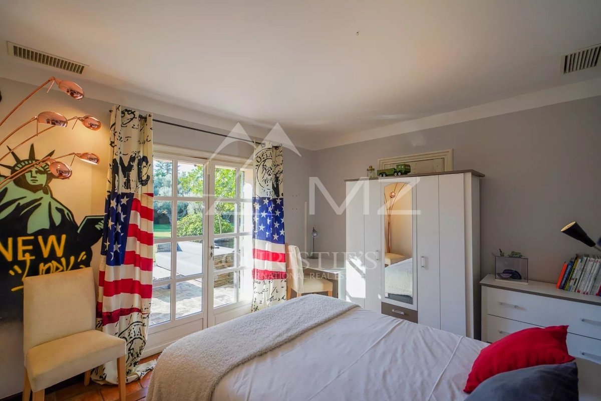 Located in Gassin, in a beautiful landscaped park of 3000 m² near the Golf, this exceptional property consists of 5 bedrooms, close to Saint-Tropez and 10 minutes from the beaches.