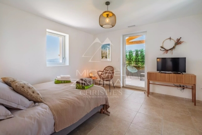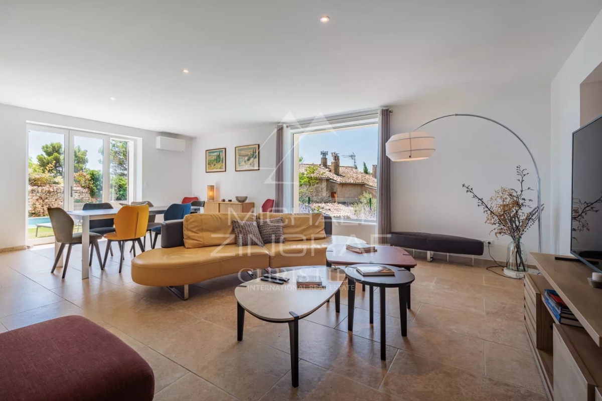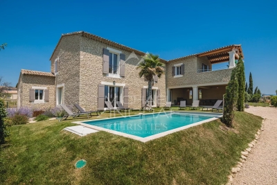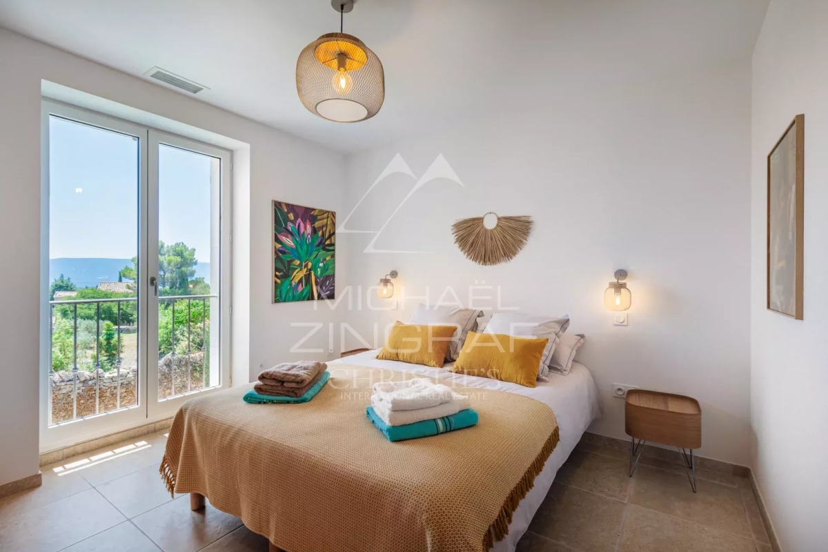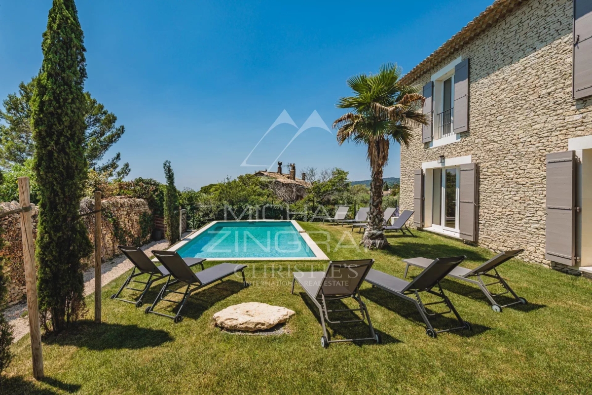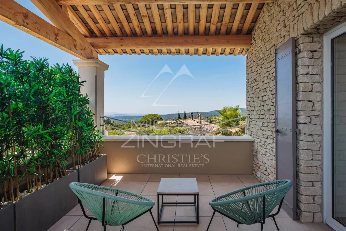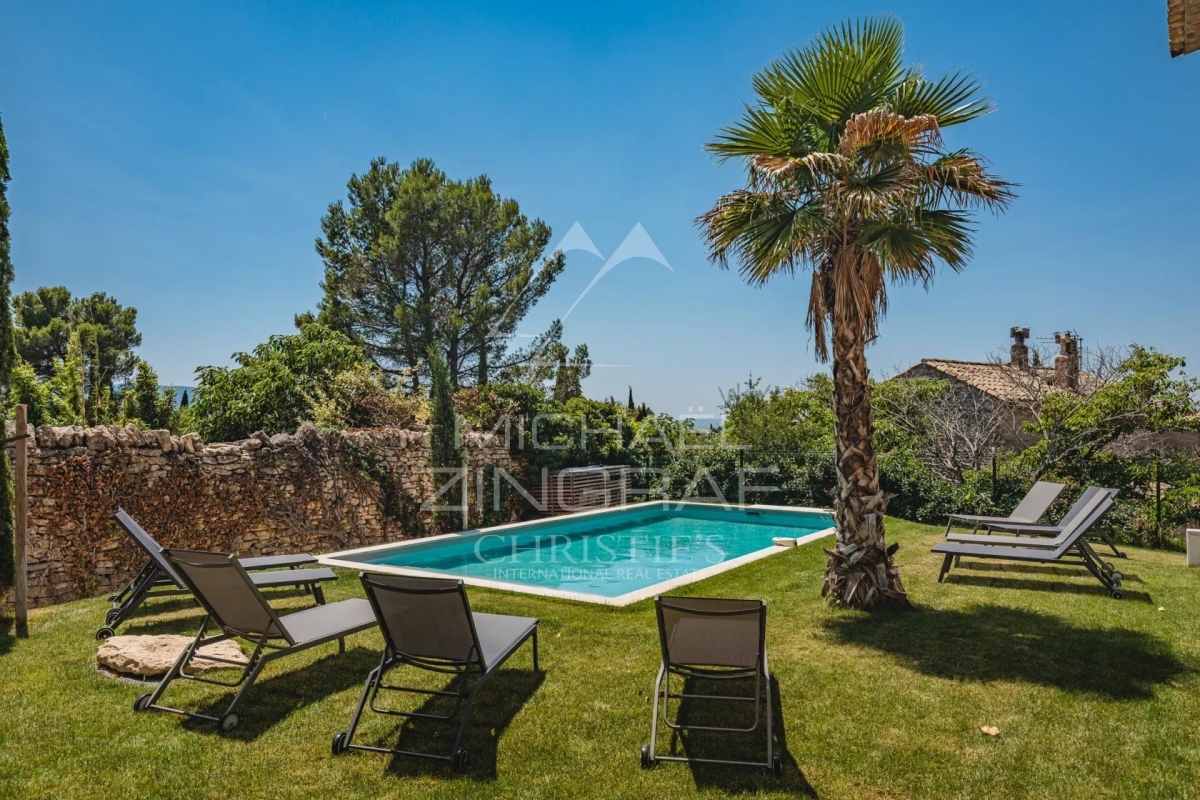 Close to the center of the village of Gordes, accessible on foot in less than fifteen minutes, let's discover this beautiful house with a panoramic view. A lovely 8 x 4 m swimming pool with grassed area and beautiful pool house awaits you for long moments of idleness. The interior, modern and bright, offers two well-appointed levels with the day area on the ground floor, open and functional. The sleeping area, upstairs, includes 5 beautiful en-suite bedrooms, the most spacious of which has a private terrace and a view of the perched village.