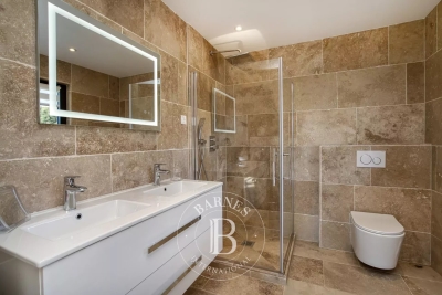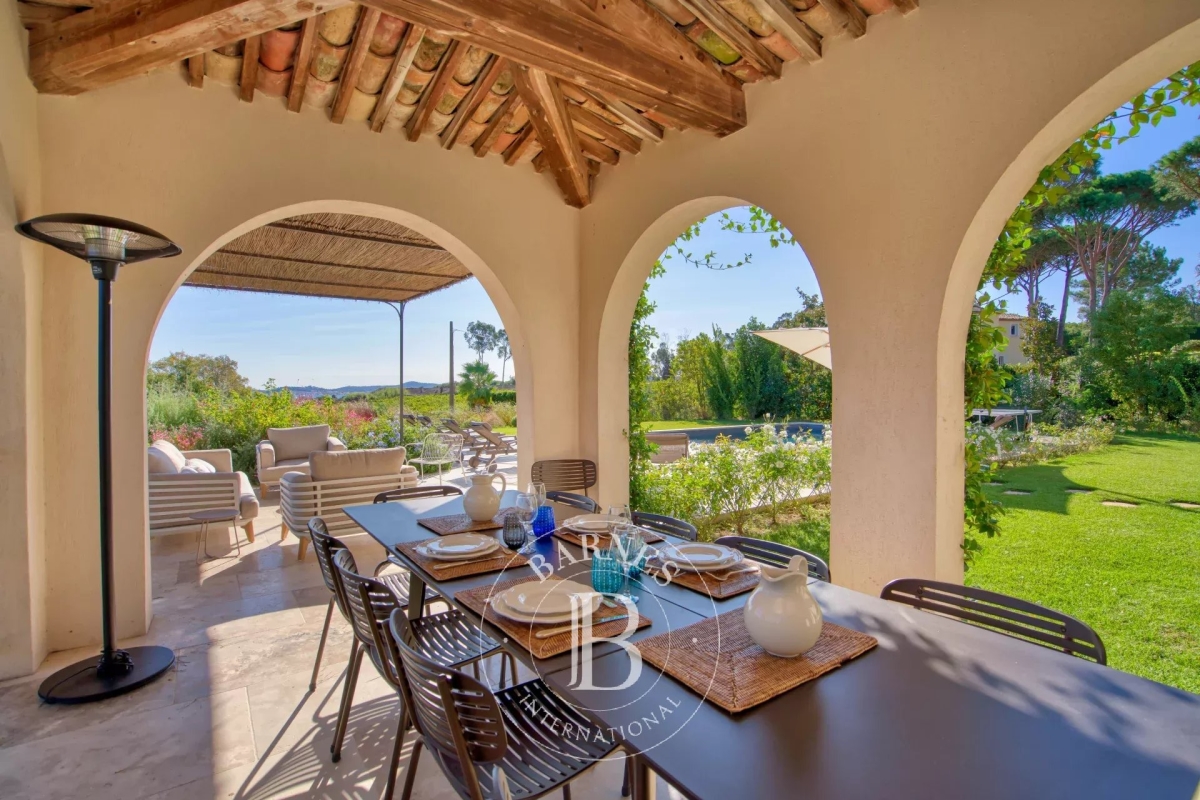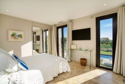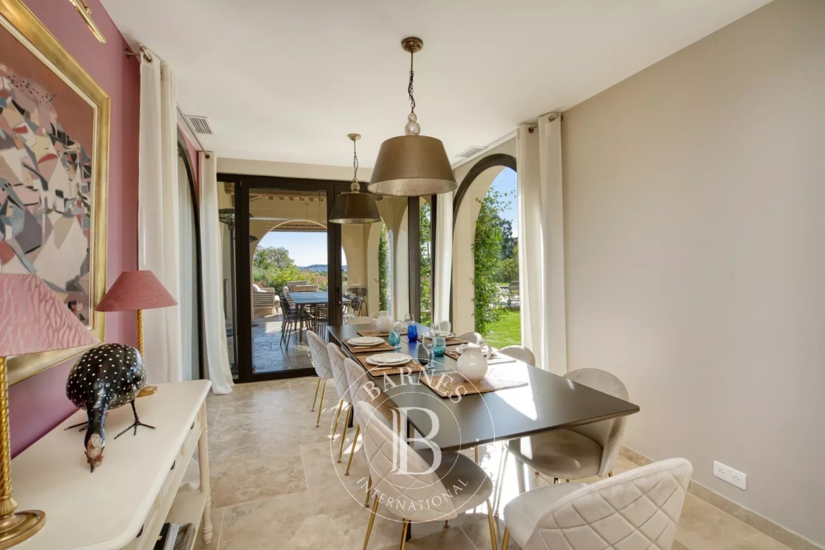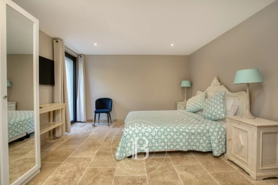 This villa of approximately 380 sqm, located in a sought-after estate in Grimaud, offers a luxurious living experience. Fully renovated with high-end finishes, it features a spacious living room as well as a fully equipped kitchen opening onto a dining area. The villa includes six en-suite bedrooms within the house. The outdoor offers several relaxation areas, multiple outdoor terraces, a pétanque court, and a swimming pool. Included services: regular housekeeping, bed linen, pool towels, and personalized BARNES concierge service. Information about the risks to which this property is exposed is available on the Géorisques website: www.georisques.gouv.fr