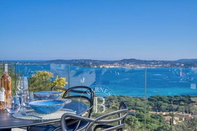 In the heart of a private domain, this beautiful villa of 650 sqm + 150 sqm of terrace on a plot of 3,000 sqm enjoys a magnificent panoramic view of the bay and the village of Saint-Tropez. The villa has a beautiful swimming pool with pool house, GYM as well as a jacuzzi on the upper terrace. It is made up of large living rooms all with a very beautiful sea view, as well as 6 bedrooms with bathrooms. The various terraces offer an exceptional panorama. A closed garage completes the property. BARNES concierge service and cleaning included Information on the risks to which this property is exposed is available on the Georisques website: www.georisques.gouv.fr