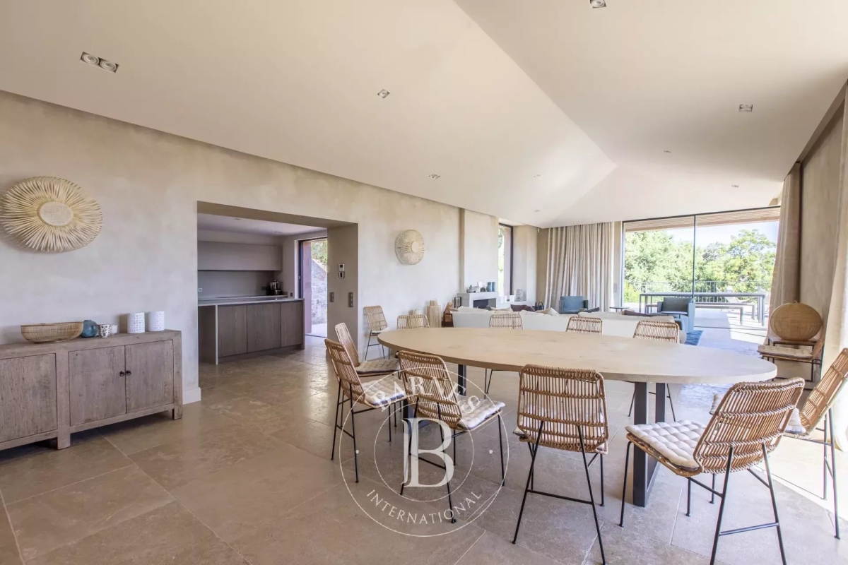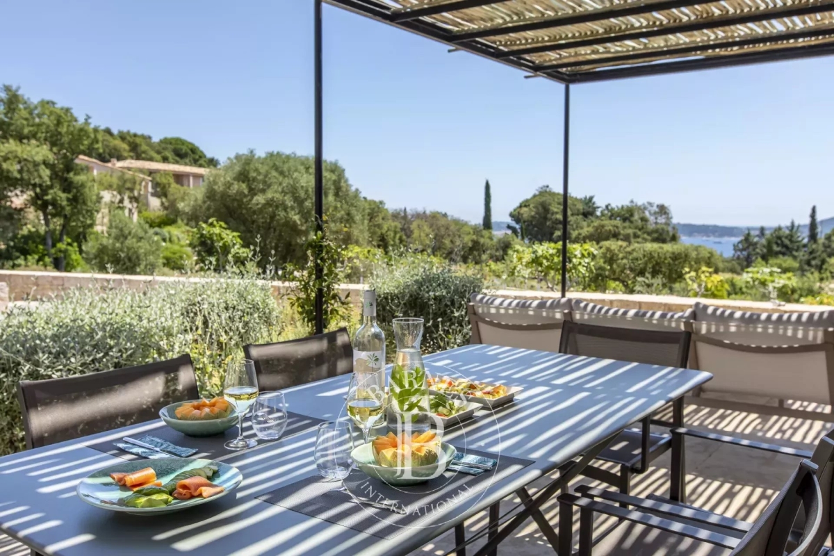 SEASONAL RENTAL - GOLFE DE SAINT-TROPEZ/GRIMAUD - DOMAINE OF 4 VILLAS - PANORAMIC SEA VIEW This delightful estate extends majestically over 7 hectares and comprises four sumptuous villas and a vast pool house. An old restored farmhouse with a surface area of 412 sqm, offering four bedrooms, accompanied by a two-bedroom annex house. A contemporary villa with a surface area of 429 sqm, offering four bedrooms, with a one-bedroom annex house and a second two-bedroom annex house. Another contemporary villa with a surface area of 429 sqm, offering five bedrooms and a master suite. A 319 sqm contemporary villa with four bedrooms and a master suite. All villas are on two levels, comprising an entrance hall, spacious living/dining room, kitchen, bedrooms and laundry room. Each benefits from an aqualift-standard swimming pool and landscaped terrace. The beautifully wooded grounds also include a pool-house comprising a large living/dining room, adjoining lounge, kitchen and utility room, as well as a checkroom with shower. A 20-metre heated swimming pool, a relaxation room and a roof terrace complete this exceptional space. Facilities: Pool house, barbecue/plancha, gym, heated pool (on request and at extra cost), pool cover, alarm system, covered parking, helipad. Services included: regular housekeeping, linen, pool towels and personalized concierge service. Information on the risks to which this property is exposed is available on the Géorisques website: www.georisques.gouv.fr