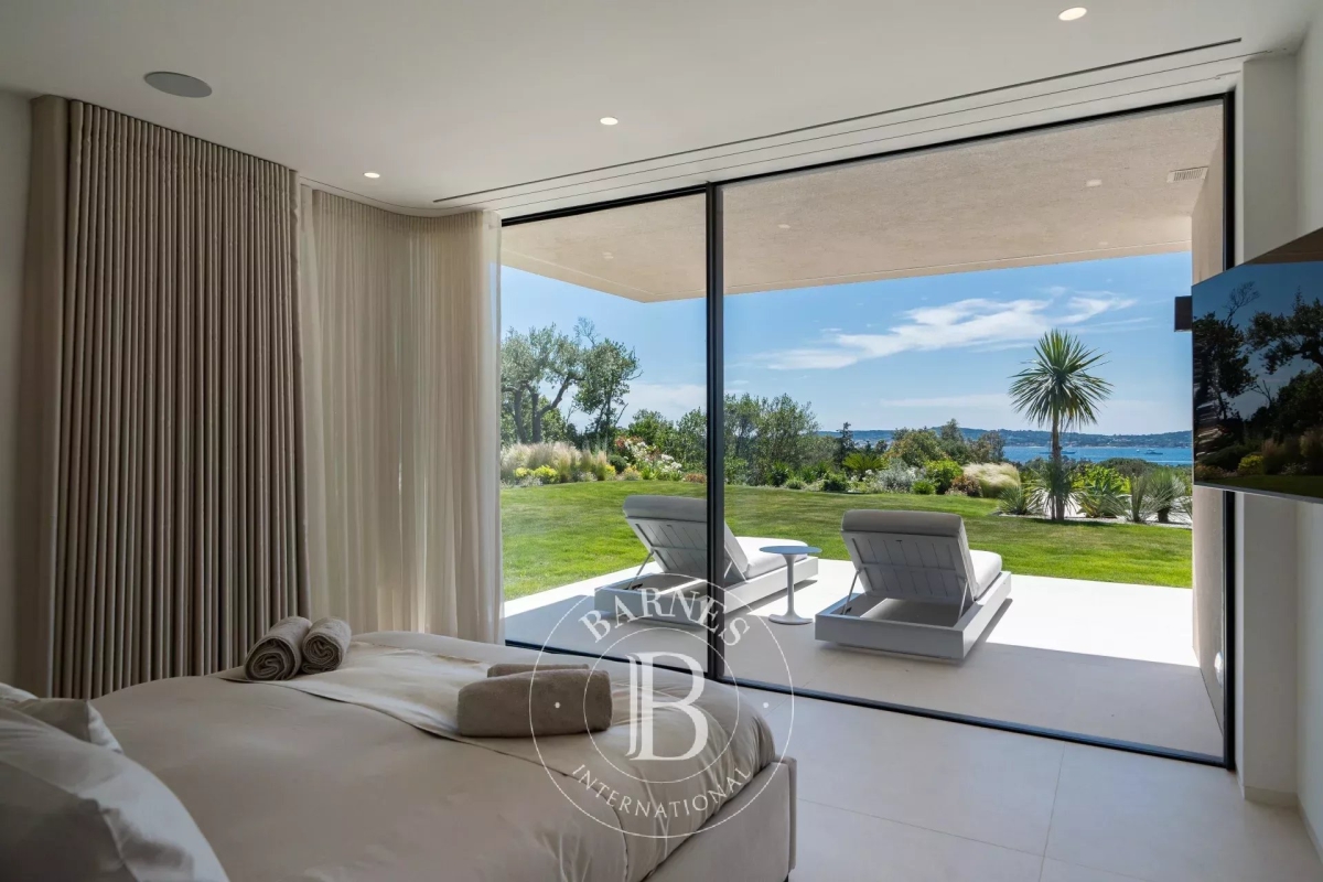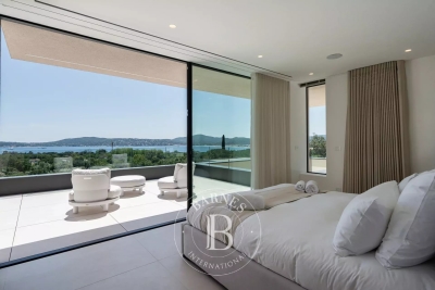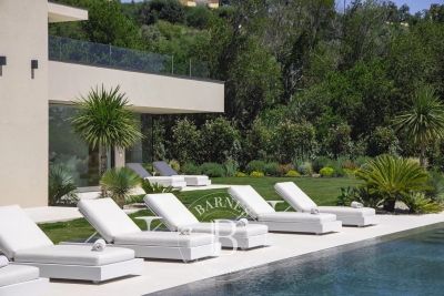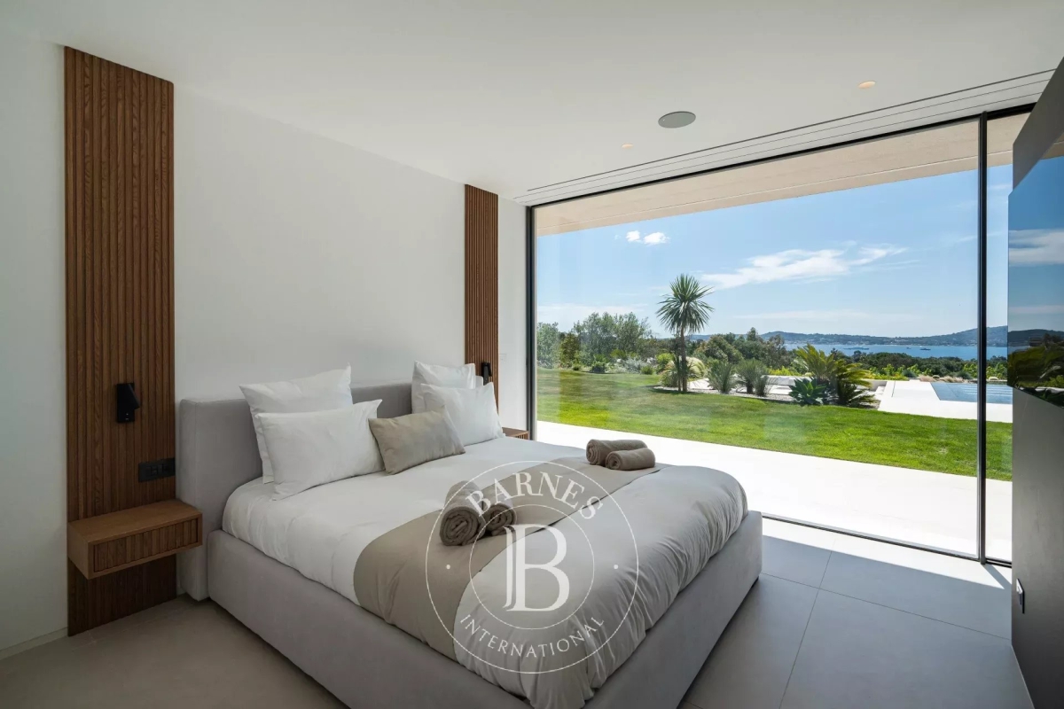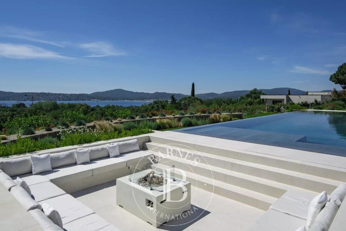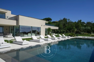 Located in the commune of Grimaud, this villa offers a beautiful view of the Gulf of Saint-Tropez. It comprises a beautiful living room opening onto the exterior, a fully equipped kitchen, a dining room, six en suite bedrooms and an annex suite. Several landscaped terraces provide pleasant spaces for relaxation. A magnificent swimming pool overlooking the Gulf of Saint-Tropez, a welcoming pool house, an upstairs Jacuzzi and a pétanque court complete the outdoor facilities. Facilities : Alarm system, air conditioning, WIFI, parking spaces. Services included: Housekeeping, linen, pool towels and personalized BARNES concierge service. “Information on the risks to which this property is exposed is available on the Géorisques website: www.georisques.gouv.fr ”