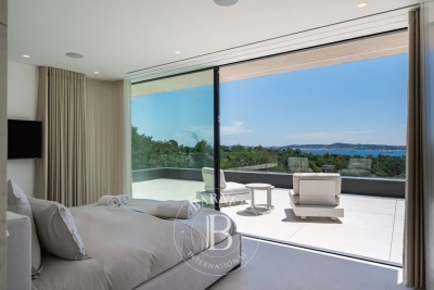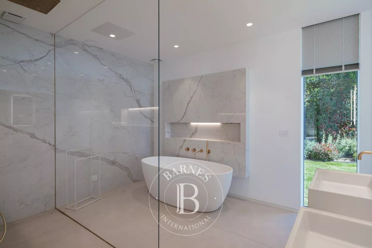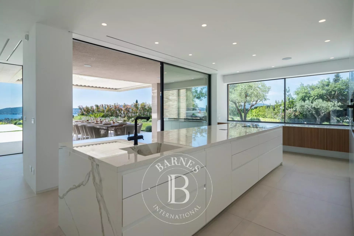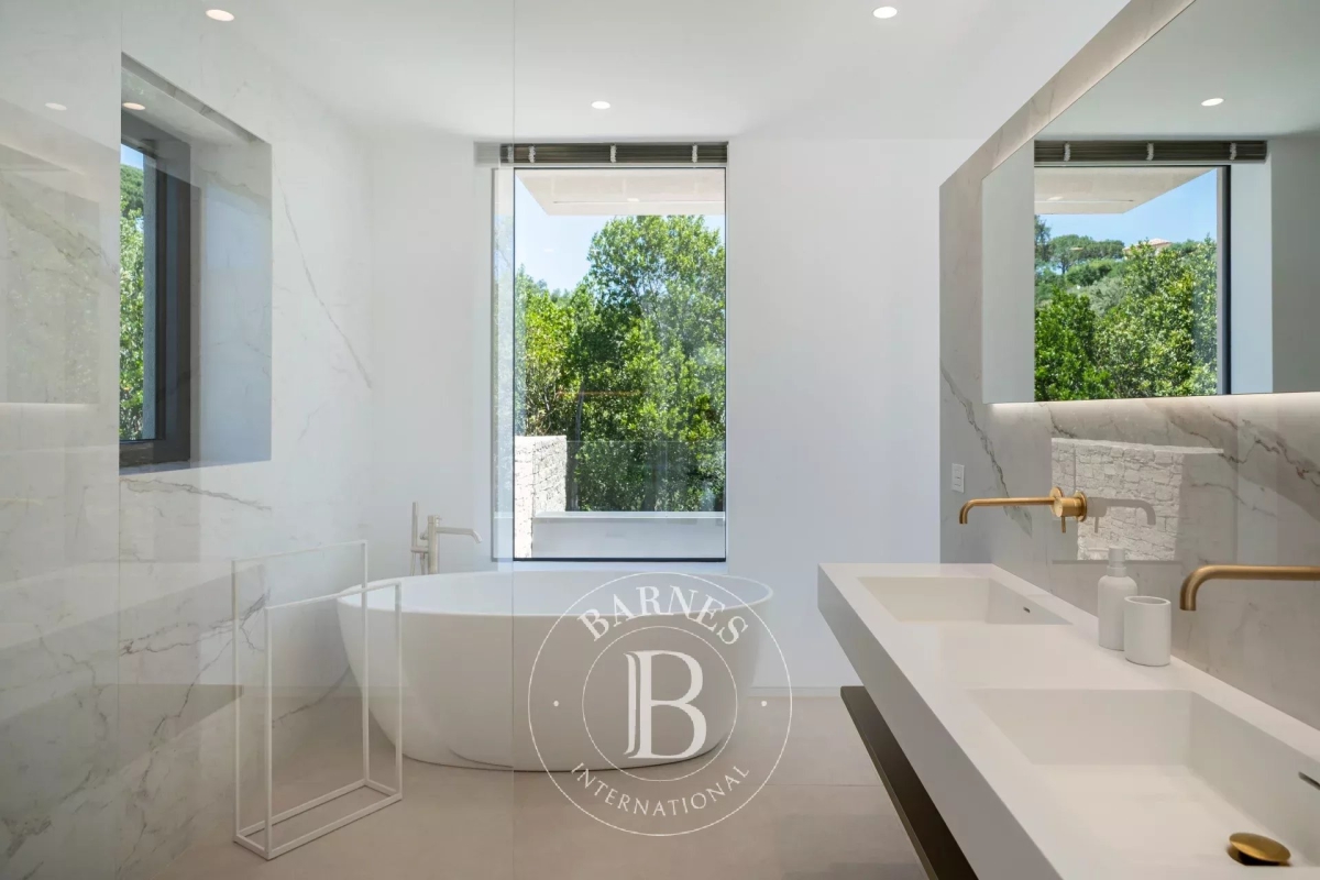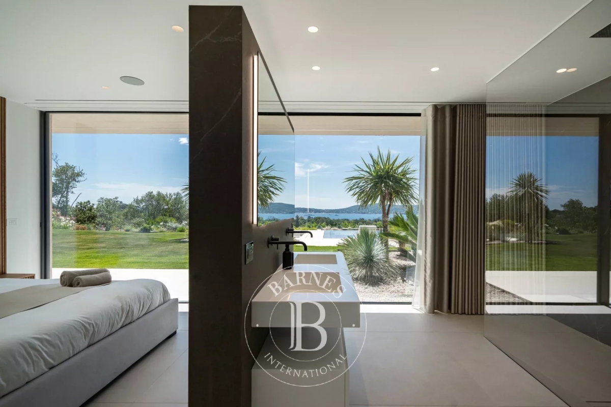 Located in the commune of Grimaud, this villa offers a beautiful view of the Gulf of Saint-Tropez. It comprises a beautiful living room opening onto the exterior, a fully equipped kitchen, a dining room, six en suite bedrooms and an annex suite. Several landscaped terraces provide pleasant spaces for relaxation. A magnificent swimming pool overlooking the Gulf of Saint-Tropez, a welcoming pool house, an upstairs Jacuzzi and a pétanque court complete the outdoor facilities. Facilities : Alarm system, air conditioning, WIFI, parking spaces. Services included: Housekeeping, linen, pool towels and personalized BARNES concierge service. “Information on the risks to which this property is exposed is available on the Géorisques website: www.georisques.gouv.fr ”