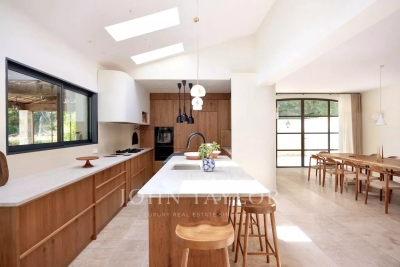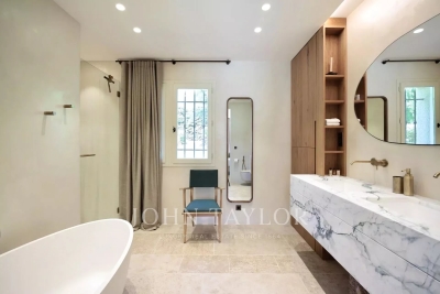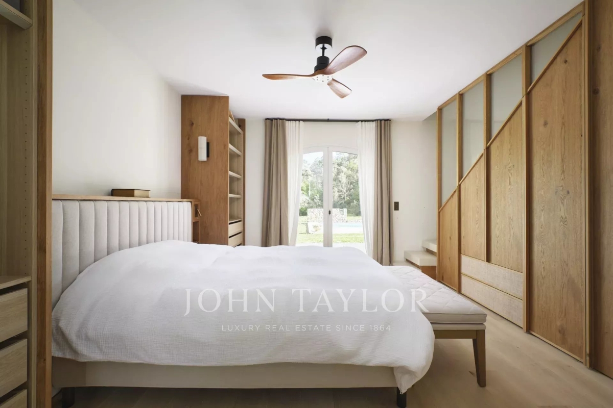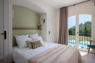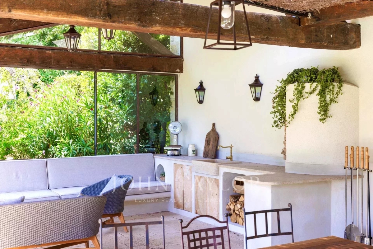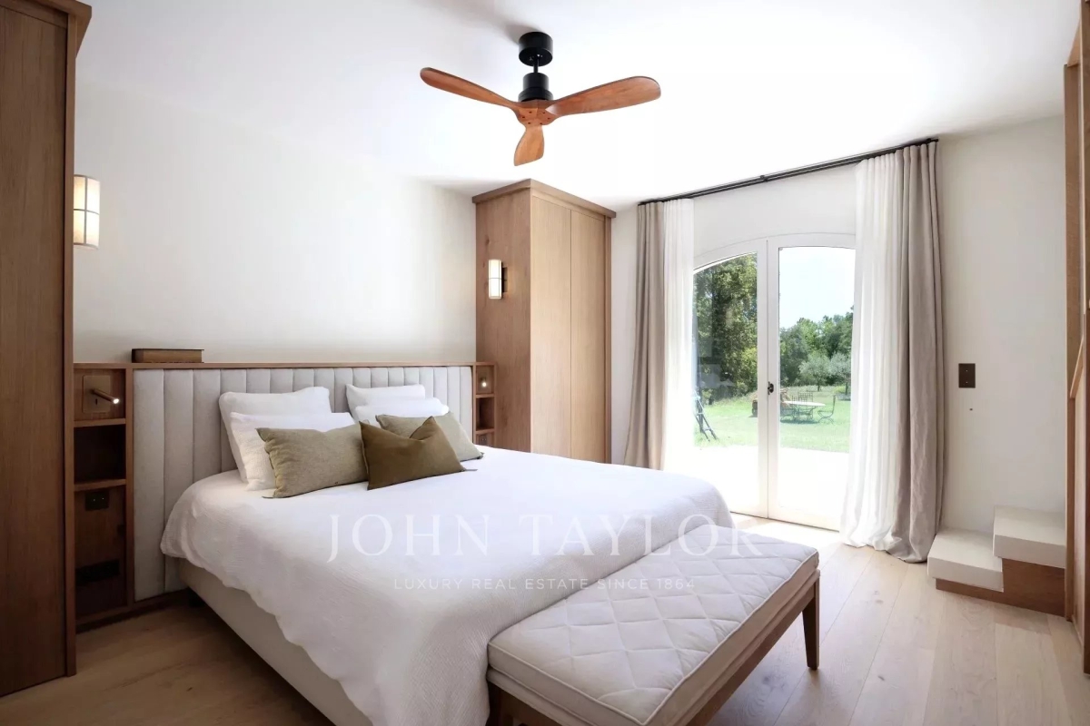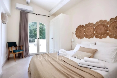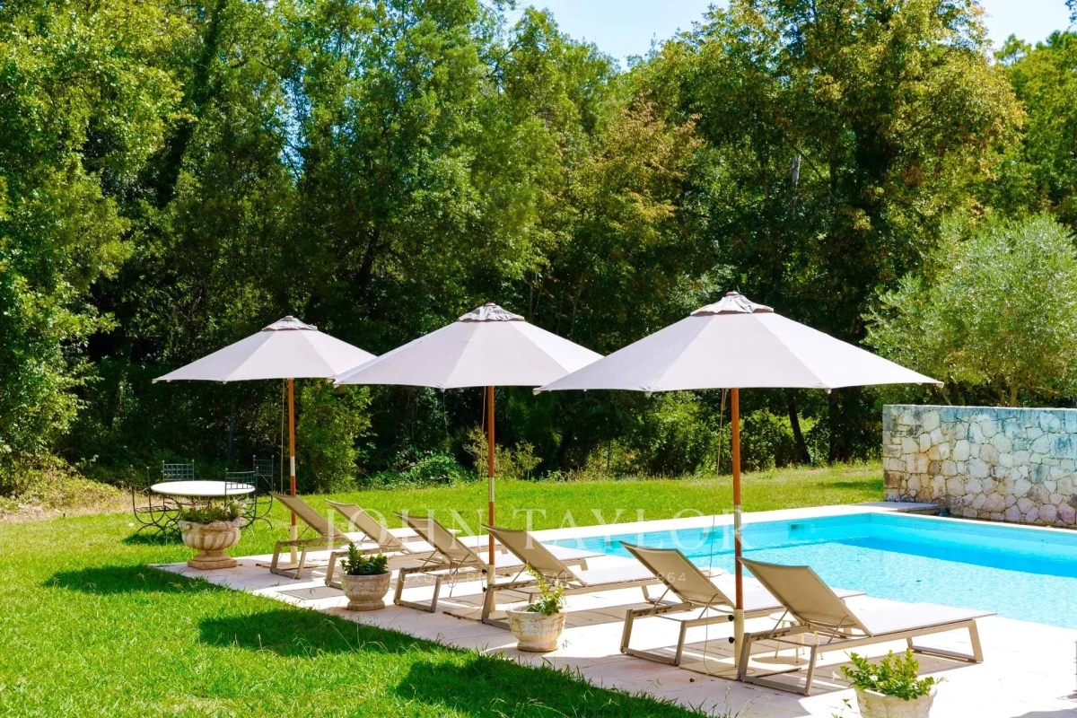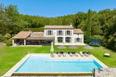Located in a quiet, privileged setting close to the village of La Colle-sur-Loup, this magnificent 350 m² property combines elegance, comfort and the art of living. Surrounded by a vast 5000 m² landscaped garden, it offers a true haven of peace, perfect for unforgettable vacations with family or friends. The house immediately appeals with its refined, warm decor. Each room has been carefully thought out, combining harmonious colors, tastefully selected furnishings and noble materials. Natural stone, quality woods, delicate fabrics: everything here exudes comfort and refinement. With its 5 bedrooms, the house can accommodate up to 10 guests. On the first floor, you'll find a large, fully-equipped, waxed concrete kitchen and cold room. The cosy living room is the perfect place to relax. A master suite with a 180 cm bed is located on the same level. It has its own bathroom with shower, bath and toilet, and also offers direct access to the swimming pool. On the first floor, you'll find a spacious terrace with a fully-equipped outdoor kitchen. A large table invites you to share your meals in the shade of the pergola, while enjoying a soothing view of the forest. Upstairs, you'll find 4 additional bedrooms with 160cm beds; 1 mezzanine bedroom with shower room, toilet and balcony; 2 bedrooms with en suite shower rooms; 1 bedroom with shower room and solarium, all with fitted closets. The basement features an office area and laundry room. Numerous parking spaces are available. This house has all the charm and facilities you need for a pleasant stay. Information on the risks to which this property is exposed is available on the Géorisques website: www.georisques.gouv.fr Contact: 0603211912.