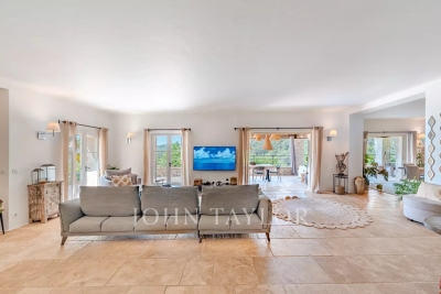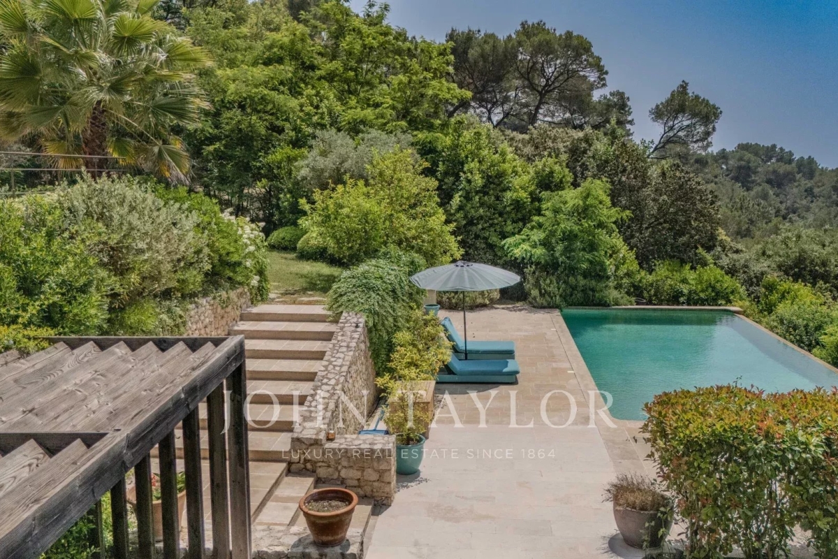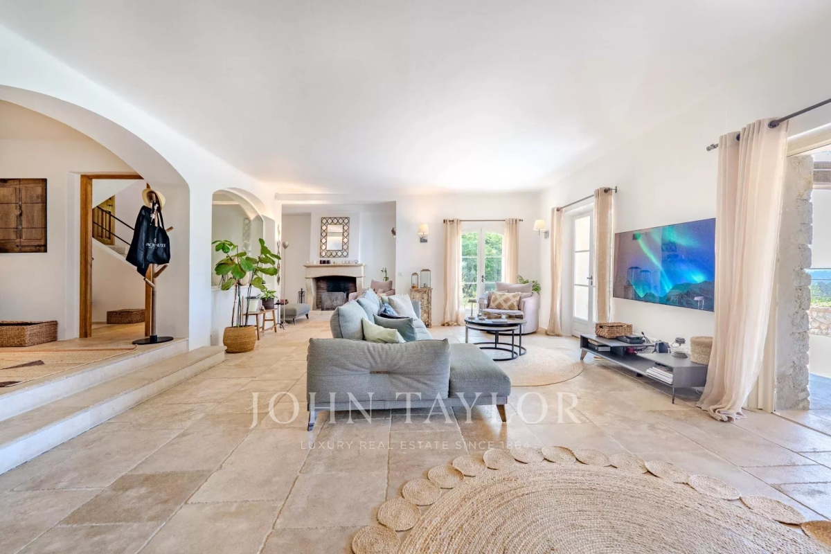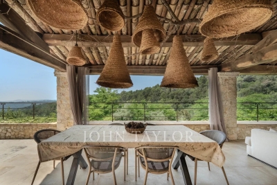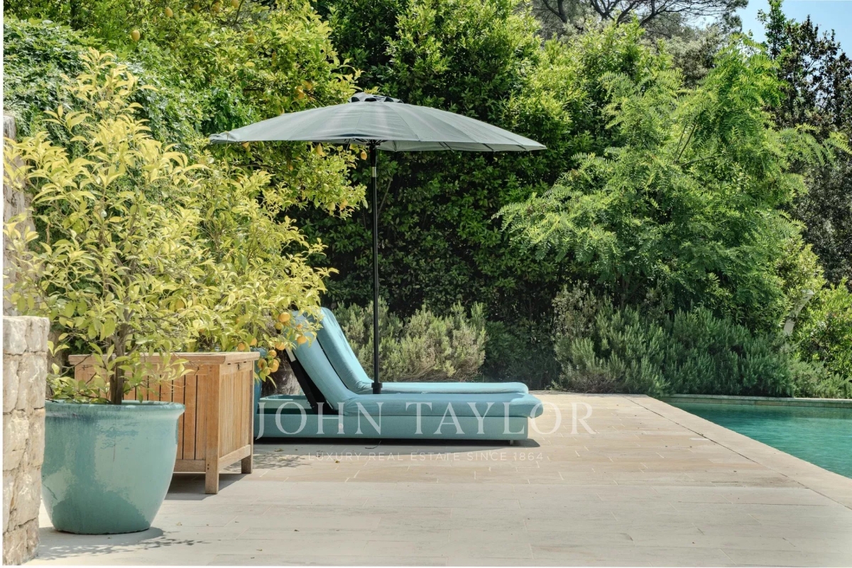 In the heart of a 1. 5-hectare landscaped private estate, this superb Provencal-style stone house enjoys a peaceful setting and uninterrupted views of nature and the sea. The tastefully decorated interior offers a warm, elegant atmosphere that makes you feel at home from the moment you enter. The entire house is air-conditioned, both bedrooms and living areas, for absolute comfort in all seasons. A rare property full of charm, for lovers of serenity and the art of living in Provence. Large, bright and tastefully decorated living room with dining area and fully equipped open kitchen. All opening onto a vast terrace with magnificent sea views. First floor: - A very large master suite with 2x2m bed, large dressing room, sitting area, TV, bathroom with shower and bathtub. - A bedroom with two single beds and private bathroom (bath) Garden level: - One bedroom with 160 cm bed, direct access to the garden, bathroom with bathtub At the other end of the house, upstairs : - One bedroom with 160 cm bed and bathroom (bath) The house also has two independent studios, accessible from the outside, which can be joined together to form a large self-contained space: First studio: 2-seater sofa bed + 1 single bed, fitted kitchen, bathroom with shower Second studio: double bed, bathroom with shower Outside, a magnificent infinity pool offers a breathtaking view of nature and the sea in the distance, inviting you to relax in an exceptional setting. Information on the risks to which this property is exposed is available on the Géorisques website: www.georisques.gouv.fr Contact: 0603211912.