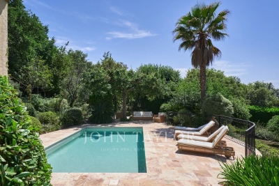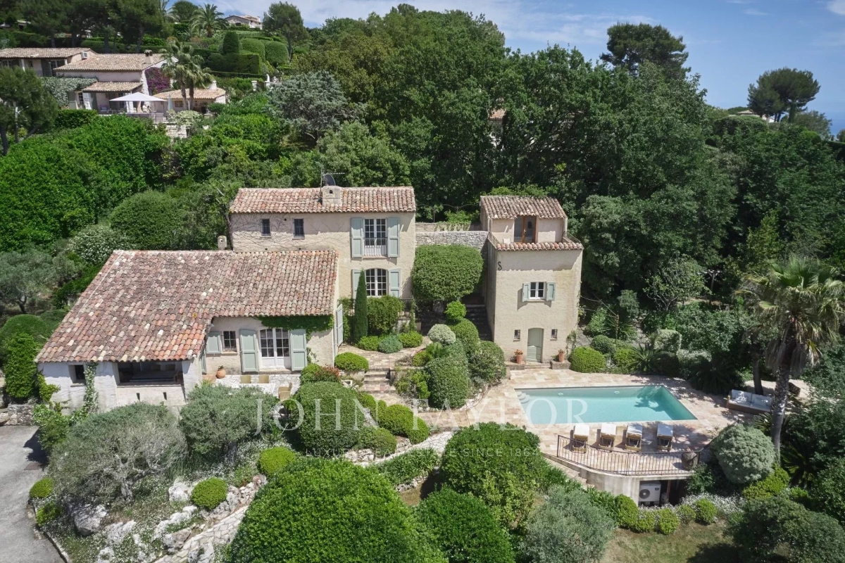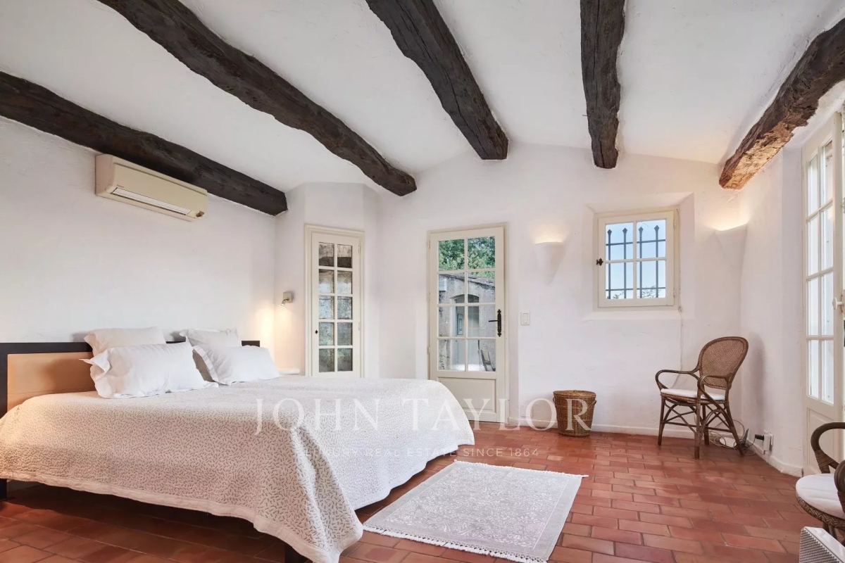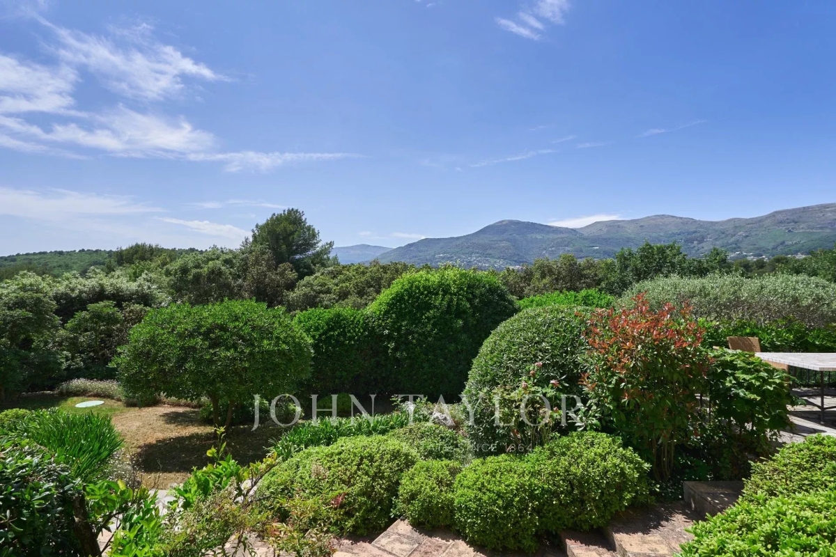Situated in the sought-after Hauts de Saint Paul estate, with a spectacular view of the fabulous sunsets over the village of Tourrettes sur Loup, this charming 195 m² Provencal mas boasts a 2,650 m² landscaped garden with heated pool, terrace and floodlit pétanque court. It welcomes you with a beautiful courtyard of honor, antique entrance door, a hall opening directly into a large, bright living room with fireplace, dining room, fitted kitchen opening onto terrace, mezzanine/study/library. Night spaces The main house has two bedrooms: a master suite on the second floor, with king-size bed, bathroom equipped with shower and bathtub, and private solarium; and a guest bedroom accessible by climbing a few steps, with shower room and direct access to the pool. Two independent single-storey cottages complete the ensemble, each housing a suite with private shower room and separate entrance, perfect for hosting guests in comfort and independence. Each room is air-conditioned and has an excellent Internet connection, guaranteeing comfort and connectivity on a daily basis. Laundry, cellar, wine cellar and garage (under the main house). Information on the risks to which this property is exposed is available on the Géorisques website: www.georisques.gouv.fr Contact: 0603211912.