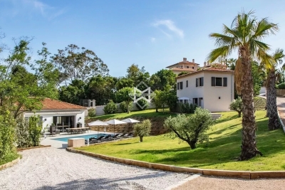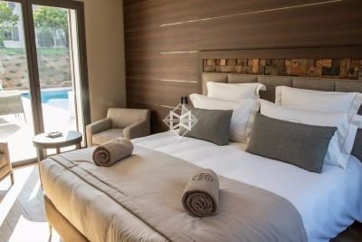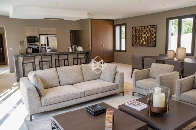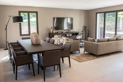 This superb villa is situated in a magnificent enclosed 10ha Mediterranean park, not far from the beaches of Gigaro, offering a total surface area of 320 m². The main villa consists of a large living space opened onto the heated swimming pool and 2 magnificent suites, the secondary villa is composed of 3 additional suites for family or guests. Helisurface, video surveillance, parahotelier service, 2 mini mochas are proposed for the guests to explore the property, a boat to rent with its skipper. Luxurious contemporary villa in a prestigious and quiet environment within only 20 minutes from Saint-Tropez.