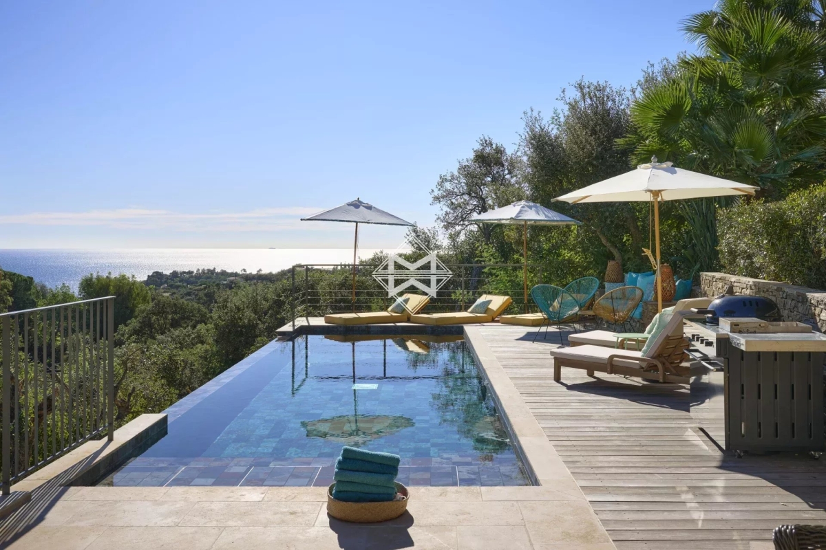 Superb new neo-Provencal villa just a few minutes from the beach and the village of La Croix Valmer. Built on 3 levels, it consists of 3 bedrooms each equipped with a shower room and terrace, as well as a dormitory with 4 beds for the greatest happiness of children. Built to take full advantage of a panoramic sea view, the villa consists of parking for 4 cars, a 1-car garage, a large living room, a fully equipped kitchen and a lounge opening onto a large terrace with infinity pool. Ping pong table and petanque court.