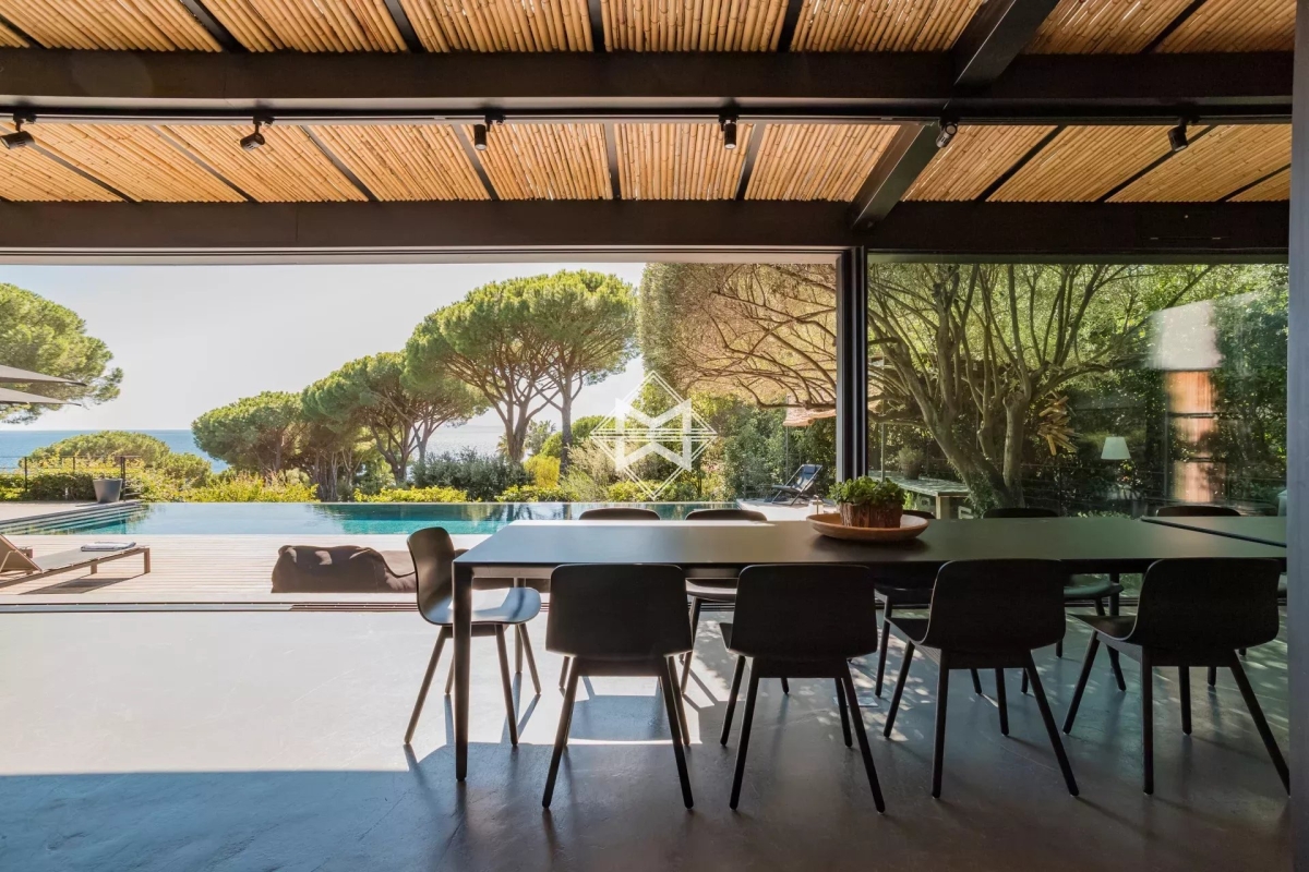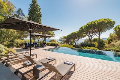 Located in La Croix-Valmer, the Villa embodies Mediterranean luxury and refinement. This magnificent property offers breathtaking views of the sea and privileged access to a sandy beach, creating an idyllic setting for unforgettable holidays. With its 6 bedrooms in the main house and 1 service bedroom in the complementary house, this property can accommodate a large number of guests. The spacious and bright living areas include a dining room that can accommodate up to 14 guests, a fully equipped modern kitchen, and a large living room with a big screen and Sonos system for relaxation and entertainment. The Villa also features a year-round heated infinity pool surrounded by a wooden terrace with sun loungers, providing an ideal space for relaxation. Additionally, close to the main house is a Beach House by the seaside, complete with a bedroom, a fully equipped kitchen, and a private terrace with a petanque court, offering a peaceful retreat with stunning sea views. An attentive concierge is at your disposal to cater to all your needs, whether it's arranging a driver, yoga classes, a personal trainer, or even booking the services of a masseuse. With its upscale amenities and idyllic location, the beachfront Villas promise an exceptional vacation experience on the French Riviera.