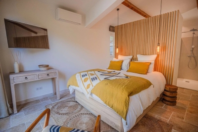 Let yourself be charmed by this magnificent villa offering breathtaking views of the sea and surrounding hills. This property, with high-quality amenities and tastefully decorated, is perfect for warm family vacations. Bright and spacious, the living area opens onto a beautiful terrace, complemented by a dining area and a fully equipped kitchen. You will also find a Master bedroom with its en-suite bathroom, 2 en-suite bedrooms, and a double bedroom with a separate shower room. The exterior boasts lovely terraces, a summer kitchen equipped with a plancha, a Green Egg barbecue, and a deep fryer, an infinity pool, a pétanque court, a garage, and several parking spaces. High season check-in/check-out: from Saturday to Saturday (minimum 7 nights) To be paid on-site: Security deposit and Tourist tax Registration number: pending