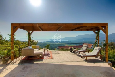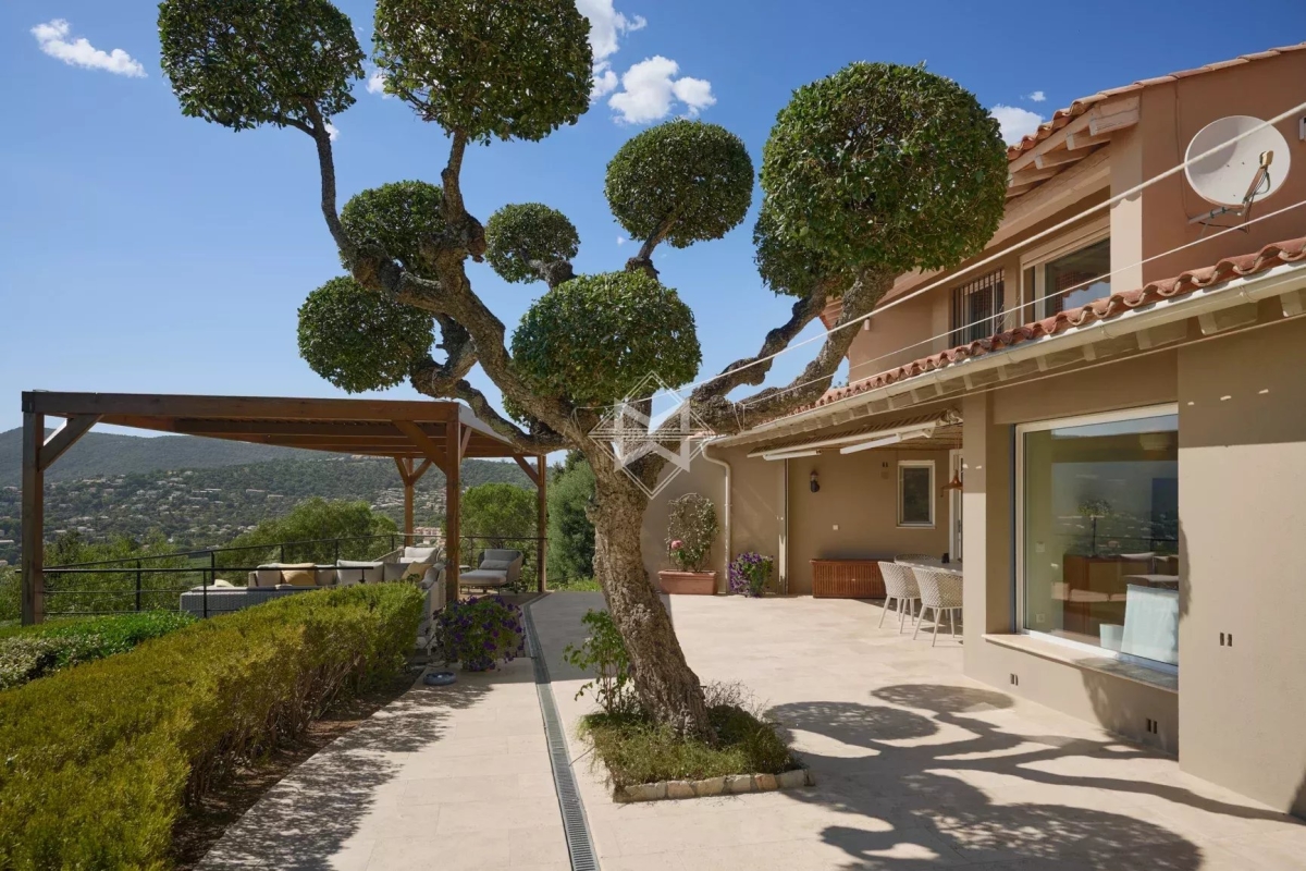 Bathed in natural light and overlooking the bay of Le Lavandou, this stunning 250 square meters villa offers four en-suite bedrooms, each with their own private bathrooms & toilets. The use of light wood furnishings throughout creates a warm, inviting atmosphere ideal for relaxation. A fully equipped kitchen opens onto an elegantly appointed dining area, a refined living room, and a cosy lounge space. The layout has been thoughtfully designed to provide each guest with a sense of privacy and personal comfort. Outdoors, a spacious wooden-decked terrace, a large swimming pool, a pétanque court, and a ping-pong table offer a variety of leisure activities. The lush, Mediterranean-style landscaped garden spans approximately 2,500 sqm. Nestled in the heights of Gigaro and just moments from the beaches of Sylvabelle and Héraclée, this exceptional property enjoys absolute tranquillity in an idyllic setting.