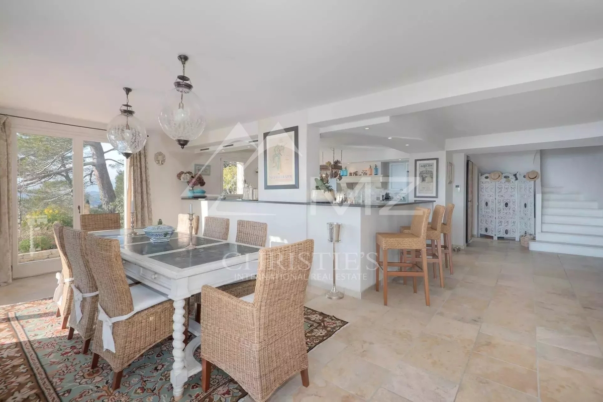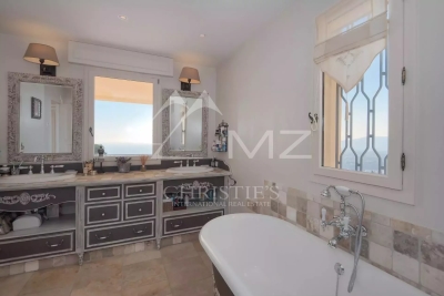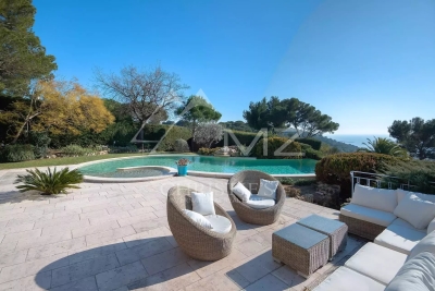 Superb Provencal style villa in the Californie area of approx. 350 sqm. It offers a living room with a dining room and a view over the bay of Cannes, a fully equipped kitchen, 2 bedrooms with a shower room and a bathroom, a sauna and a laundry. On the ground floor : a living room with terrace access, a master bedroom with a bathroom and a bedroom with a shower room. On the 1st floor : a bedroom with a shower room and acces to the roof terrace of approx. 36 sqm. Heated infinity pool, covered parking for 3 cars and grounds of approx. 2000 sqm. Numéro d'enregistrement 06030 000305 YQ