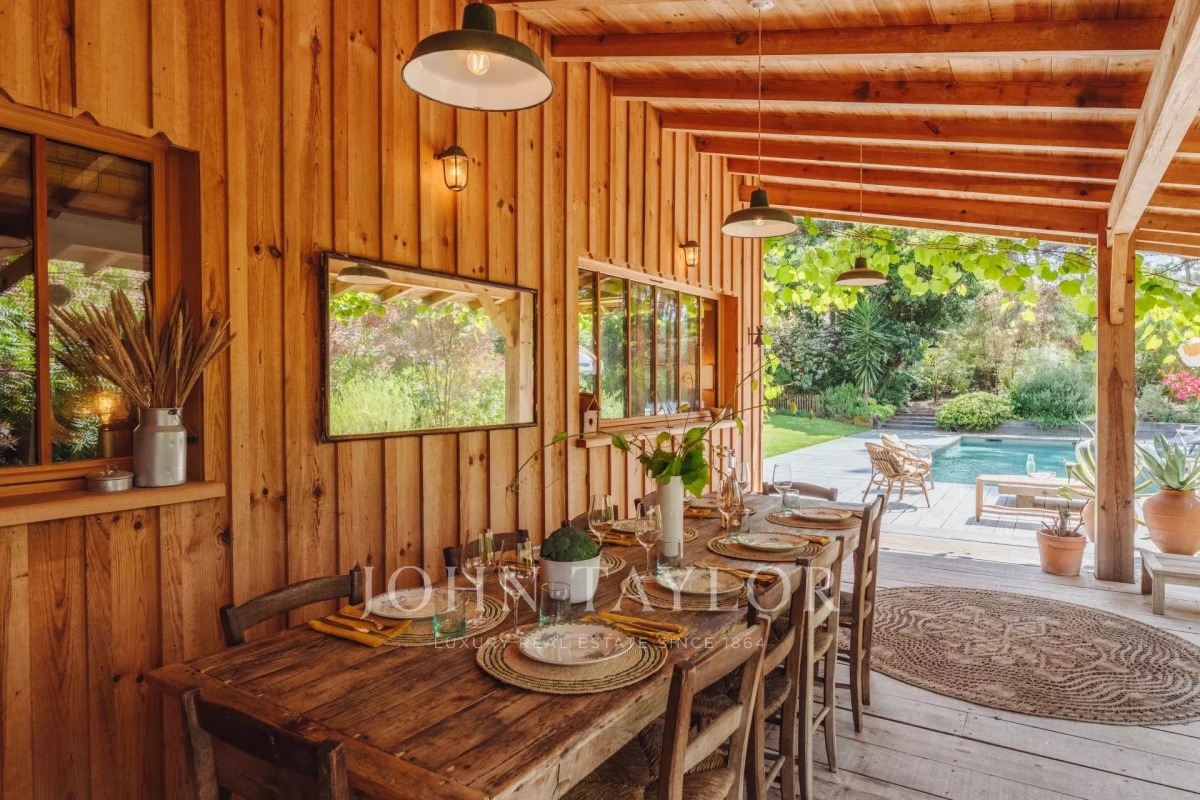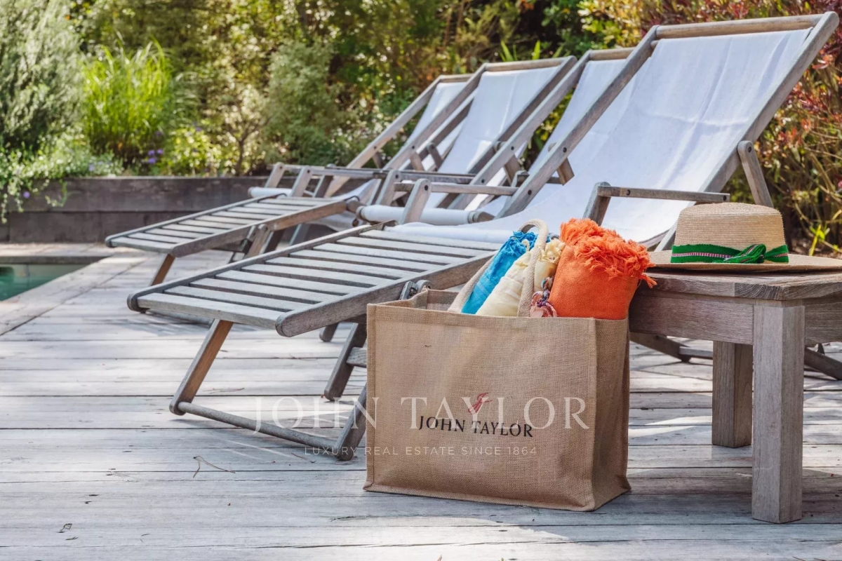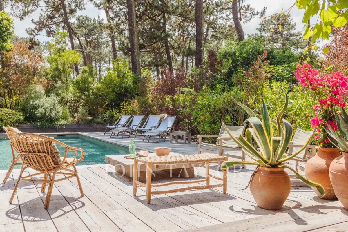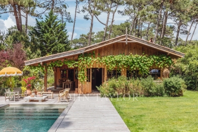 Immerse yourself in the soothing ambiance of Villa Uma, ideally located in the village of Piraillan, just steps away from the market, local shops, and oyster villas. With its authentic architecture, emblematic of Cap-Ferret, nestled in the heart of a lush garden, this single-story villa will transport you to a timeless retreat, ensuring serene holidays. Enjoy 5 bedrooms and 3 bathrooms, elegantly and simply furnished. The spacious layout of this villa provides ample space for the whole family, while natural light floods every corner of the house, creating a warm and inviting atmosphere throughout the day. Central kitchen fully equipped or summer kitchen with barbecue and plancha? Experience a different culinary delight with every meal. The large heated pool will be the centerpiece of your holiday, along with the spacious covered terrace that will bring the whole family together for endless summer evenings. Good news, your furry companions are welcome! For a dream vacation in an exclusive setting, Villa Uma is sure to delight.