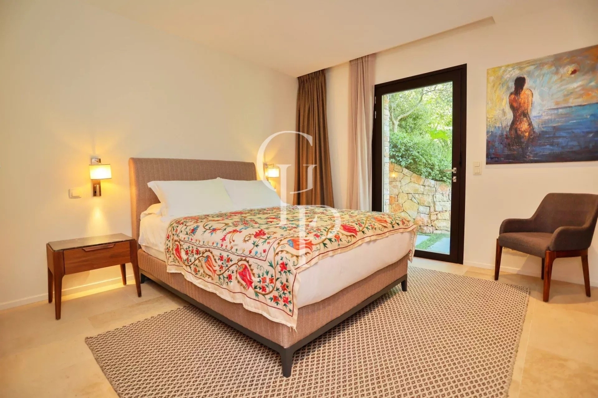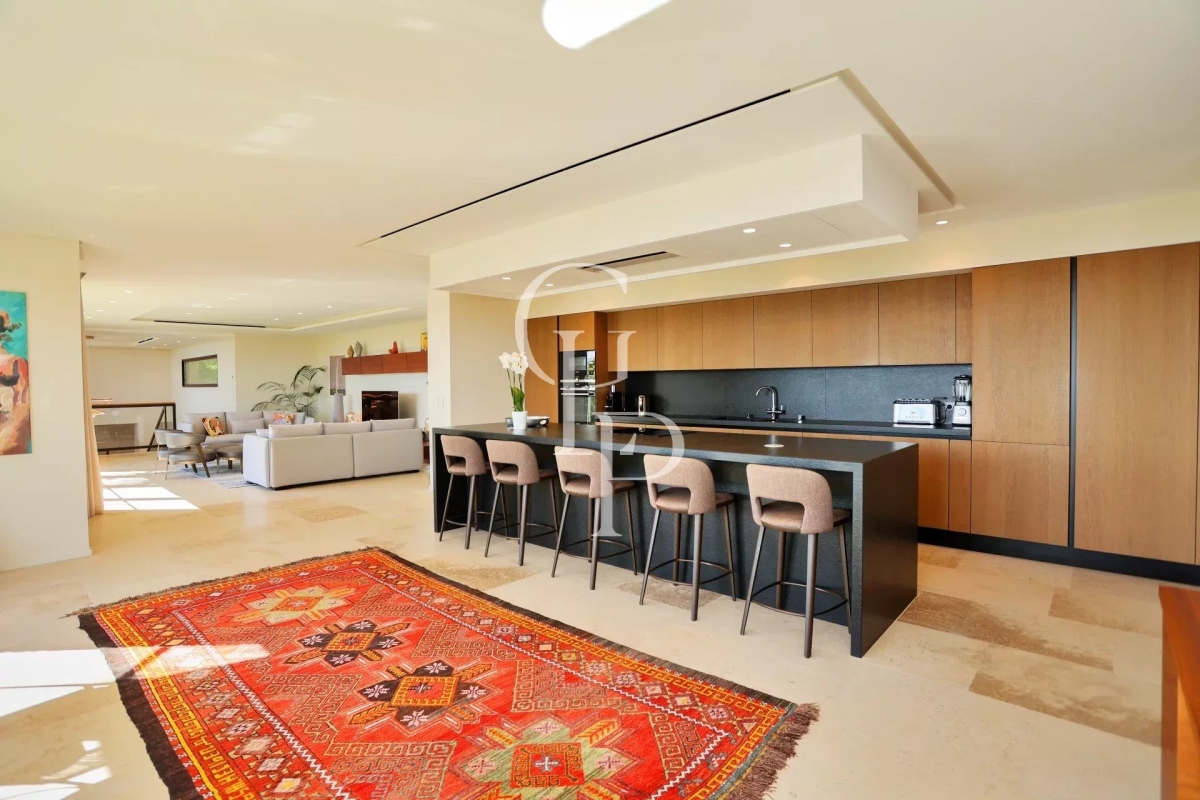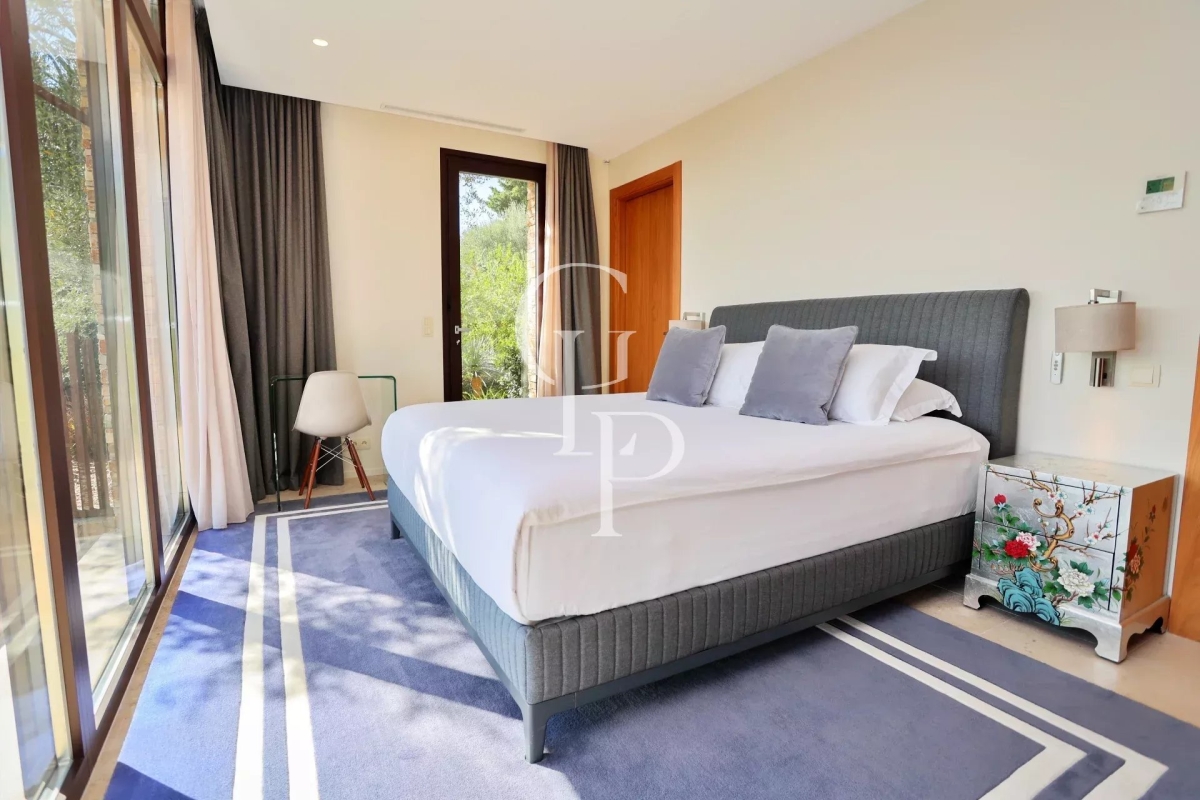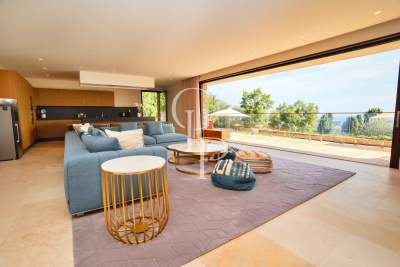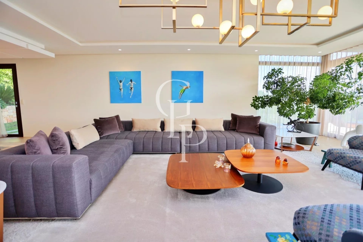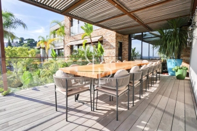 Magnificent 550 m2 villa set in 2000 m2 of land. It has beautiful terraces surrounding a swimming pool with sea views. It has 6 en suite bedrooms (including one for the staff) and 2 garages. Ground floor Living room with sea view Dining room Kitchen Bedroom 1: Double bedroom (140 cm) with en-suite shower room and toilet. No sea view. Guest toilet Upper floor Bedroom 2: Master bedroom (180 cm) with en-suite shower room and bath, double sink and toilet. Lounge area, terrace and sea view. Bedroom 3: Double bedroom (180 cm) with en-suite shower room, toilet and bidet. Sea view. Bedroom 4: Double bedroom (160 cm) with en-suite shower room, toilet and bidet. Sea view. Terrace. Lower floor Bedroom 5: Double bedroom (160 cm) with en-suite shower room, toilet and bidet. Sea view. Bedroom 6: Twin bedroom (80 x 2 cm) with en-suite shower room, kitchenette. Equipped pool house TV lounge Sauna Additional services: Heated saltwater pool (€300 per week), bullet-proof windows (no electric shutters), within walking distance of the village of Mougins. Contact: +33647030154.