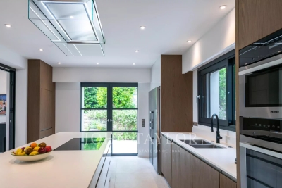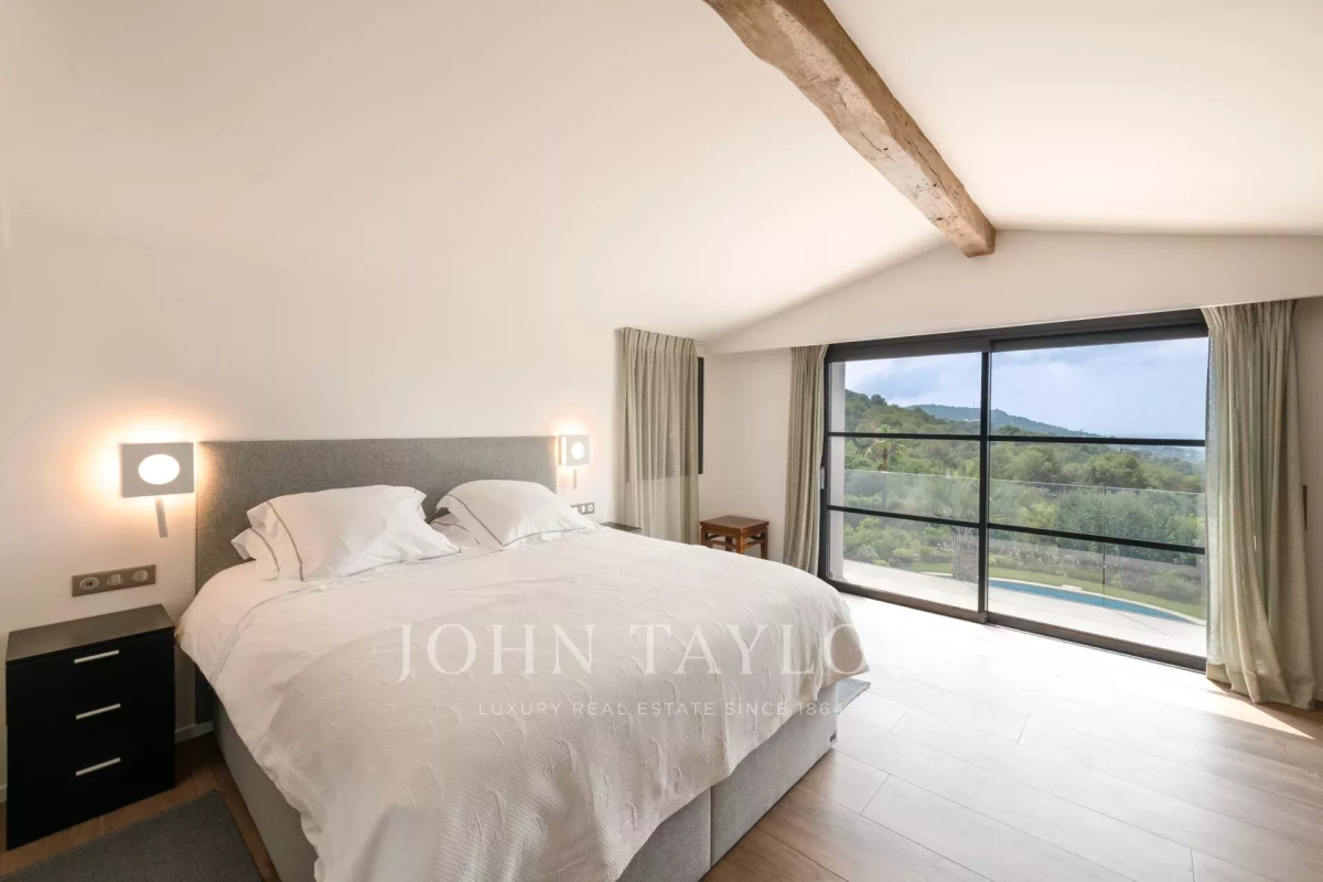 Nestled in a peaceful residential area of Mougins, within easy reach of shops and the village, this sumptuous air-conditioned villa offers the ideal living environment for up to 11 guests. Enjoy high-speed Wi-Fi, a large secure swimming pool, a tennis court and breathtaking sea views from the garden and bedrooms. Let yourself be seduced by this exceptional villa, where every detail has been thought of to offer you comfort and serenity in one of Mougins' most sought-after neighborhoods. From the moment you enter, you'll discover bright, elegant spaces. The first floor features a comfortable living room with TV, a convivial dining room, a fully equipped kitchen, a laundry room and storeroom, and a wine cellar. Accommodation comprises: a first bedroom en suite with bathroom, a second bedroom with a double bed and a single bed, and a private shower room. Upstairs there's an office area, two en suite bedrooms with bathrooms, one with an adjoining study, a spacious dressing room, a fitness and relaxation area with sofa bed, TV and access to a private terrace. A fully equipped studio completes the villa, with kitchen, dining room, living room and en suite bedroom with bathroom. The exteriors are laid out to make the most of fine days: A private tennis court, A poolhouse and outdoor lounge for relaxing, A covered terrace, An outdoor shower, The beautiful secure swimming pool. Information on the risks to which this property is exposed is available on the Géorisques website: www.georisques.gouv.fr Contact: 0609238497.
