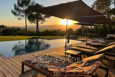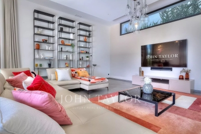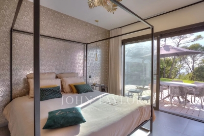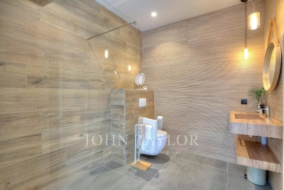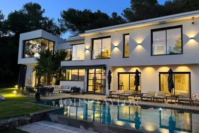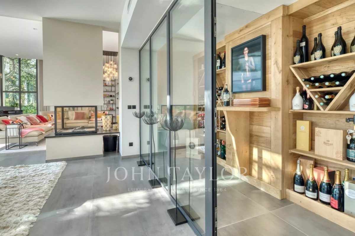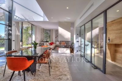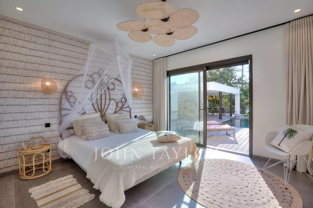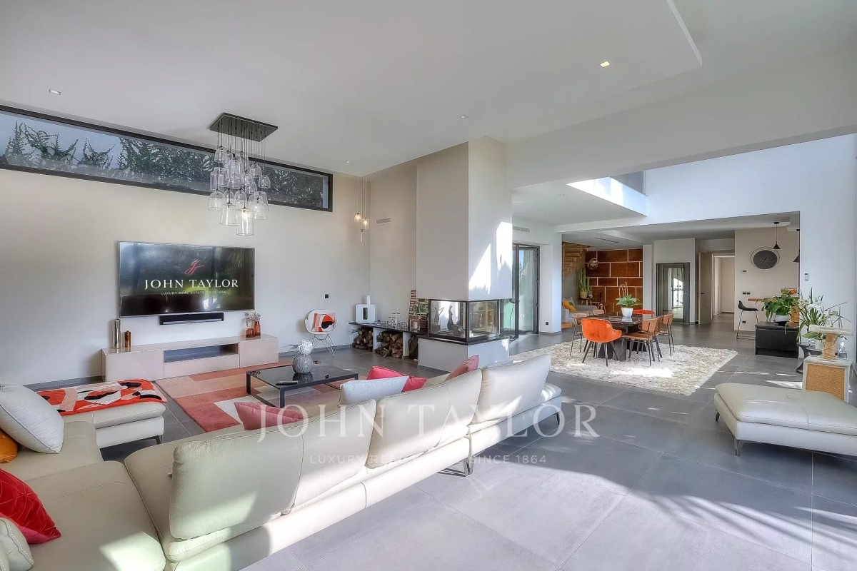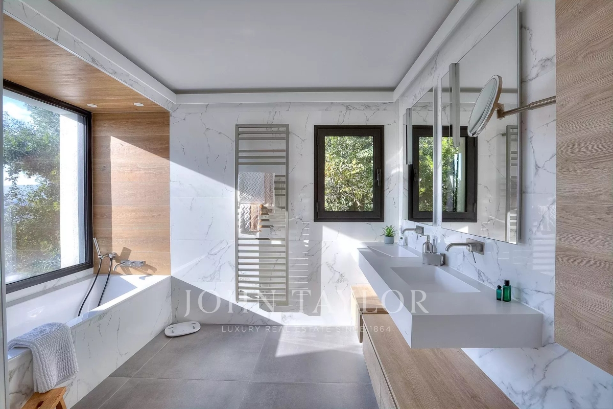 This exceptional 430 m² contemporary villa, ideally located near the sought-after villages of Mougins and Valbonne, offers an abundance of natural light through expansive bay windows and enjoys breathtaking panoramic views of the surrounding landscape. Designed to accommodate up to 10 guests in comfort and style, the villa features 5 well-appointed bedrooms and 4 modern bath-/shower rooms. Ground floor: Elegant entrance hall with built-in storage Master suite (Bedroom 1) with king-size bed (180x190), private bathroom (double vanity, bathtub, walk-in shower, separate WC), dressing room, and desk Bedroom 2: king-size or twin beds (180x190 or 2x90x190), en-suite shower room (shower, vanity, WC), and dressing room Bedroom 3: king-size bed (180x190), en-suite shower room (shower, vanity, WC), and dressing room Fully equipped fitness room Garage Garden level: Guest WC Spacious living room opening directly onto the pool area Bright dining room adjoining the lounge Fully equipped modern kitchen Bedrooms 4 & 5: each with king-size beds (180x190), sharing a shower room (shower, vanity, WC) Functional laundry room Outdoor amenities: Landscaped garden 4 private parking spaces Heated infinity pool (10x5 meters) Pool house with summer kitchen, barbecue, outdoor shower Jacuzzi for 6 people This villa is the perfect blend of contemporary design, comfort, and Mediterranean lifestyle — ideal for family holidays or a peaceful retreat in the South of France. Information on the risks to which this property is exposed is available on the Géorisques website: www.georisques.gouv.fr Contact: 0609238497.