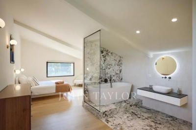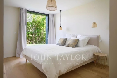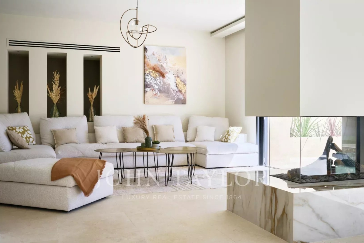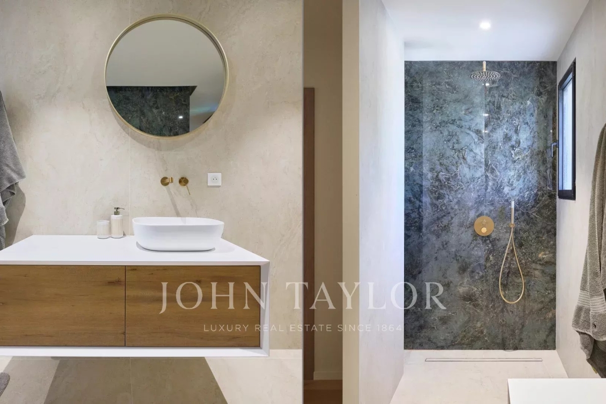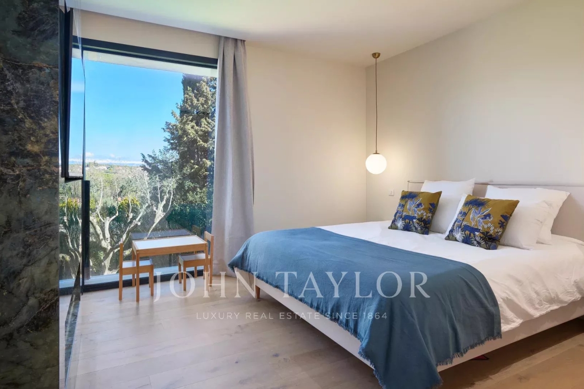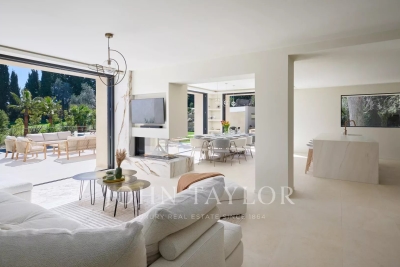 This beautiful contemporary villa with 350 m² of living space and top-of-the-range amenities would be ideal for a family looking to spend a wonderful vacation on the Côte d'Azur. It is located on foot from the old village of Mougins, close to all amenities. It includes : First floor: - Spacious entrance hall, - Living room of approx. 100 m² with TV area, sound system and fireplace, access to terrace and pool-house with barbecue, - Fully equipped open-plan kitchen with central island and dining area, - Dining room, - Master bedroom: double bed, bathroom, dressing room, terrace. - Bedroom n°2: double bed, shower room, dressing room. 1st floor: - Bedroom n°3 : double bed, bathroom, dressing room. Garden level: - Bedrooms n°4 and n°5: double beds with ensuite shower rooms, - Cinema room, - Fitness room and sauna, - Laundry room and garage. Exterior amenities: - Landscaped garden ; - Infinity pool; - Several relaxation areas with deckchairs and garden furniture; - Parking area. Information on the risks to which this property is exposed is available on the Géorisques website: www.georisques.gouv.fr Contact: 0609238497.