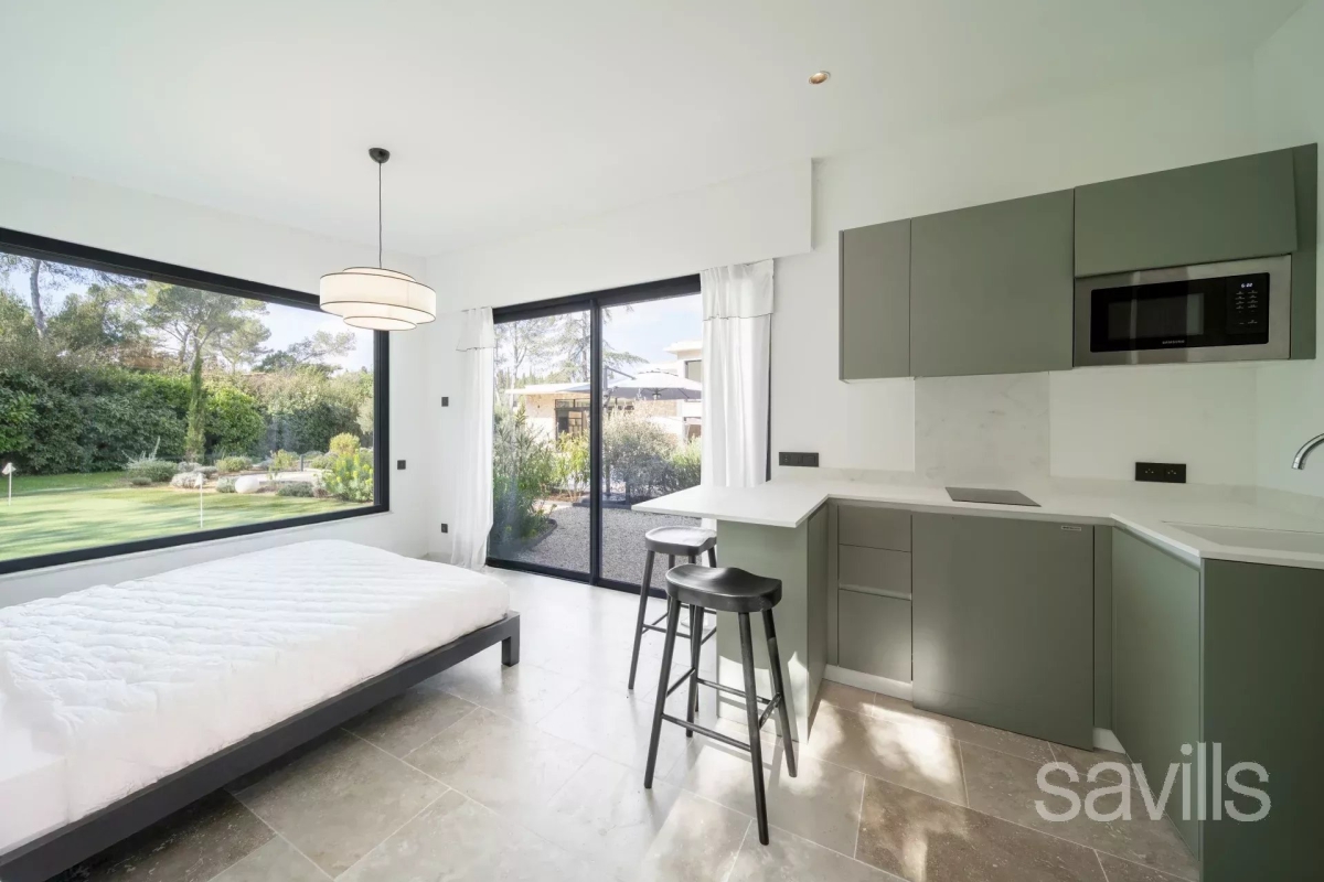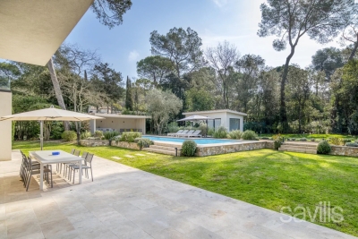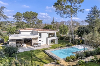 A magnificent modern property set in natural setting, surrounded by approximately 2,500 sq m of grounds with a swimming pool. Providing approximately 300 sq m of living area, the villa features on the ground floor: an entrance hall, a spacious reception room with dining area, opening onto a vast terrace and the swimming pool, a fully equipped kitchen, a guest cloakroom, a wine cellar and a laundry. The first floor includes a principal bedroom with en suite bathroom and toilet, two further en suite bedrooms, and a study. A one bedroom guest house, a garage and parking complete this property. Internet, alarm. Contact: 0613601208.