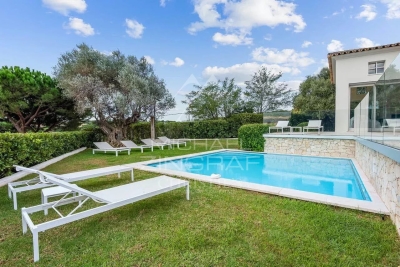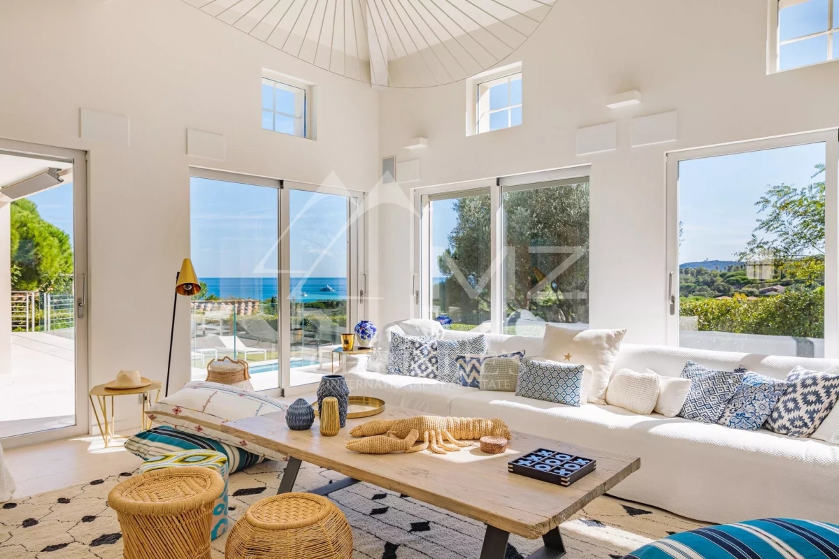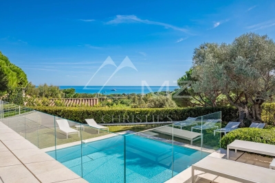 Beautiful contemporary villa located few steps away from the beaches of Pampelonne and Club 55. It offers a large bright living room, 6 bedrooms and high quality modern equipment. Swimming pool. Magnificient sea view. Approval number : 83101 000077 9H