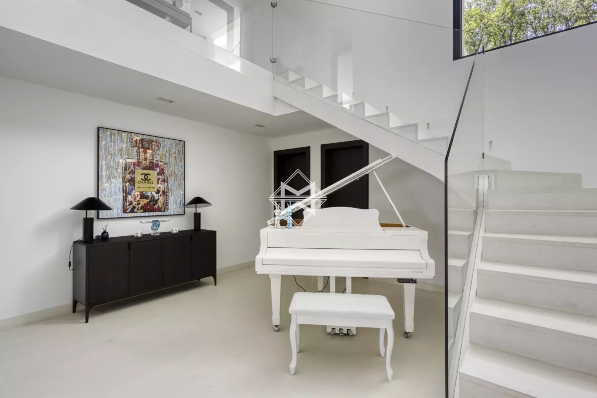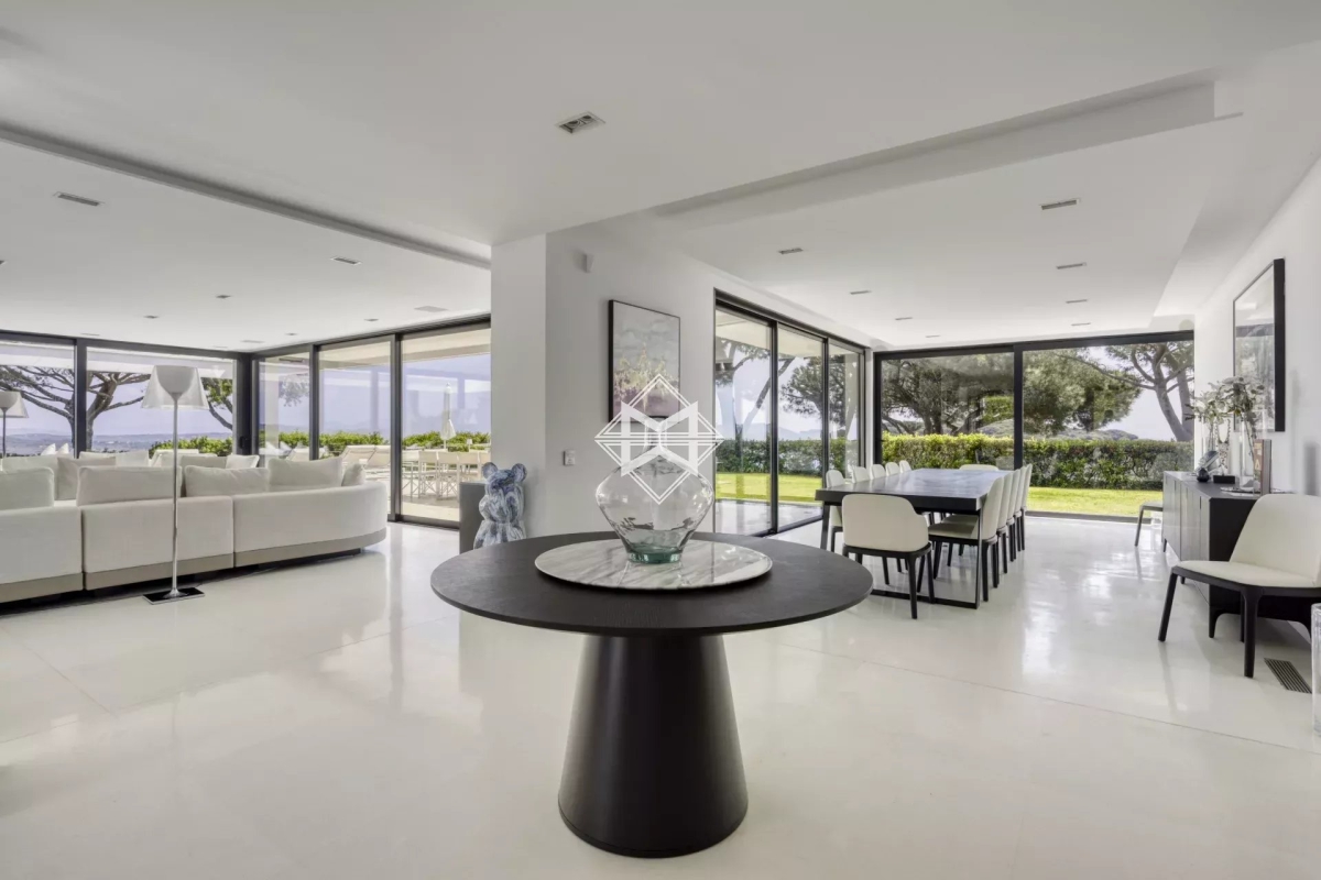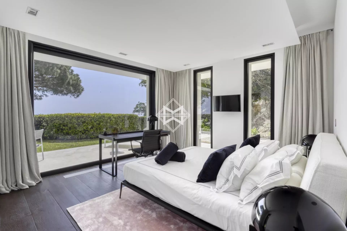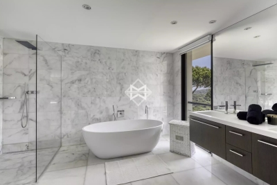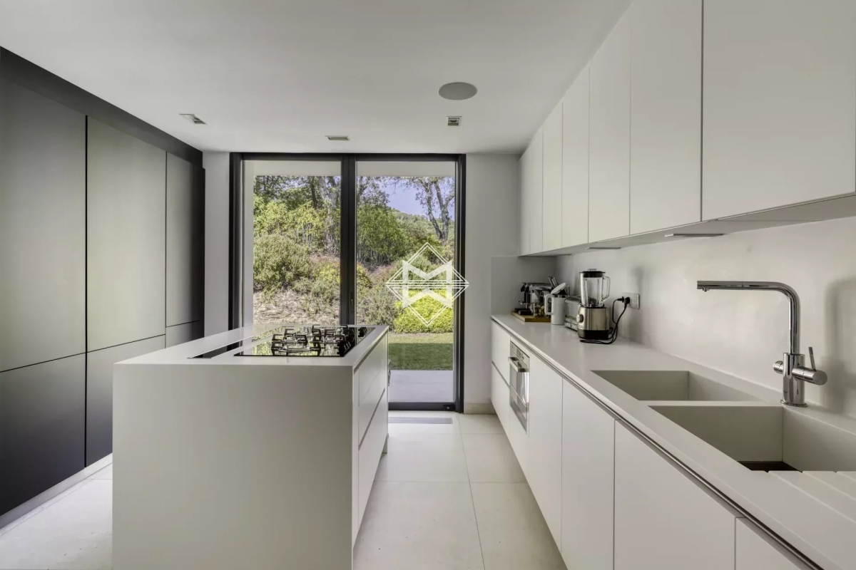 Contemporary villa, enjoying exceptional panoramic sea views and surrounded by wonderful nature, is nestled in a popular and greenery area of Escalet in Ramatuelle. The property is not far from the Escalet beach, within only 3 minutes, and the Pampelonne beach, in only 10 minutes, enjoying the proximity of the center of Saint-Tropez (only 18 minutes). The modern style villa, built from high end materials, has a large surface of approx. 500 m², including 8 beautiful suites. The splendid bay windows are visually extending the interior spaces, allowing to take full advantage of the superb sea view offered by the dominant position of the villa. Surrounded by a ground of approx. 5800 m², the property has a heated pool of 20 meters long and an outdoor bar. Bocce ball (petanque) court, home automation, security system, reversible air conditioning, bioethanol fireplace ... This contemporary property in the region of Saint-Tropez will seduce nature and sea lovers.