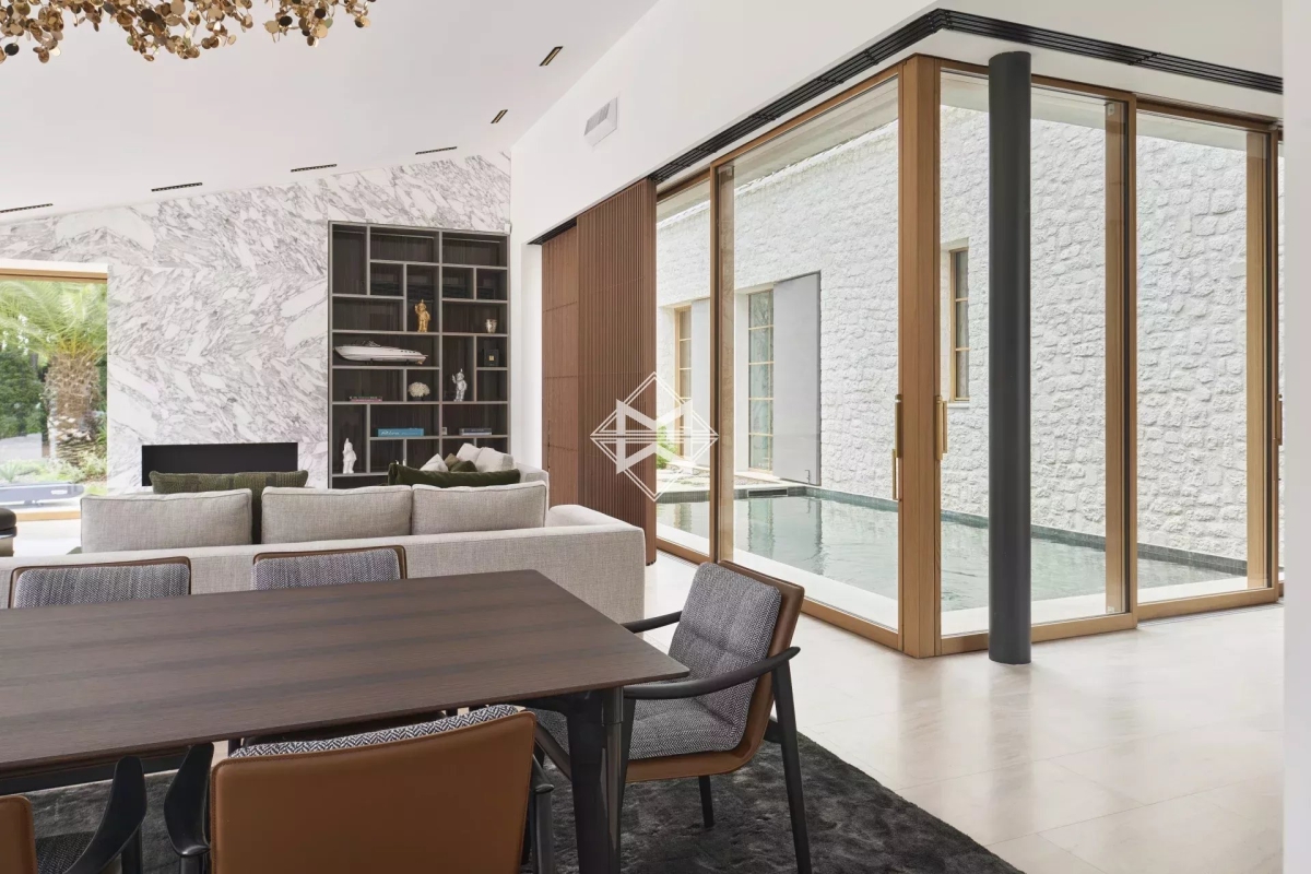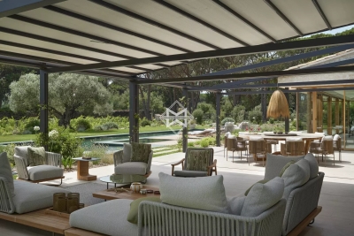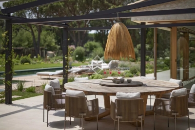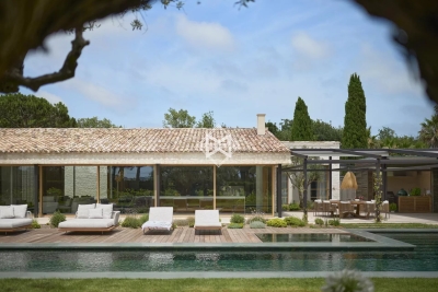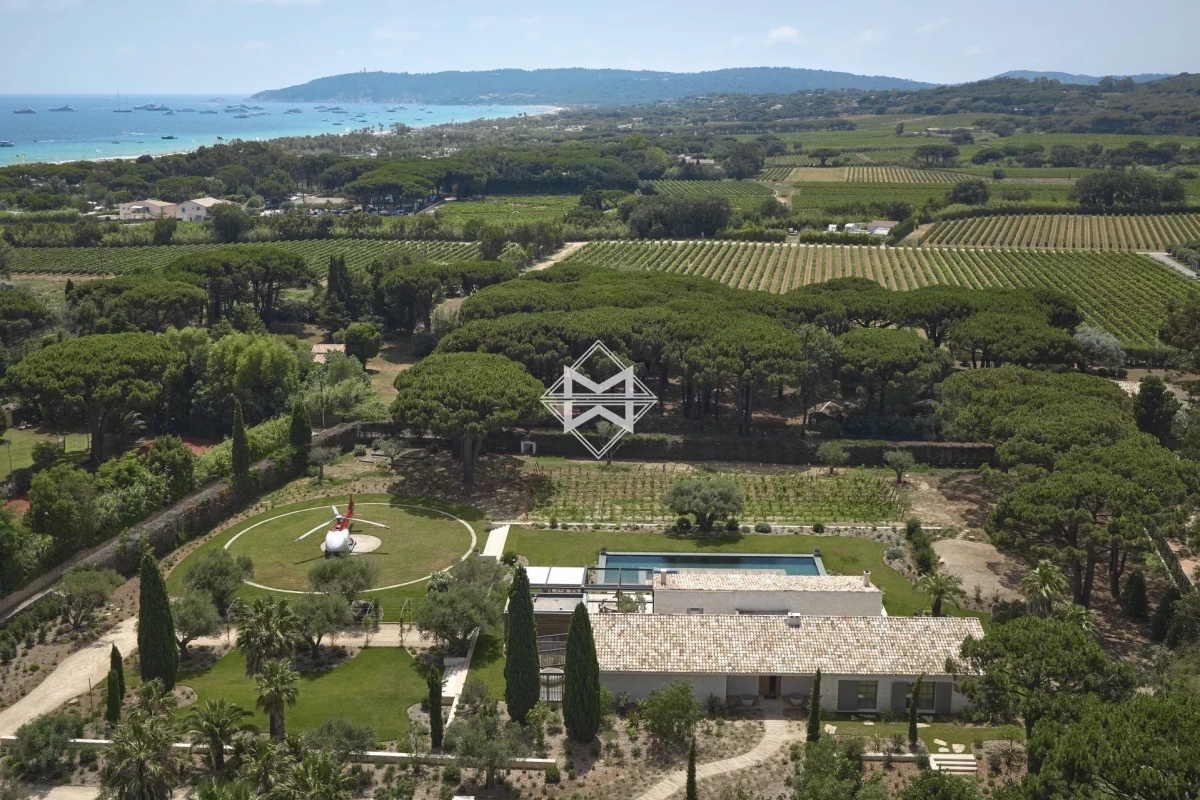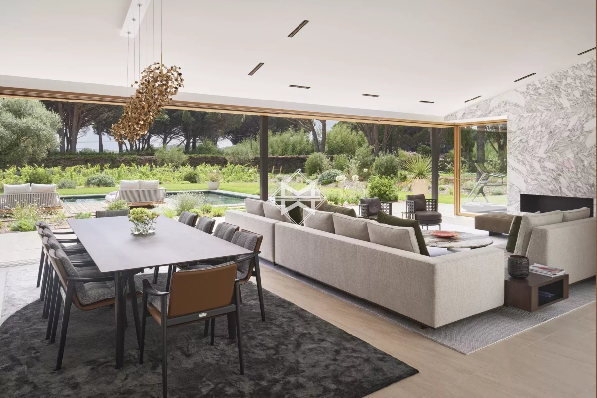 SOLE AGENT This superb modern and luxurious property of about 300 sq m living area on a beautiful plot of approximately 9,600 sq m is ideally located in the heart of vineyards and within a 5-minute walk from the beach. The property enjoys spacious living areas including a large lounge dining room and a fully equipped kitchen with high-end appliances. All open onto charming terraces, perfect for relaxation. The 4 ensuite bedrooms offers privacy and comfort, 2 of them benefits of independent entrances for more discretion. This property enjoys an elegant and serene atmosphere, thanks to its noble materials such as glass, stone, and wood. An unparalleled experience that combines modern luxury with the tranquility of vineyards and the proximity to the beach, a true haven of peace where to relax and enjoy memorable moments with family or friends in a splendid setting.