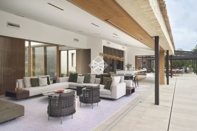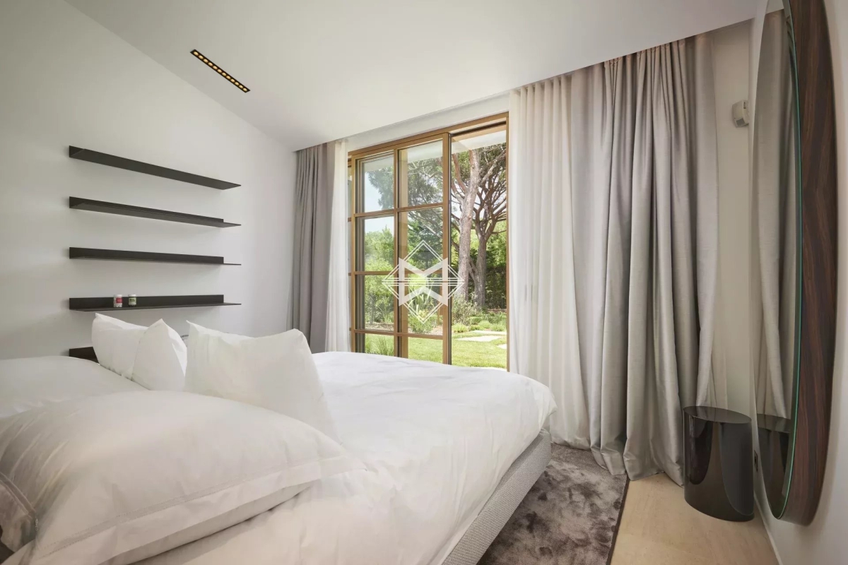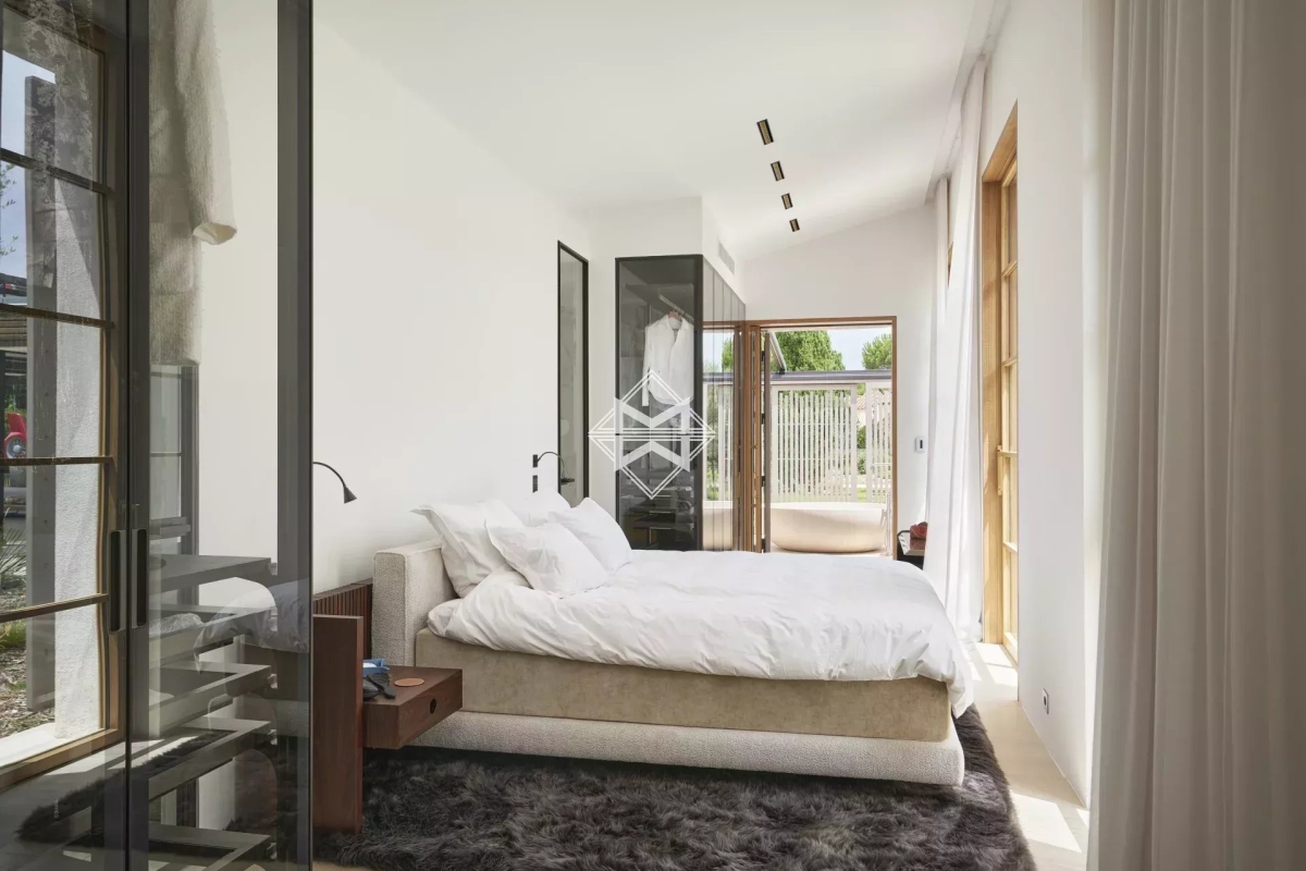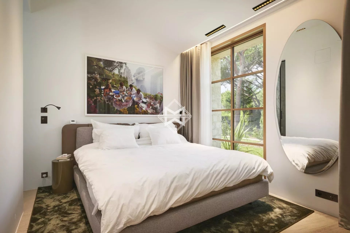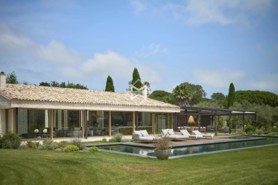 SOLE AGENT This superb modern and luxurious property of about 300 sq m living area on a beautiful plot of approximately 9,600 sq m is ideally located in the heart of vineyards and within a 5-minute walk from the beach. The property enjoys spacious living areas including a large lounge dining room and a fully equipped kitchen with high-end appliances. All open onto charming terraces, perfect for relaxation. The 4 ensuite bedrooms offers privacy and comfort, 2 of them benefits of independent entrances for more discretion. This property enjoys an elegant and serene atmosphere, thanks to its noble materials such as glass, stone, and wood. An unparalleled experience that combines modern luxury with the tranquility of vineyards and the proximity to the beach, a true haven of peace where to relax and enjoy memorable moments with family or friends in a splendid setting.