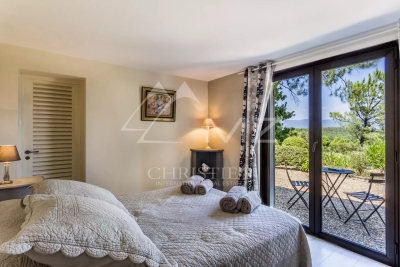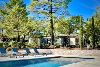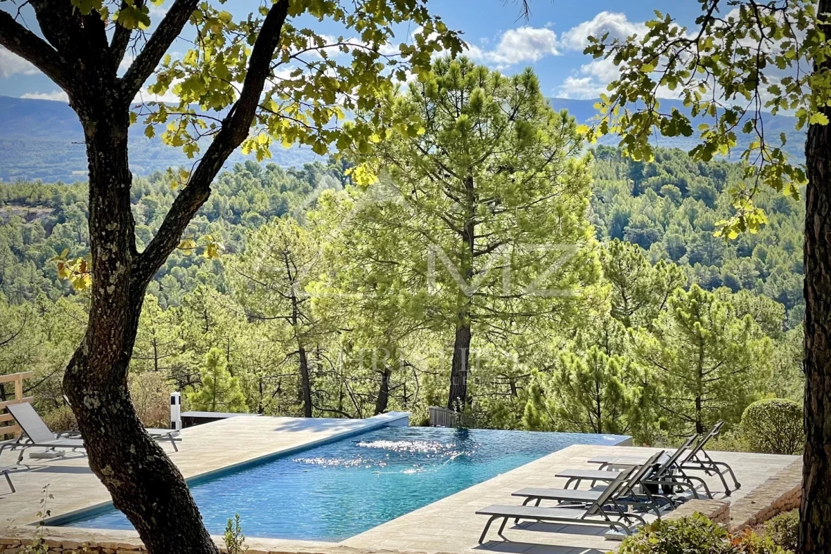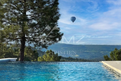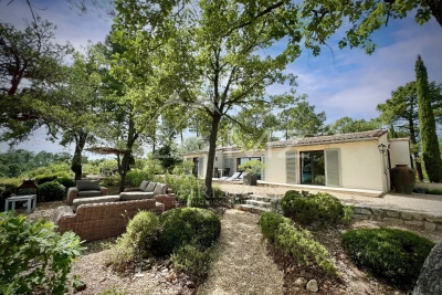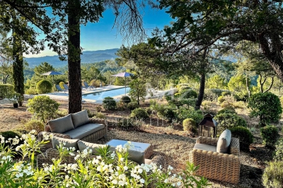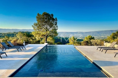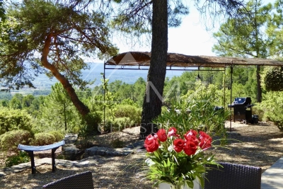 Beautiful property in Roussillon, one of the most beautiful villages in France, in a wooded area of approx. ??12,500 sqm with a panoramic view over 270° on the perched villages and mountains of the Luberon... This Provençal house (in one level), tastefully decorated, is surrounded by a magnificent wooded park with pine trees, field of lavender... Quiet place without being isolated. This property can accomodate 8 people. 4 bedrooms with A/C, and 4 ensuite shower-rooms.