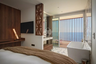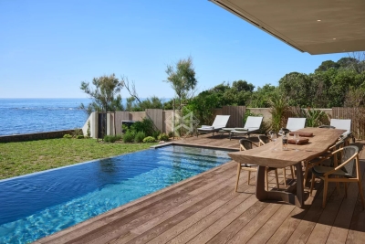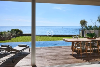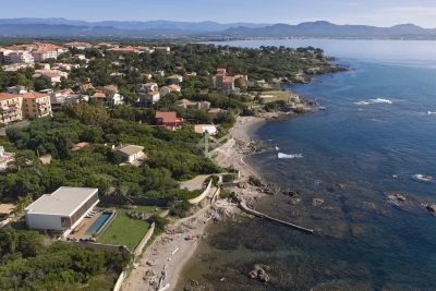 New contemporary waterfront villa on the French Riviera, between Cannes and Saint-Tropez. Enjoying direct access to the sea and within walking distance of shops, this villa boasts a sleek design and high-end amenities in an exceptional setting. Set on a 1,239 sqm plot, the property offers approximately 340 sqm of living space, including 4 bedrooms, an apartment, and leisure areas. Bathed in natural light, the main living area opens fully onto the outdoors, extending to a spacious terrace and an infinity pool. Not overlooked and in absolute tranquility, lulled by the sound of the waves, the property invites daydreaming with its spectacular sea views... A rare gem for lovers of the sea and modern architecture.