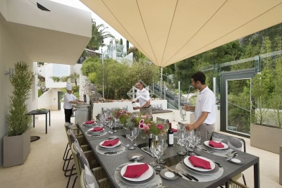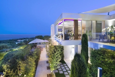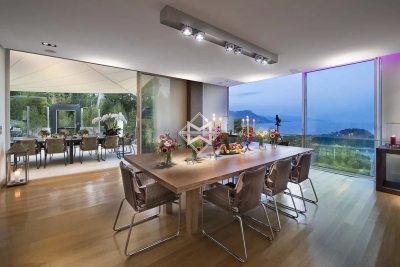 SAINT JEAN CAP FERRAT. Located in one of the most beautiful settings of Cap Ferrat, this incredible villa of 700 sqm on grounds of 4 800 sqm combines an ultra-contemporary, modernist living space, with more intimate and personal private rooms. At each turn, a new and more breathtaking bay view emerges, a backdrop for this stunning and unique building . A capacity of 14 guests. Each of the 7 guest bedrooms individually designed offers a separate enclave, complete with bathroom and private terrace. With it's indoor pool and lavishly equipped exercise room, this exclusive retreat offers privilege, personality and world class performance. The elevated dinning area and salon have uninterrupted 180 degree sea views. Fully equipped Boffi kitchen. The property offers a Spa with Hammam, sauna, shower and massage room. Wine cellar featuring some of the finest wines for sale. Fully integrated security system. Outdoor and indoor swimming pool. Included in the price : Villa Manager ( 8 hours daily), 3 housekeepers / house maids ( 9H -17H), 1 chef covering breakfast, lunch and dinner ( 8H - 23H), 1 butler covering breakfast, lunch and dinner ( 8H - 23H), Concierge service, welcome and luggage services, daily cleaning, change of towels according to usage, bed linen changed twice weekly, cleaning of laundry, daily cleaning of the spa, outdoor and indoor pool. A la carte services : Airport transfer and taxi service, driver / chauffeur/ limousine service, Helicopter transfer, 24/7 security guards, massage / beauty treatment / hair dresser/ personal trainer, food and beverage list prior to arrival of client.