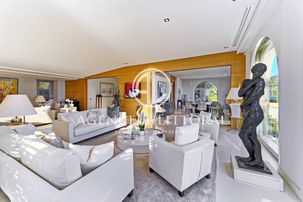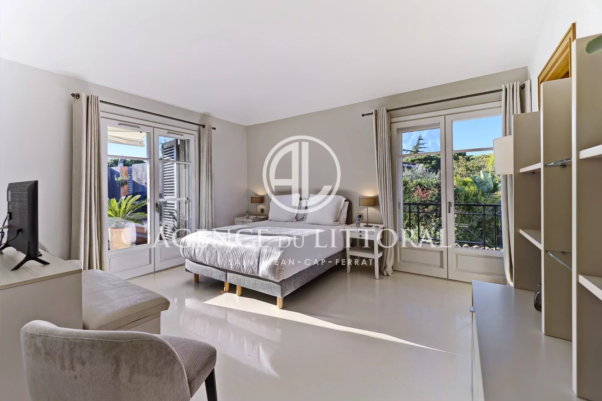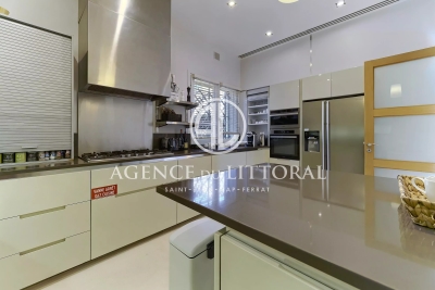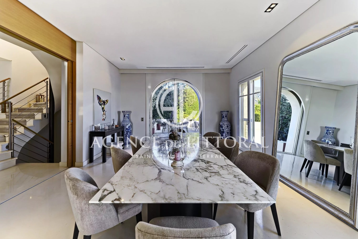 Superb luxury villa ideally located in Saint-Jean-Cap-Ferrat, halfway between Nice and Monaco. With approximately 650 sq m of living space on a plot of approximately 620 sq m, this magnificent villa is available for rent as well as for events and seminars. Ground floor: Entrance hall with cloakroom and guest toilet. Double living room with breathtaking views of the sea and the village, TV area. Dining room seating up to 12 guests, opening onto a large terrace and summer dining area. Fully equipped kitchen. First floor: 2 bedrooms with en-suite bathrooms and dressing rooms. Swimming pool and terrace. Guest bathroom. Kitchenette. Garden level: 3 bedrooms with en-suite bathrooms and dressing rooms. Large laundry room. Separate apartment: Living room, open-plan fitted kitchen, double bedroom with shower room. This villa will charm you with its architecture, location, and the breathtaking view it offers. Facing southeast, the sun rises directly in front of you. The villa features an elevator serving every floor, a heated swimming pool, air conditioning, Wi-Fi, an alarm and video surveillance system, parking spaces, and an automatic gate. Contact: +33667007811.