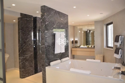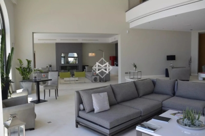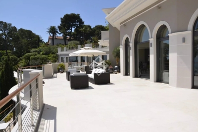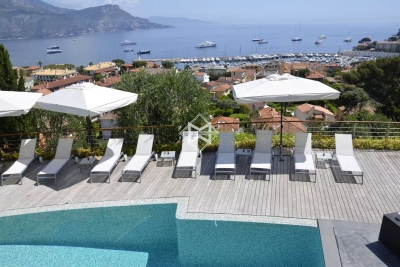 This recently completed modern villa of about 1200 sqm is located high on the peninsula in Saint-Jean-Cap-Ferrat. Panoramic sea views complete this ultra luxurious property. Ground floor : Very bright living room overlooking the harbour of Saint-Jean-Cap-Ferrat opening onto a large terrace with 180° sea view. Dining room seating up to 14 people opening to a large terrace with panoramic sea view. Professional state of the art fully equipped kitchen. A master bedroom with two full shower-rooms overlooking the sea, outdoor pool area with poolhouse. TV lounge with audio and visual system. 1st floor: a Master bedroom with private terrace, panoramic sea view, two dressing rooms, 1 office, two full bathrooms and walk in shower, bath with massage jets. Also includes audio and visual system. The main entrance and foyer are on this floor, office with sofa bed, fax, printer, audio-visual system and full bathroom - perfect for bodyguard or staff. Garden floor: 4 bedrooms with their bathrooms and bedroom with twin beds and private bath perfect for children. All bedrooms open up to private terrace area with lounge and panoramic sea view. Professional laundry with two washing machines and 2 dryers. A cinema with bar, one indoor swimming pool with massage jets, SPA area, sauna, outdoor swimming pool with lounge area. Wifi Internet, fax printer, air conditioning, sophisticated security system including alarm with CCTV, 3 garage, 3 parking for additional cars and automatic gate. The house is fully equipped and all finishes are done to the flat screen television, DVD and satellite, highest standard safe and a phone in each room.
