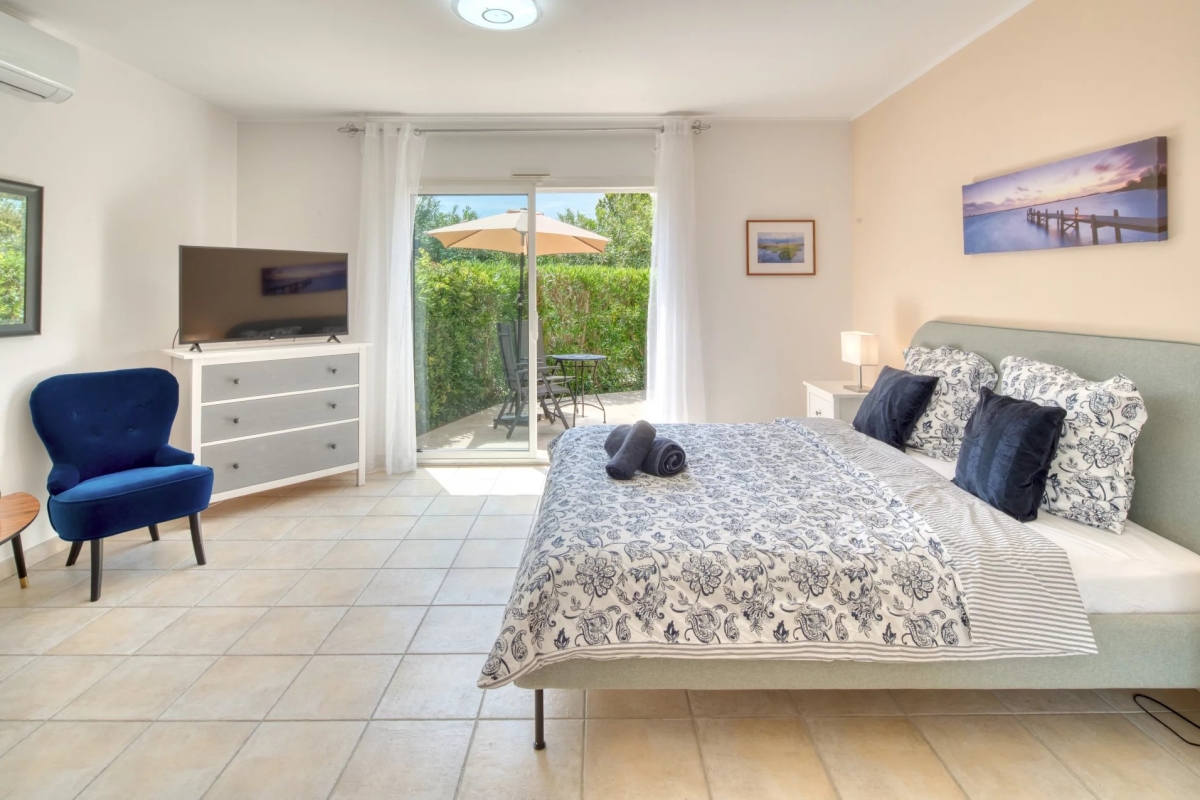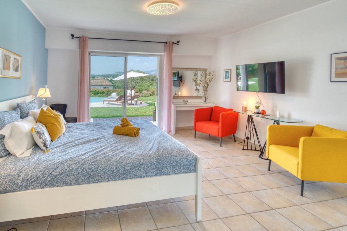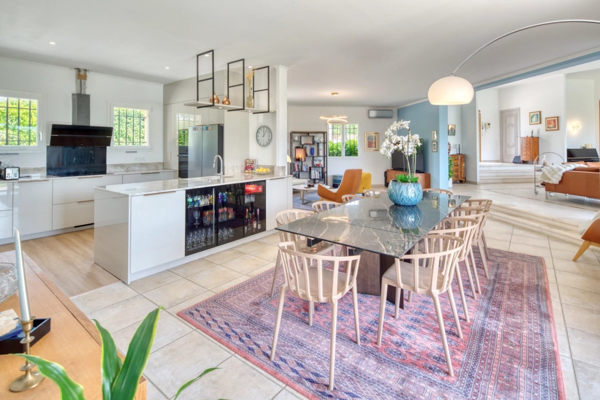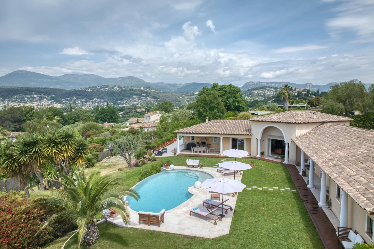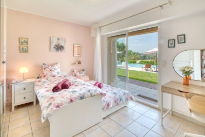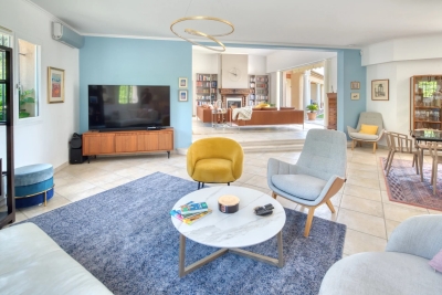 Just steps from the legendary village of Saint-Paul-de-Vence and only 15 minutes from the beaches, this bright, single-storey villa welcomes you into a peaceful, verdant setting. It sleeps up to 10 guests and comprises a main house with three bedrooms, plus two self-contained studios—each with private access—linked by a covered patio. Outdoors, a vast 1,500 m² landscaped garden surrounds a large swimming pool and several living areas for making the most of the Mediterranean climate. Additional amenities Swimming pool, sun loungers, air conditioning, barbecue, gym, table-tennis table, lounge areas, summer dining area, private parking, secure entrance Entrance hall Bright living room Dining room opening onto the garden Fully equipped kitchen Bedroom 1: double bed – en-suite bathroom Bedroom 2: two single beds – en-suite bathroom Bedroom 3: double bed – en-suite bathroom Covered patio linking the two studios Studio 1: double bed – kitchenette – bathroom Studio 2: double bed – kitchenette – bathroom Information on potential risks to which this property is exposed is available on the Géorisques website: www.georisques.gouv.fr. Contact: +33781475525.