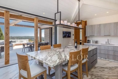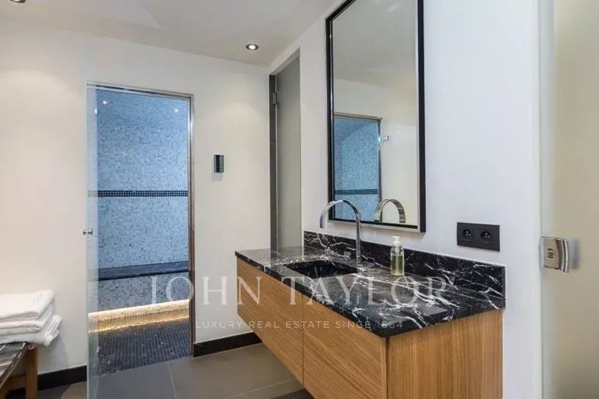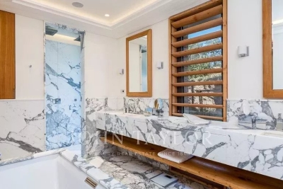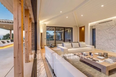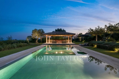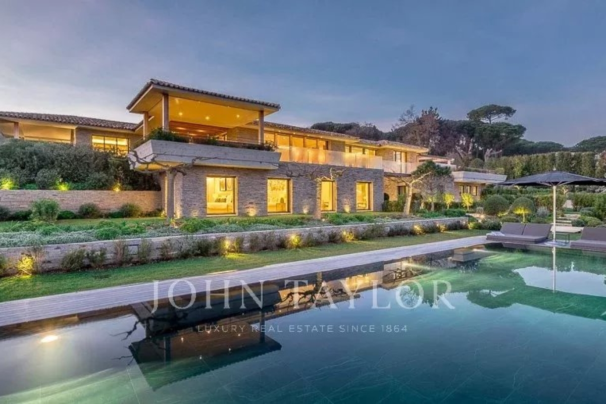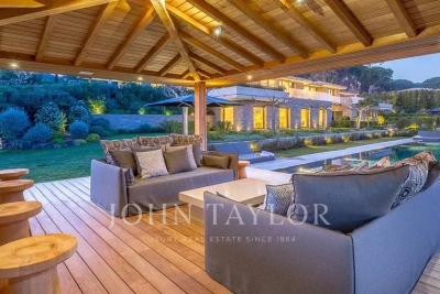 Beautiful contemporary property located between the village and Tahiti beach it includes: First floor : Fitted kitchen 1 Central Island and an integrated table for 6 persons with a back office. Spacious lounge and dining room Master bedroom, with a full bathroom and dressing room Ground floor : -4 bedrooms with full bathrooms and dressing rooms -1 Kids room with 4 single beds a wardrobe, a bathroom with a shower and a separate restroom. -2 Utility rooms with 2 single beds wardrobes, bathrooms with a shower and restrooms. -Independent outside room with a wardrobe, a bathroom a shower and restroom. -A Library. Facilities : External heated pool, and a equipped pool house. Hammam, sports room and massage room. Private bowls field. Cold room. A laundry room. A wine cellar. A/C in the whole villa. Lights, alarm, roller shade, cameras managed remotely by “domotique”. “Sonos” system in the whole villa ans a closed garage. Numero mairie : 83119002234AK
