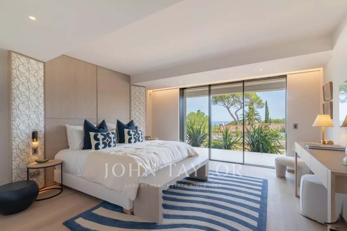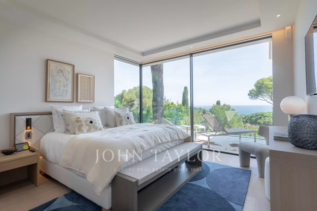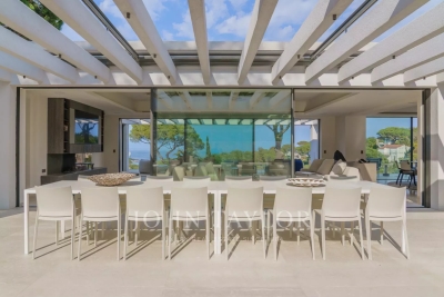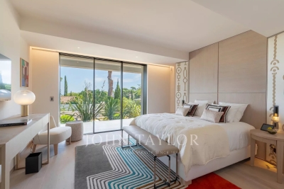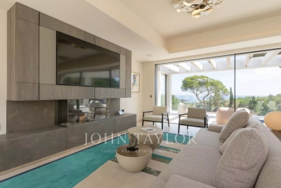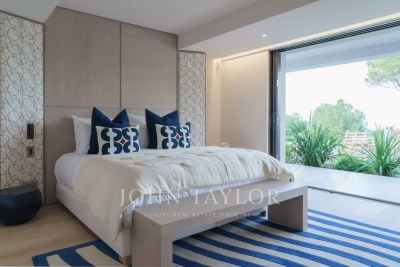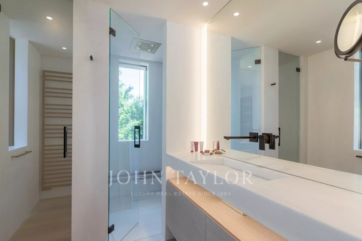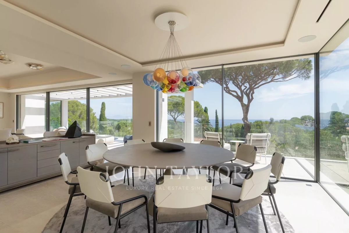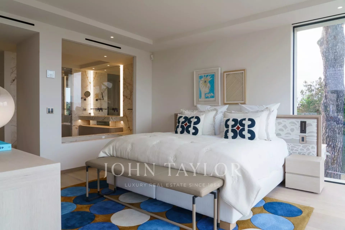 Introducing a stunning, newly-built modern villa boasting panoramic views of the Salins: Ground Floor: A grand entrance foyer welcomes you into the home's inviting ambiance. The spacious living room, complete with a fireplace, seamlessly merges with the elegant dining area. A fully-equipped kitchen, featuring a cold room for optimal food storage, ensures culinary excellence. Two generously-sized bedrooms each come with their own en-suite bathroom facilities. Garden Level: Three additional bedrooms, each with luxurious en-suite bathroom facilities, offer unparalleled comfort. A versatile space doubles as a cinema or discotheque, promising entertainment for all. A dedicated area for laundry and storage ensures convenience and organization. An independent apartment, comprising a kitchen, living area, and bedroom with en-suite bathroom, provides privacy and flexibility. Two more bedrooms, each with its own en-suite shower room, round out the accommodations. Architect: 2DMO Interior Designer: Dorga