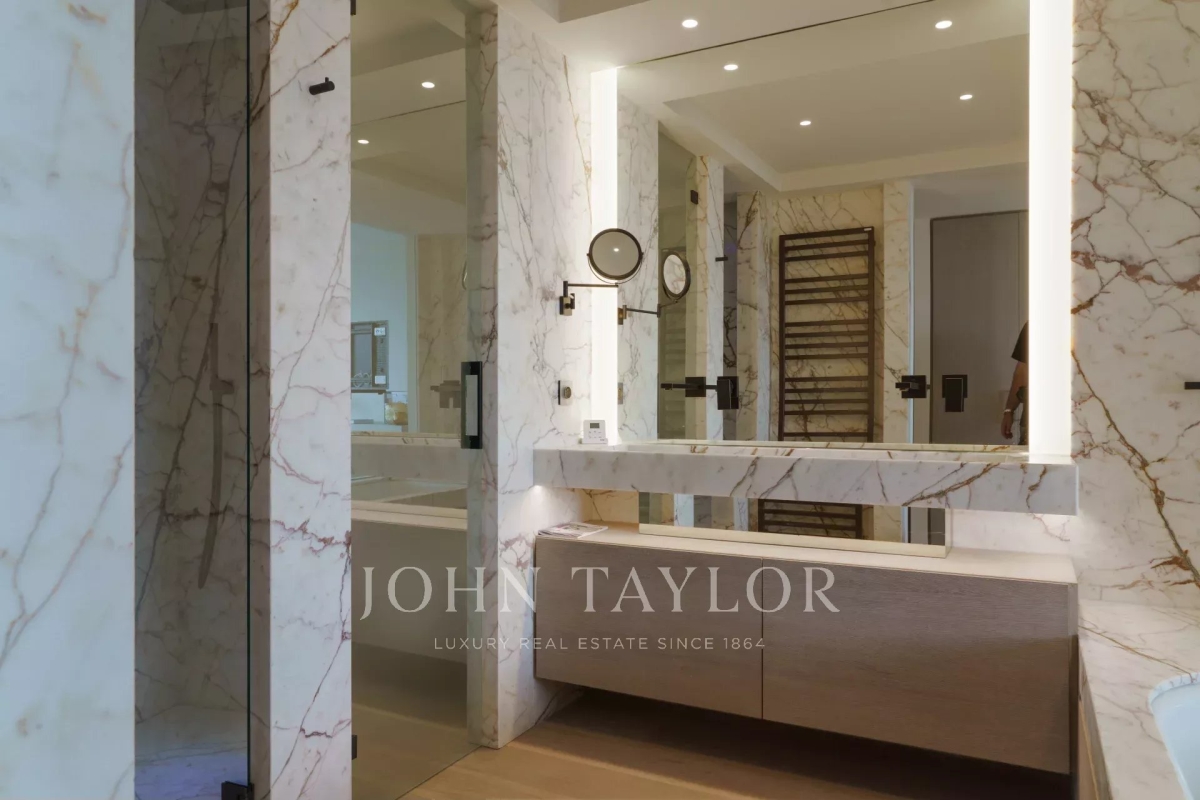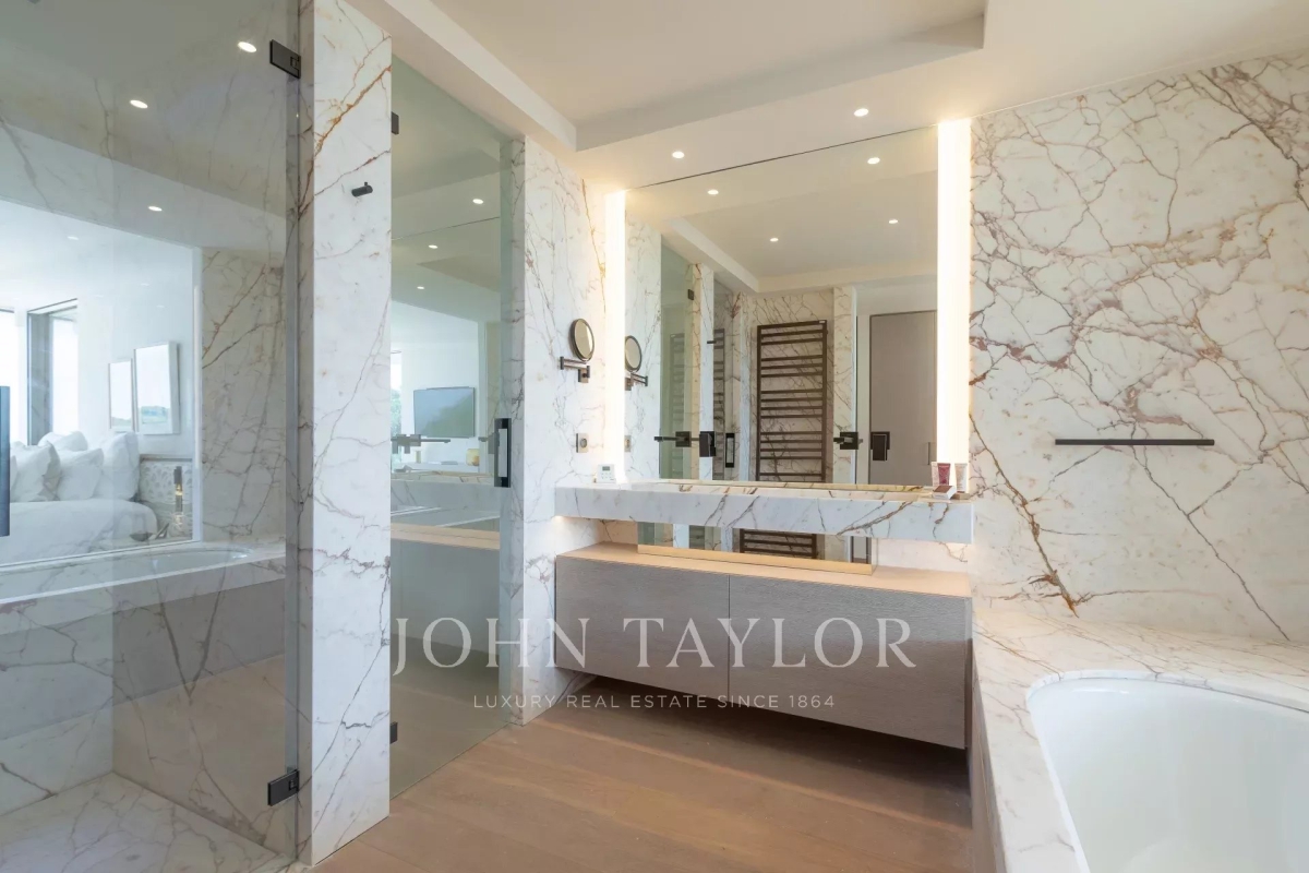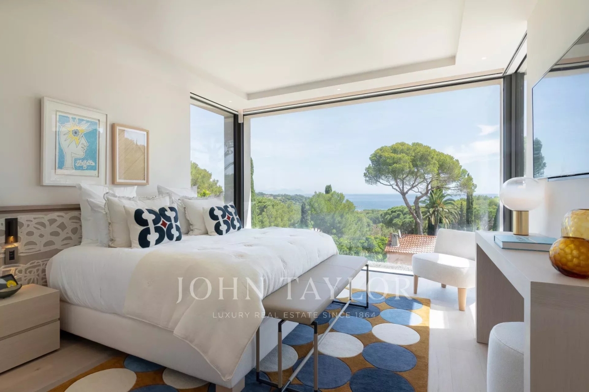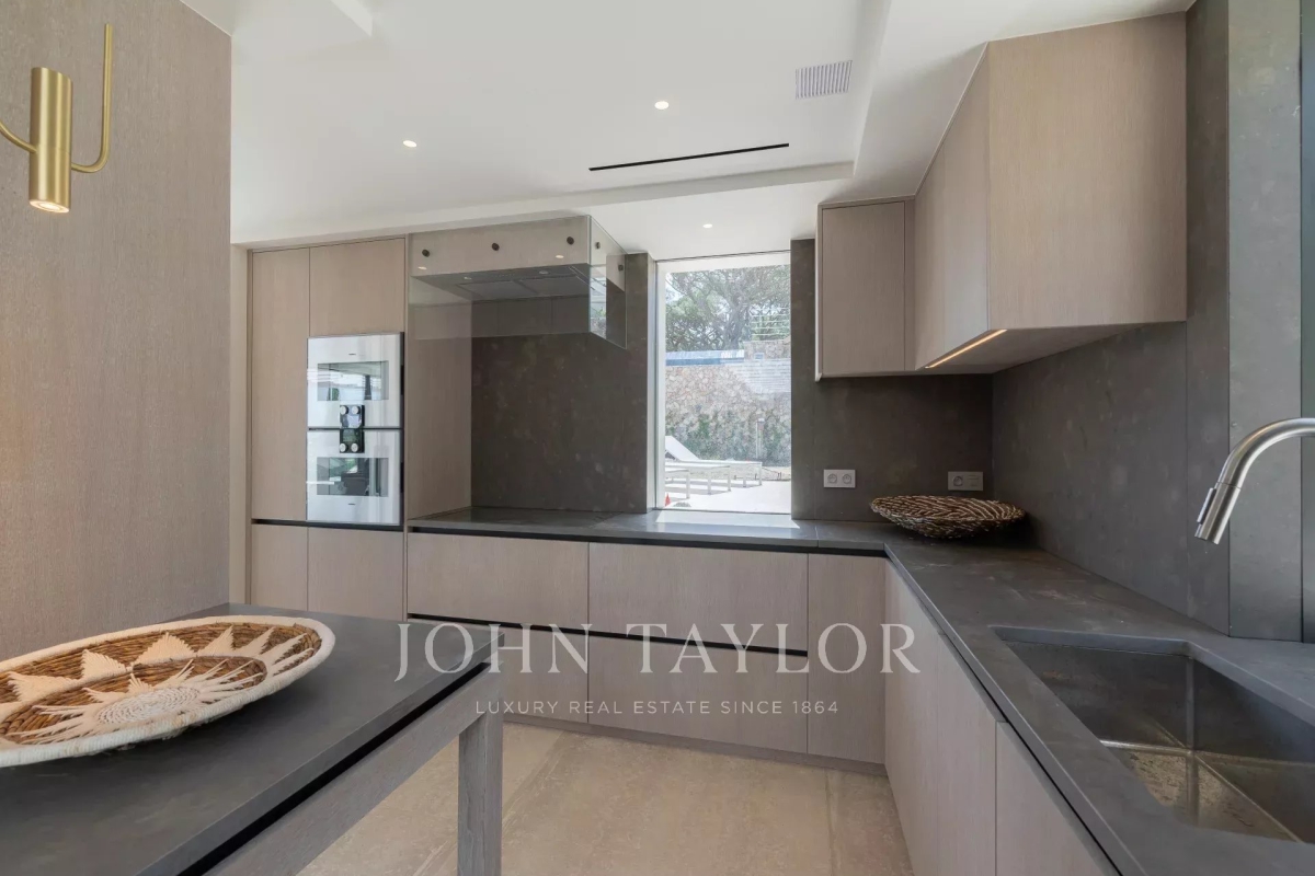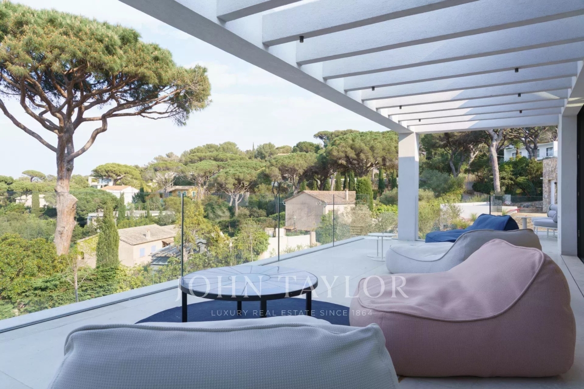 Introducing a stunning, newly-built modern villa boasting panoramic views of the Salins: Ground Floor: A grand entrance foyer welcomes you into the home's inviting ambiance. The spacious living room, complete with a fireplace, seamlessly merges with the elegant dining area. A fully-equipped kitchen, featuring a cold room for optimal food storage, ensures culinary excellence. Two generously-sized bedrooms each come with their own en-suite bathroom facilities. Garden Level: Three additional bedrooms, each with luxurious en-suite bathroom facilities, offer unparalleled comfort. A versatile space doubles as a cinema or discotheque, promising entertainment for all. A dedicated area for laundry and storage ensures convenience and organization. An independent apartment, comprising a kitchen, living area, and bedroom with en-suite bathroom, provides privacy and flexibility. Two more bedrooms, each with its own en-suite shower room, round out the accommodations. Architect: 2DMO Interior Designer: Dorga
