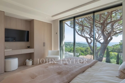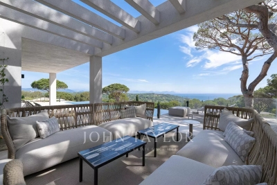 The Villa Aurea is a modern property of exceptional quality, offering high-end amenities and breathtaking views of the Salins. From the moment you step inside, you'll be impressed by its unique design and luxurious features. On the ground floor, you'll find a spacious living room with a fireplace, an elegant dining area, and a fully equipped kitchen where every detail has been carefully considered. Upstairs, the master suite offers a stunning view, complete with a generous walk-in closet and a full bathroom. Additionally, there are three guest bedrooms with private shower rooms, as well as two bedrooms for staff members with their own shower facilities. The villa's amenities are simply sumptuous: a home cinema for entertaining evenings, a gym with a hammam for relaxation after a workout, an infinity pool with panoramic views, a garage for up to three cars, a sauna for ultimate relaxation, a wine cellar for connoisseurs, a cold room for storing provisions, and of course, air conditioning for optimal comfort. Furthermore, the option to rent a second adjoining villa allows for accommodating a very large family in a luxurious and privileged setting. The Villa Aurea is more than just a residence; it's a true sanctuary where every detail has been carefully considered to provide absolute comfort and unforgettable moments.