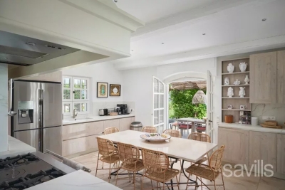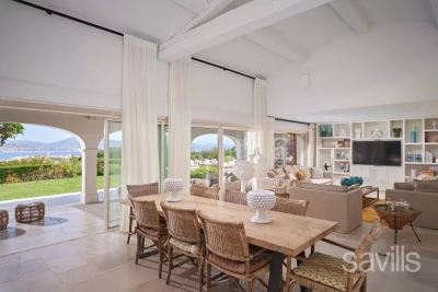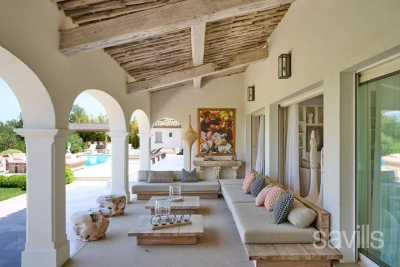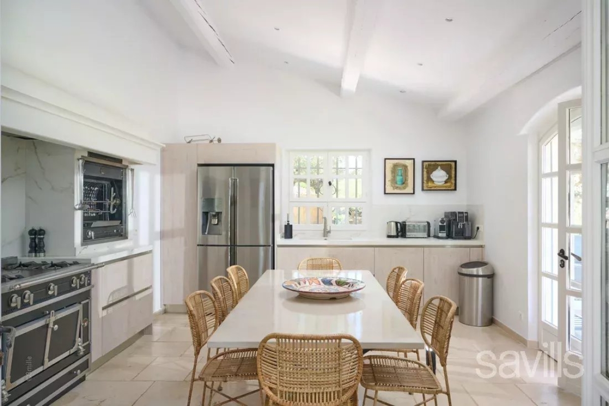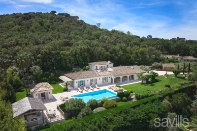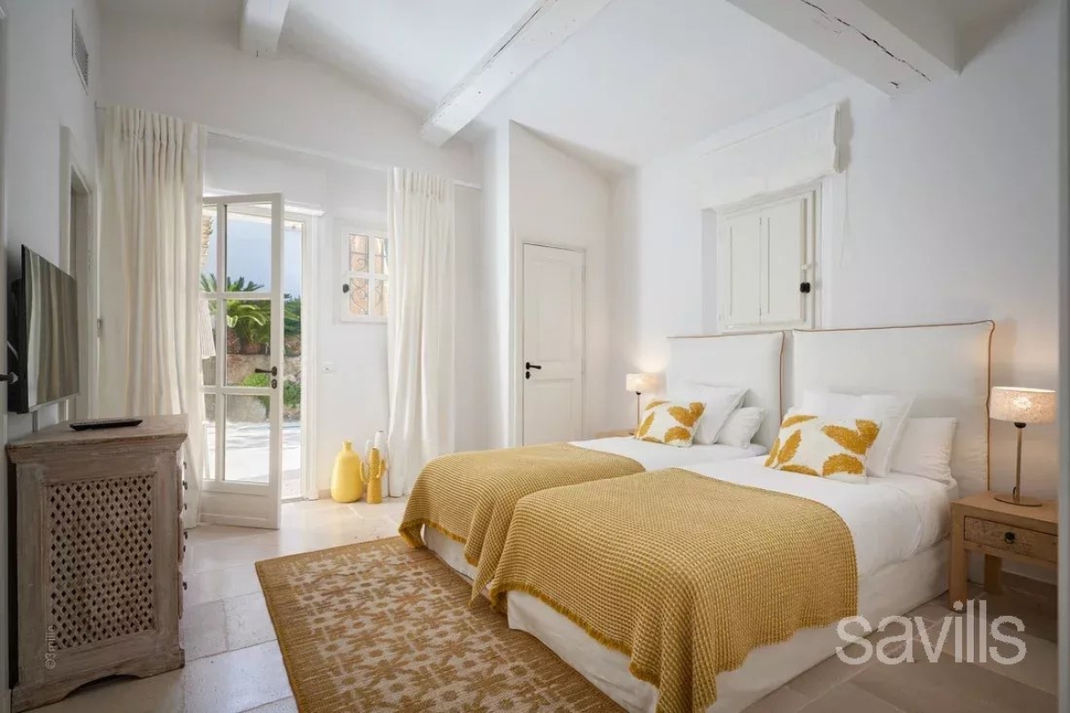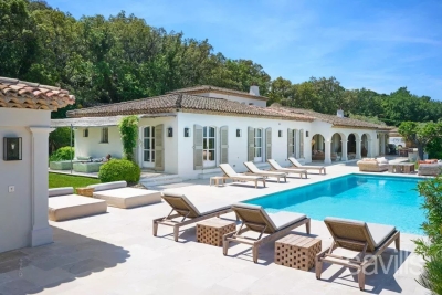 Very beautiful Provencal bastide, entirely renovated, located in a private domain, 16 minutes walk from the Place des Lices and about five minutes drive from the beaches of Pampelonne and Tahiti. Villa of about 500 sq m, superb panoramic view on the sea and the village, landscaped garden of about 6.456 sq m. Large living/dining room open onto a covered terrace facing the sea and a patio, kitchen opening onto a terrace with dining area and barbecue, five bedrooms, then upstairs, the master bedroom and its large Tropezian terrace. In the basement, cinema room, hammam and rest room. One independent bedroom in the garden. Very beautiful heated overflowing swimming pool, pool house equipped with a bar. Villa fully air-conditioned. Minimum rental period: 2 weeks Registration number : 83119004829MX Prices vary according to the rental period - only the minimum rates are shown in the advertisements: please contact us if you have any queries. Please note that additional rental charges apply. Agency fees payable by the tenant. Rental fee schedule available online and on request. Please note that the plan does not show the precise location of the property and that all measurements are approximate, the information is provided for guidance only. Contact: +33602735306.